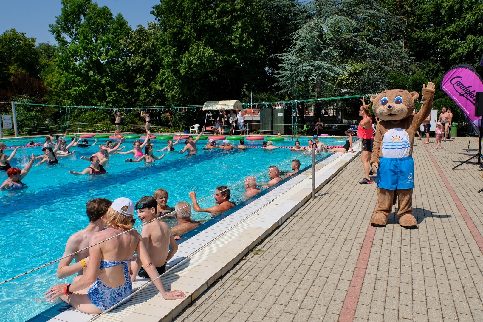 Vidra Vili is megjelent vasárnap délelőtt a Gyulai Várfürdőben, hogy részt vegyen Szentlélekiné Csávás Erika aquafitneszóráján. A fürdő új kabalafigurájával nemcsak a gyerekek, hanem a felnőttek is szívesen fotózkodtak. Mint megtudtuk, Vili ezentúl rendszeresen feltűnik majd a medencék környékén.