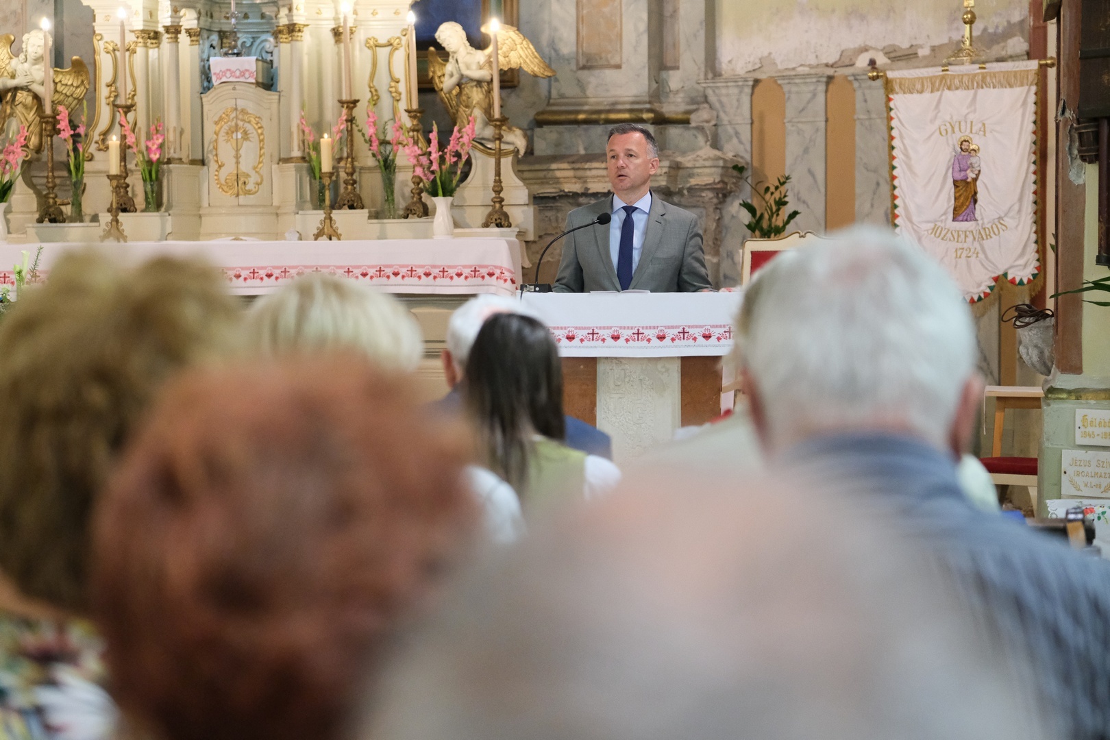 A megemlékezés hálaadó szentmisével kezdődött, amelyet Kovács Péter esperesplébános celebrált, majd Mittag Mónika, a gyulai német nemzetiségi önkormányzat elnöke köszöntötte a megjelenteket.