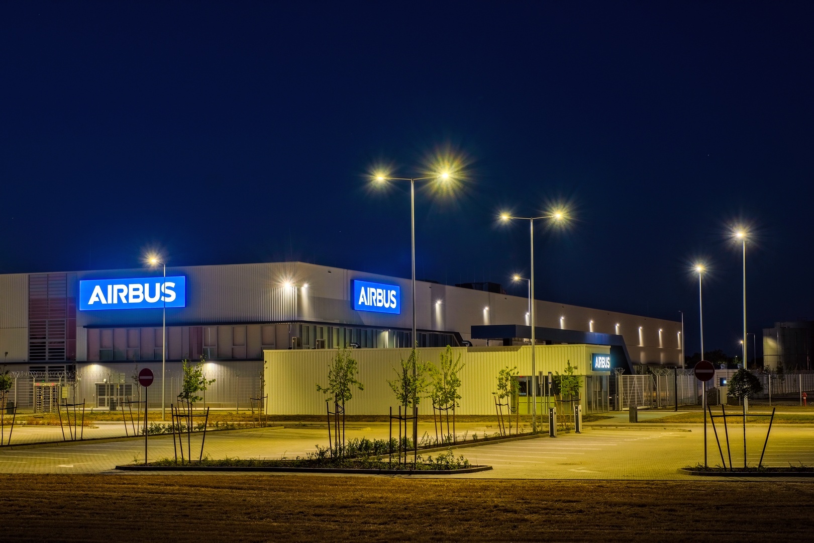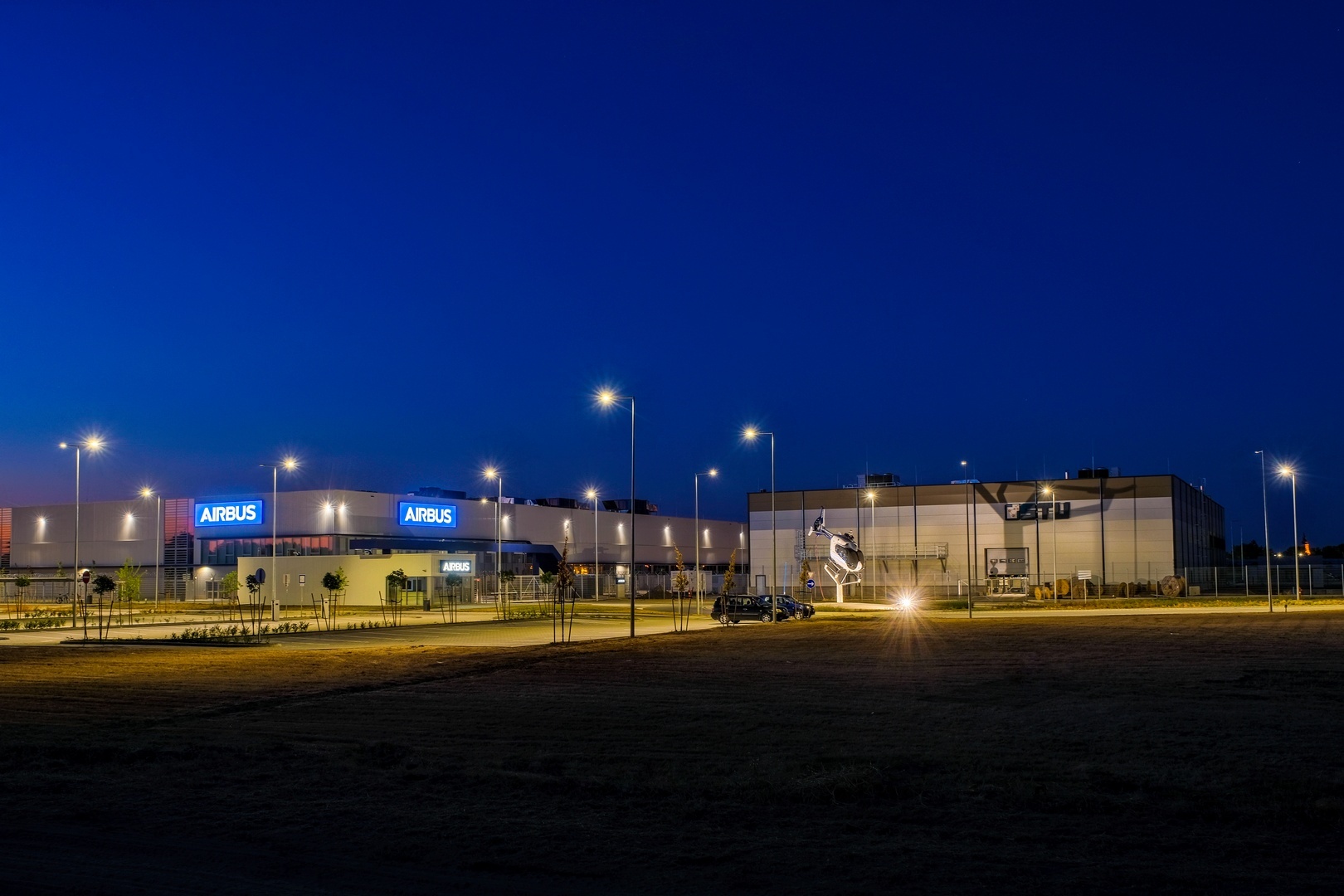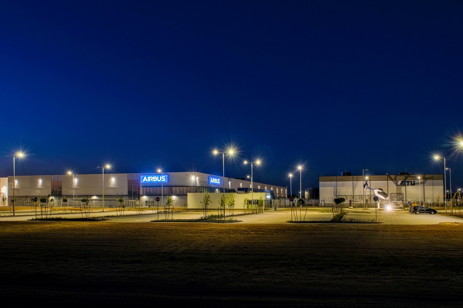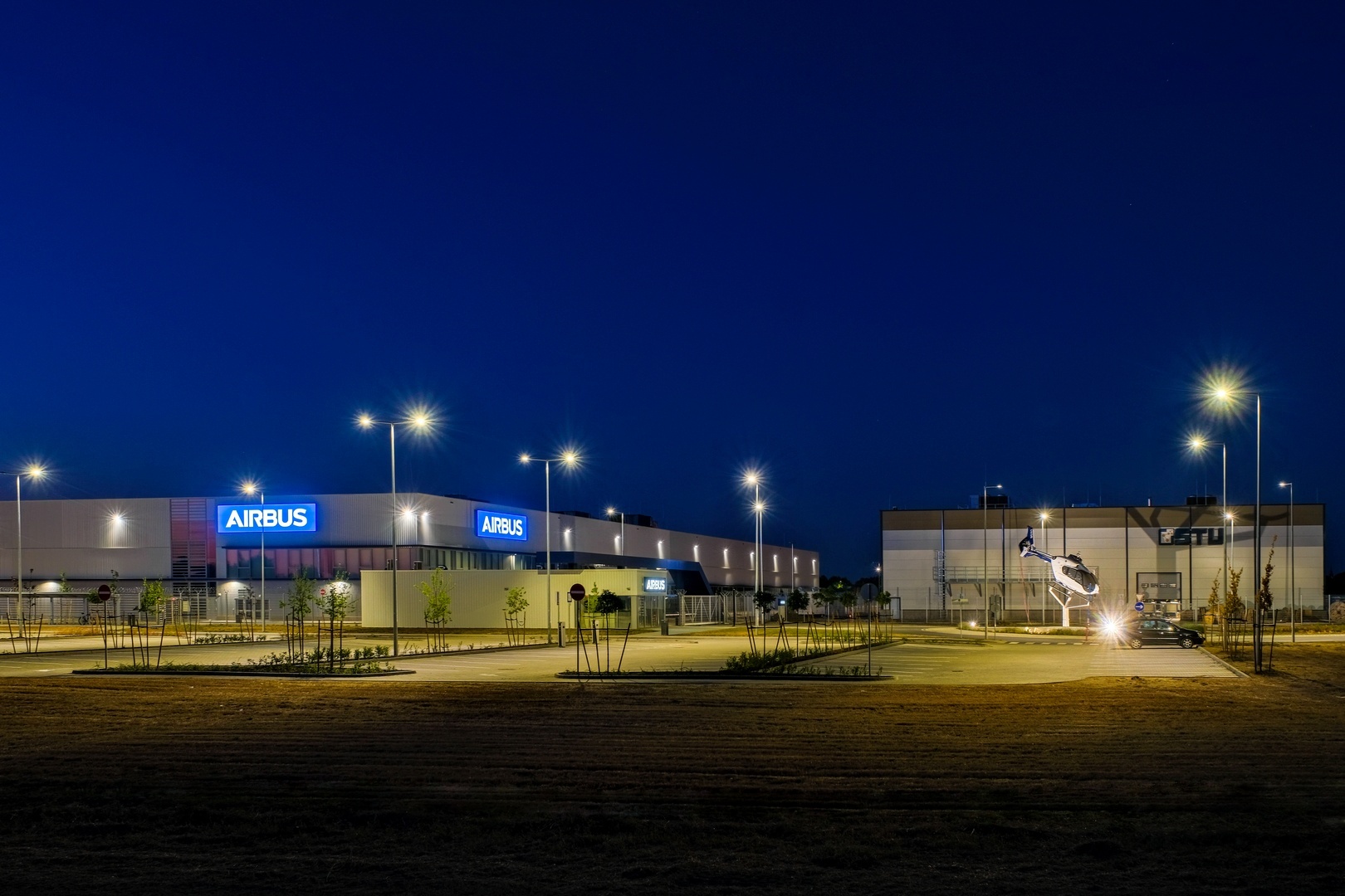 A gyulai Airbus-gyár ünnepélyes átadója július 28-án, csütörtökön délelőtt lesz. A tegnap este készült felvételeken már látható a gyár területén lévő körforgalom közepére telepített Airbus helikopter is.
