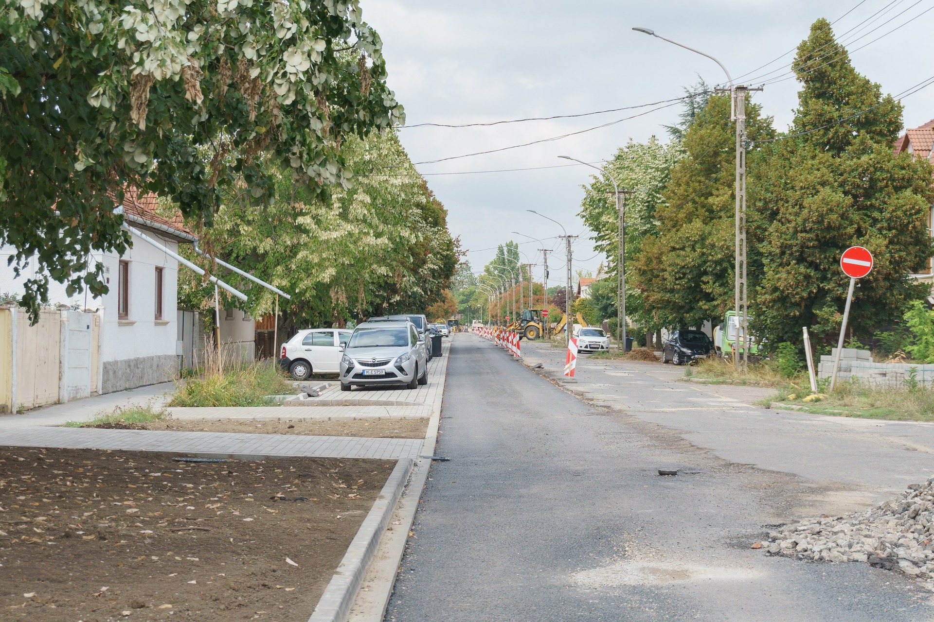Hozzátette: az utca páratlan oldalán – a Feketesas utcáig – elbontották az útpályát és a szegélyeket, valamint a járdát is, jelenleg az újjáépülő járdát burkolják.