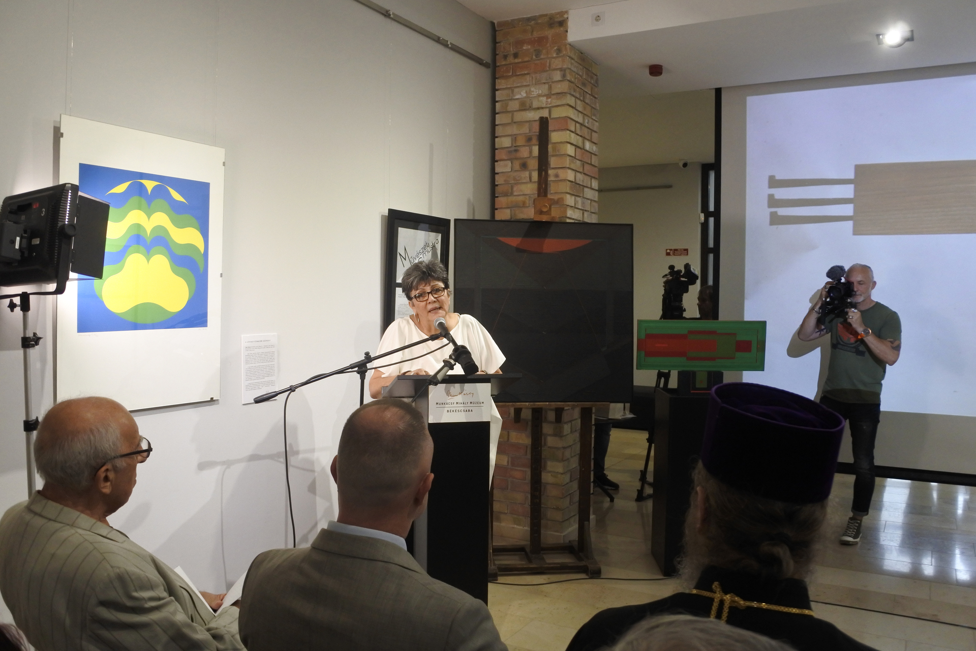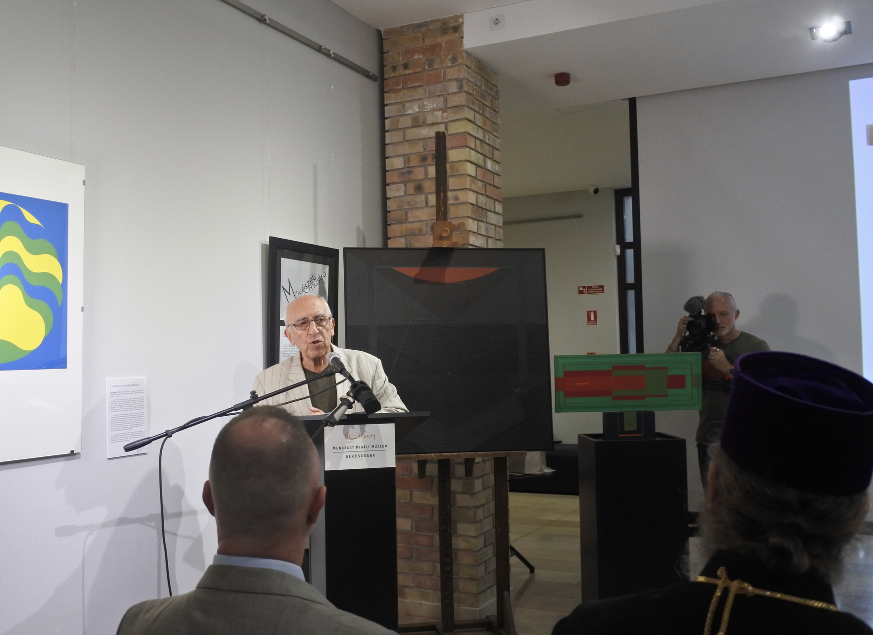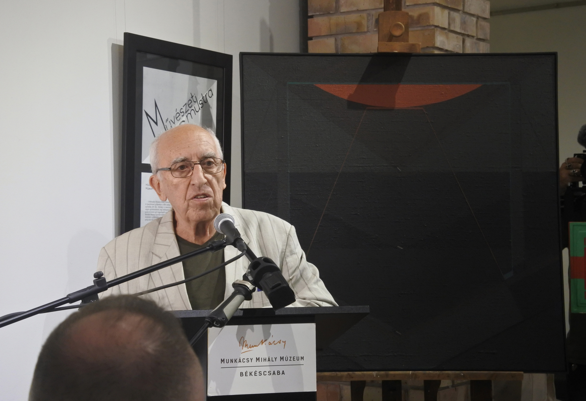 – Higgyünk benne, erre ösztönöz ez a kiállítás, hogy a konstrukció képes lehet a destrukció ellensúlyozására, hogy a moralitást fordítja szembe a totális erkölcstelenséggel. Nem pusztán közérzetünket javítja, noha az sem alábecsülendő, de élni segít, lévén tisztes létajánlat, lehetőség a vákuum, az alapállapot skizofréniájának fölismerésére, hárítására, a világ kozmikus egyetemességű geometriai rendjének tiszteletére – mondta.