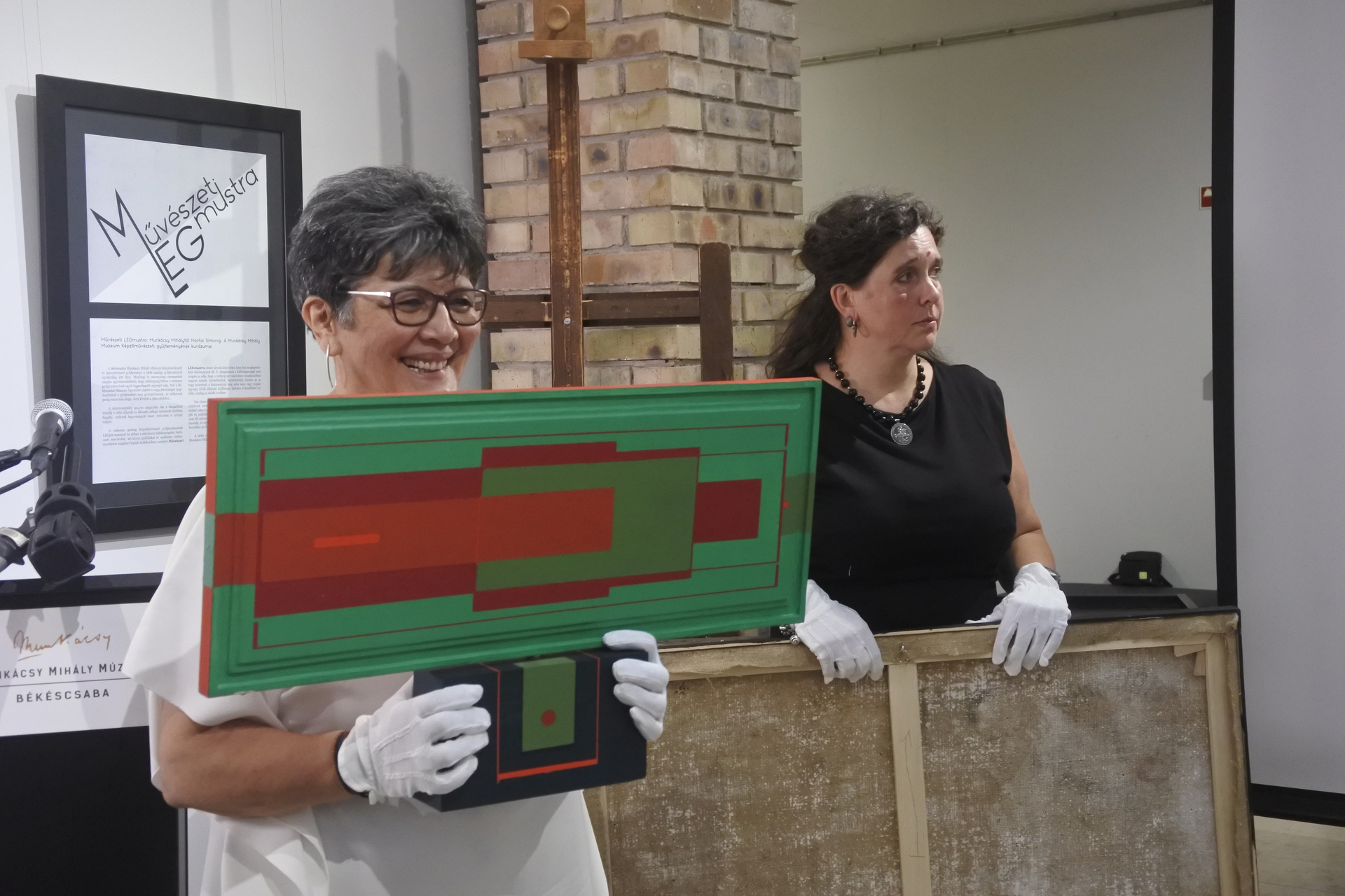 Martyin Emília, a Munkácsy Mihály Múzeum tudományos-muzeológiai osztályvezetője, néprajzos muzeológus a megnyitón elmondta: az időszaki tárlat egyik apropóját az adta, hogy a Gyulán élő művész két alkotását a múzeumnak ajándékozta. Az Ölelés című kisplasztika és a Rétegek című festmény bekerült a kiállítás anyagába, később pedig a múzeum képzőművészeti gyűjteményét gazdagítja.