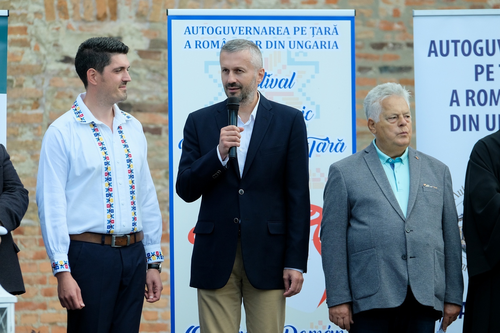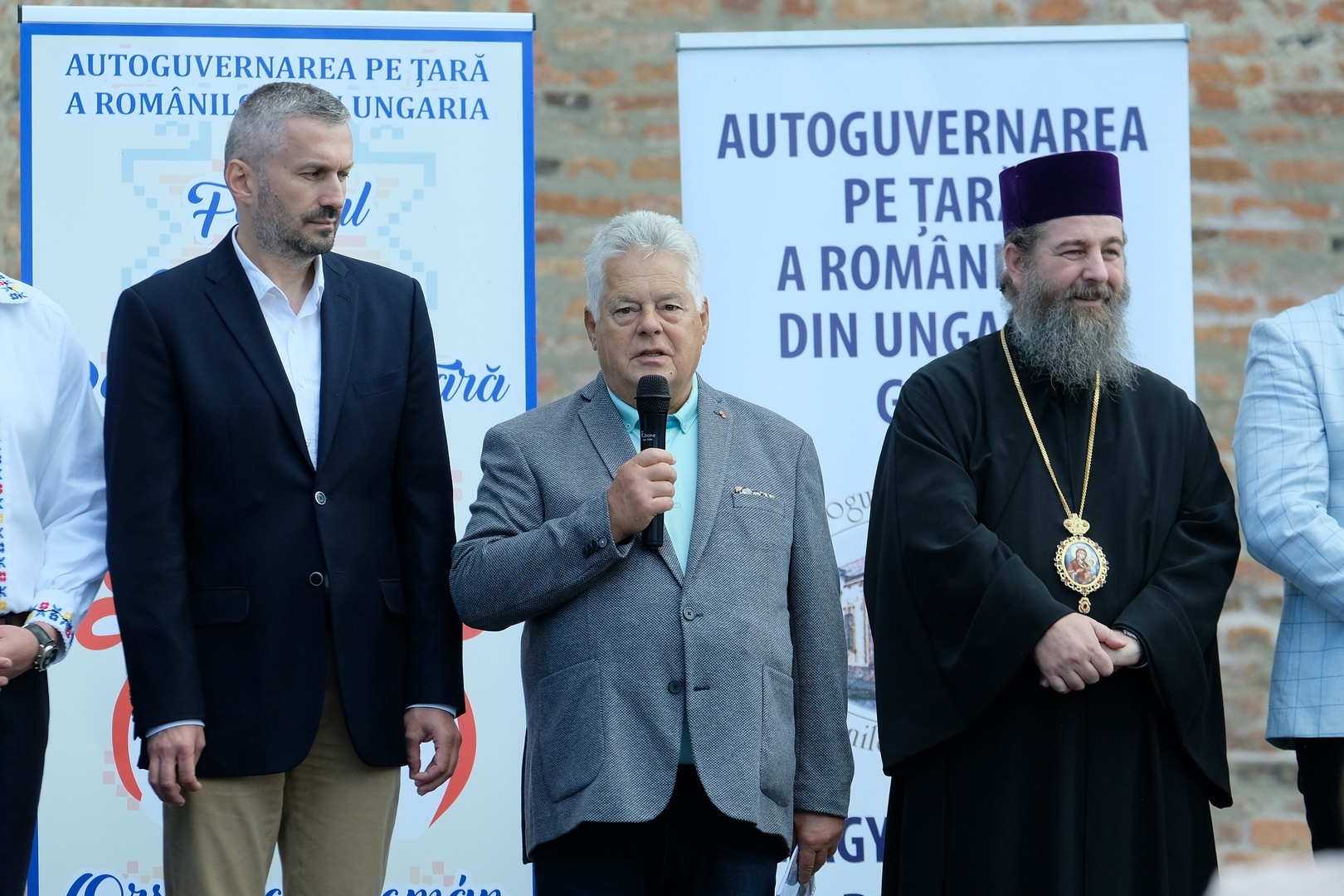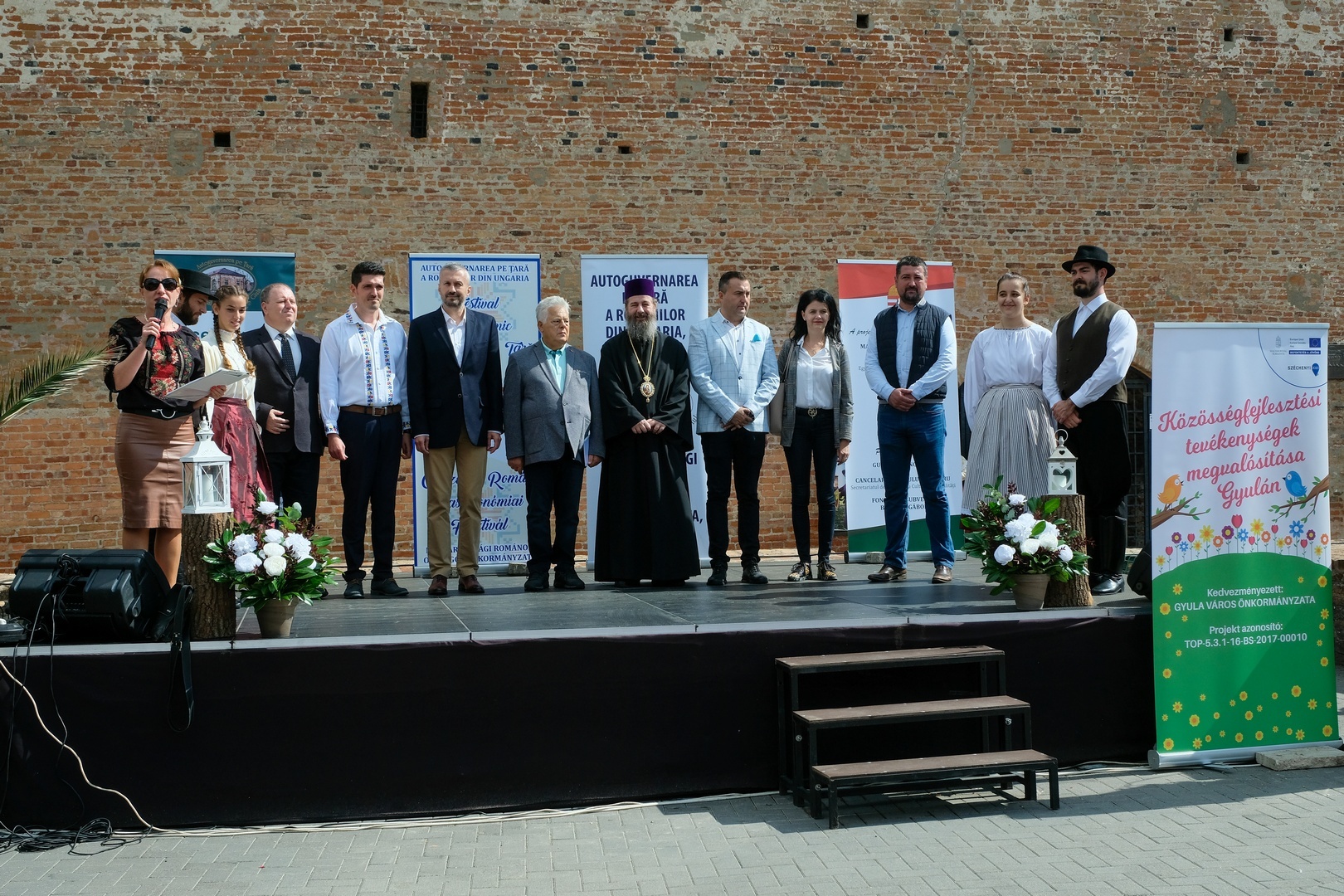 Kozma György, a Magyarországi Románok Országos Önkormányzatának elnöke és Kreszta Traján román nemzetiségi szószóló román nyelven kívánt jó szórakozást minden megjelentnek.