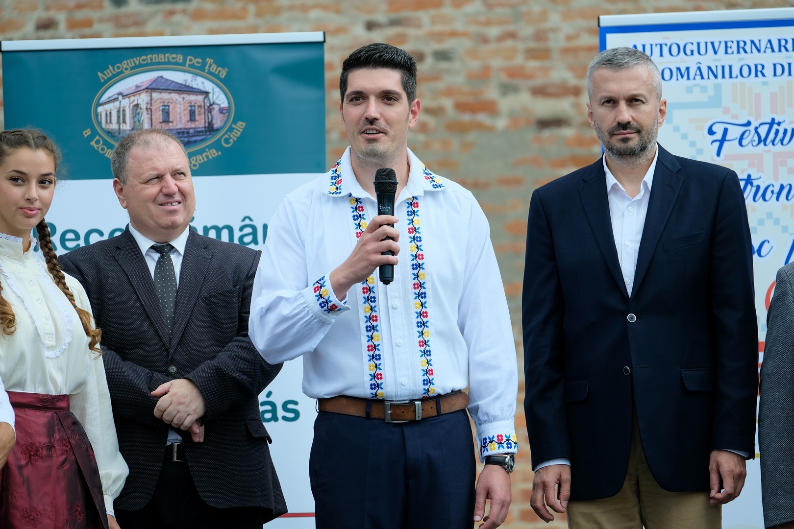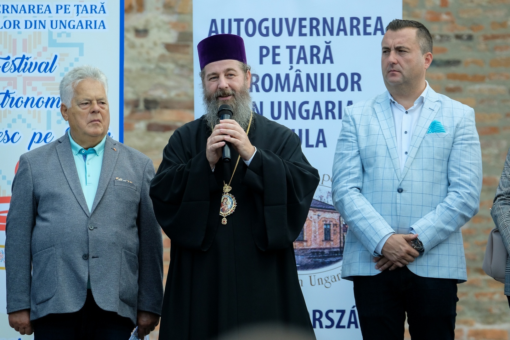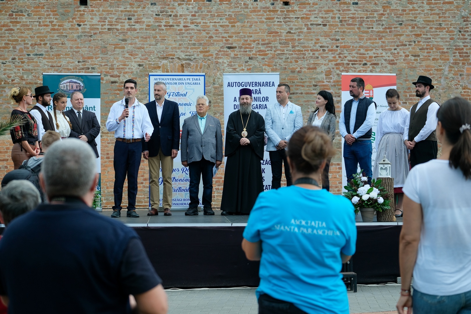 Kozma György, a Magyarországi Románok Országos Önkormányzatának elnöke és Kreszta Traján román nemzetiségi szószóló román nyelven kívánt jó szórakozást minden megjelentnek.