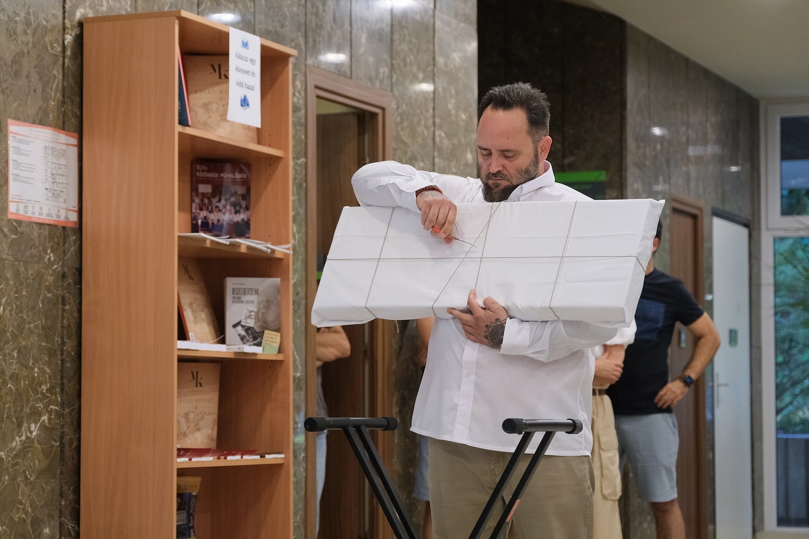 A megjelenteket Kukár István köszöntötte, aki társaival, Szuhaj Györggyel és Novák Attilával együtt rendezte be a kiállítást. Mint mondta, a háromtagú 3T Csoport idén ünnepli fennállásának huszadik évfordulóját, innen a tárlat elnevezése.