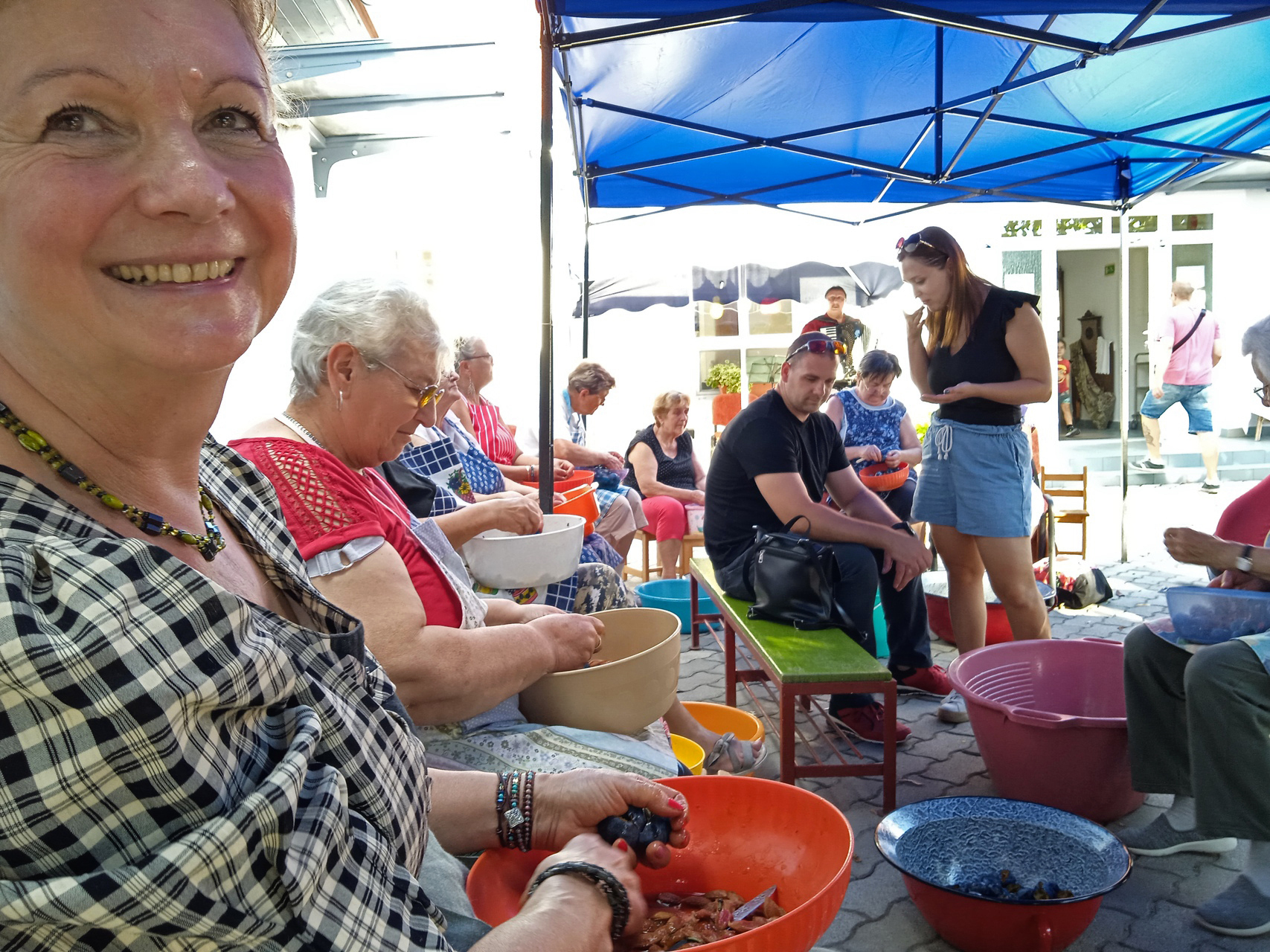 A folytatásban az intézmény vezetője ismertette a nap programját, majd kezdetét vette a munka, melynek során a másnap készülő szilvalekvárhoz szükséges szilvát magvalták ki a megjelent kicsik és nagyok.