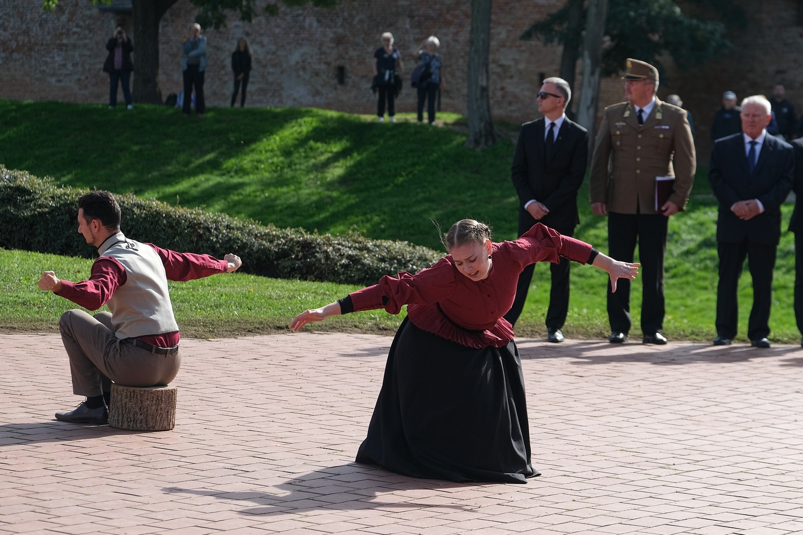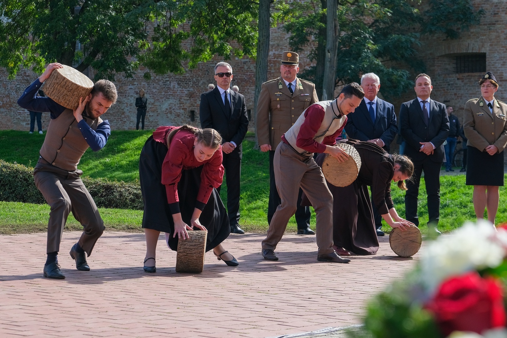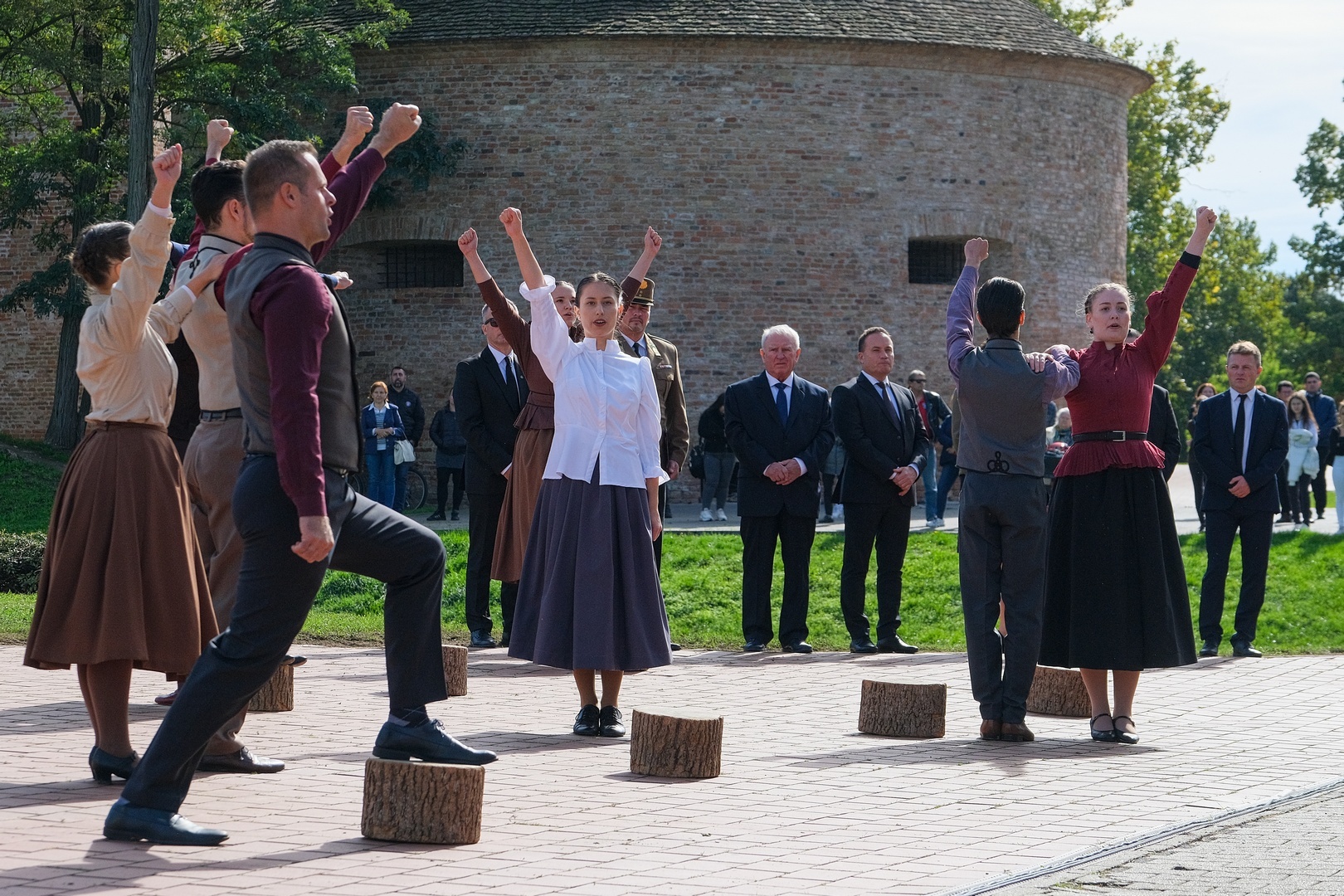 Az emlékbeszéd után Varga Miklós színművész és a Tabán Táncegyüttes adták elő Őrizd a lángot című emlékműsorukat, majd a koszorúk elhelyezése zárta a megemlékezést.