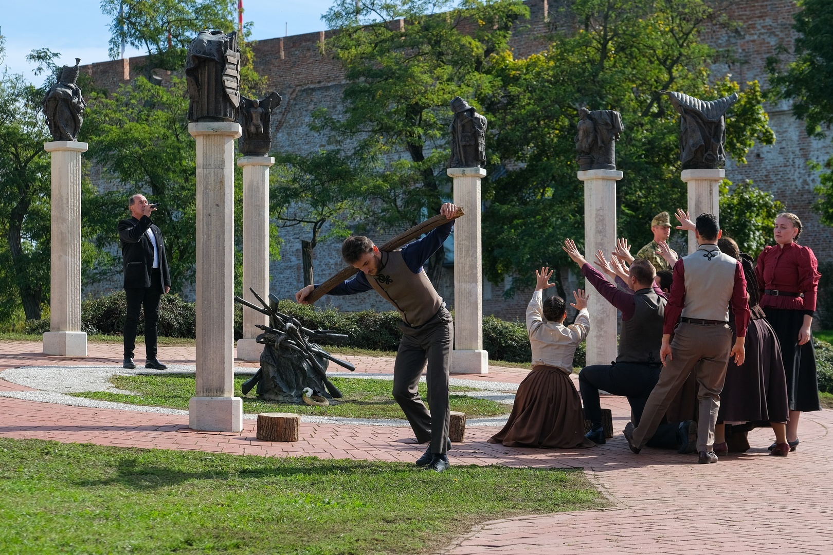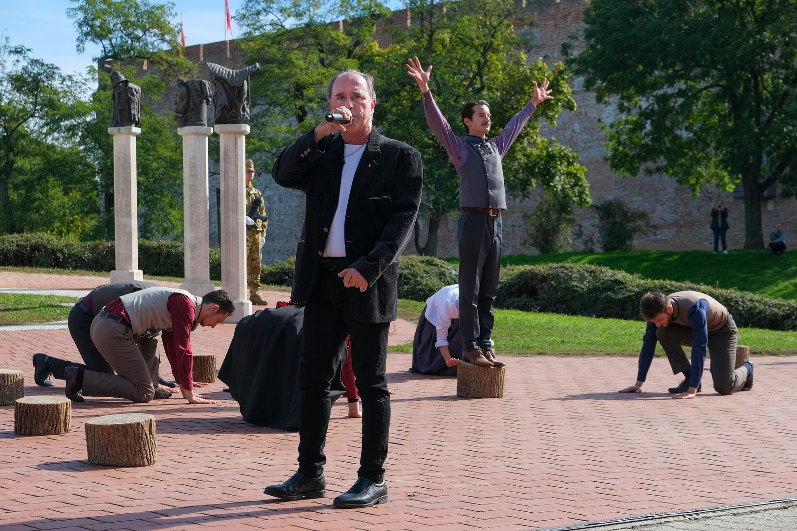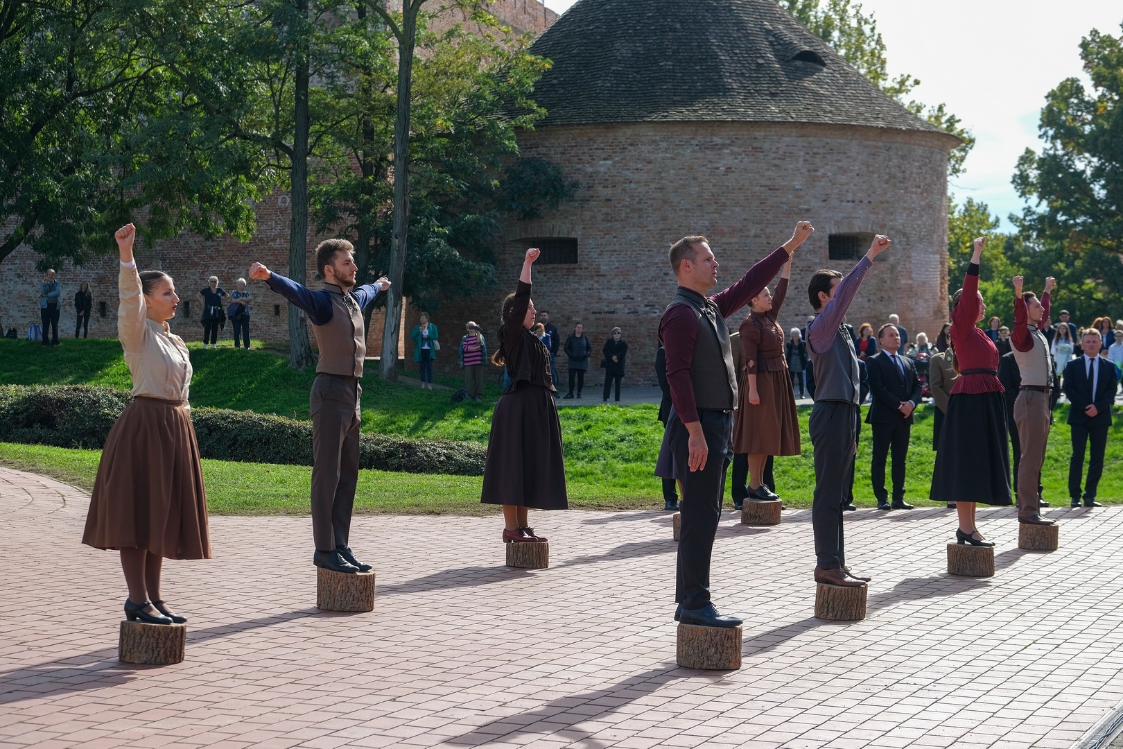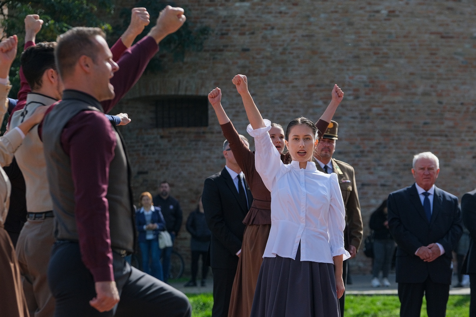 Az emlékbeszéd után Varga Miklós színművész és a Tabán Táncegyüttes adták elő Őrizd a lángot című emlékműsorukat, majd a koszorúk elhelyezése zárta a megemlékezést.