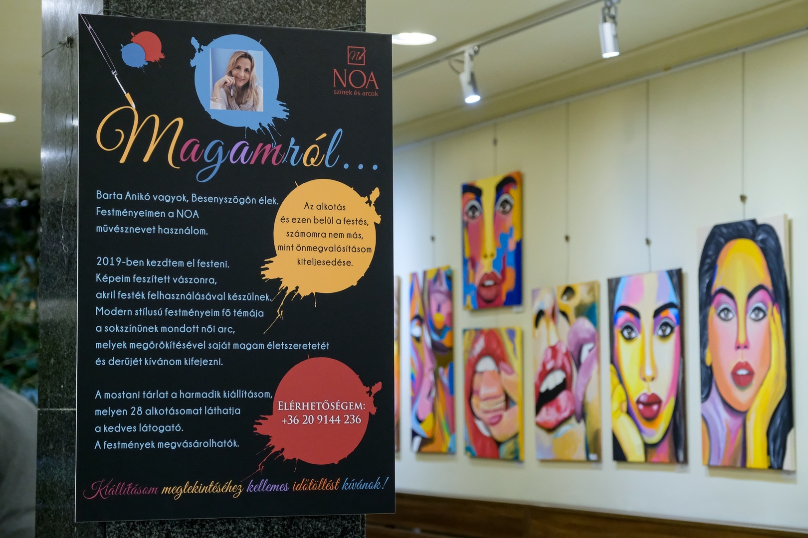 A tárlaton 28 képet állított ki a Noa művésznéven tevékenykedő alkotó, aki 2019-ben kezdett foglalkozni a festéssel. A modern stílusú festmények fő témája a női arc, amellyel az alkotó saját életszeretetét fejezi ki, illetve mindazt, amit szerinte egy nő közvetít: szenvedélyt, szomorúságot, intimitást.