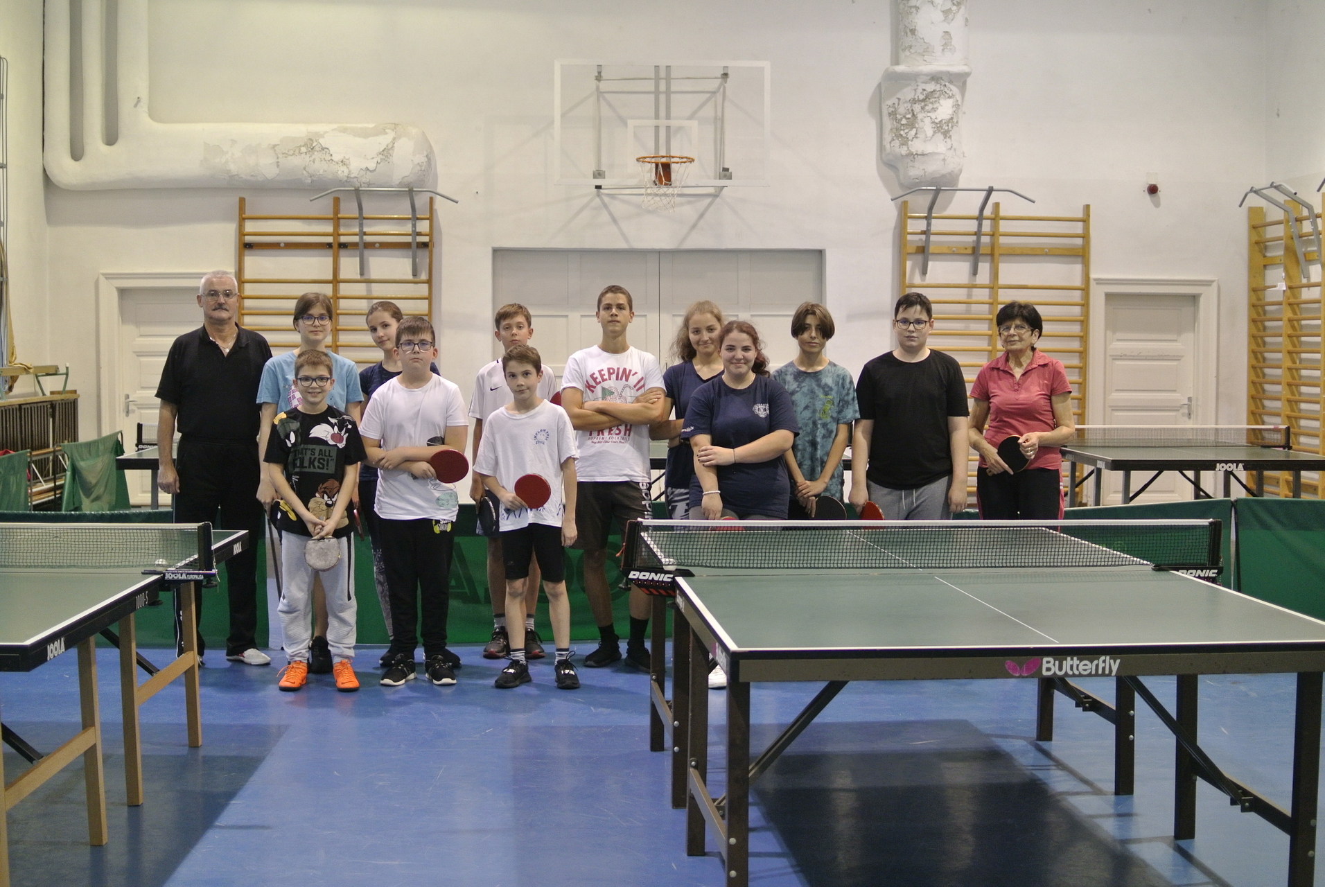 a gyulai asztalitenisz klub utánpótlás edzésének résztvevői
