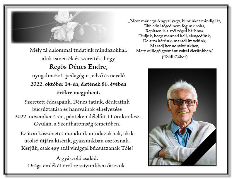 Gyulai Hírlap - Elhunyt Regős Dénes Endre