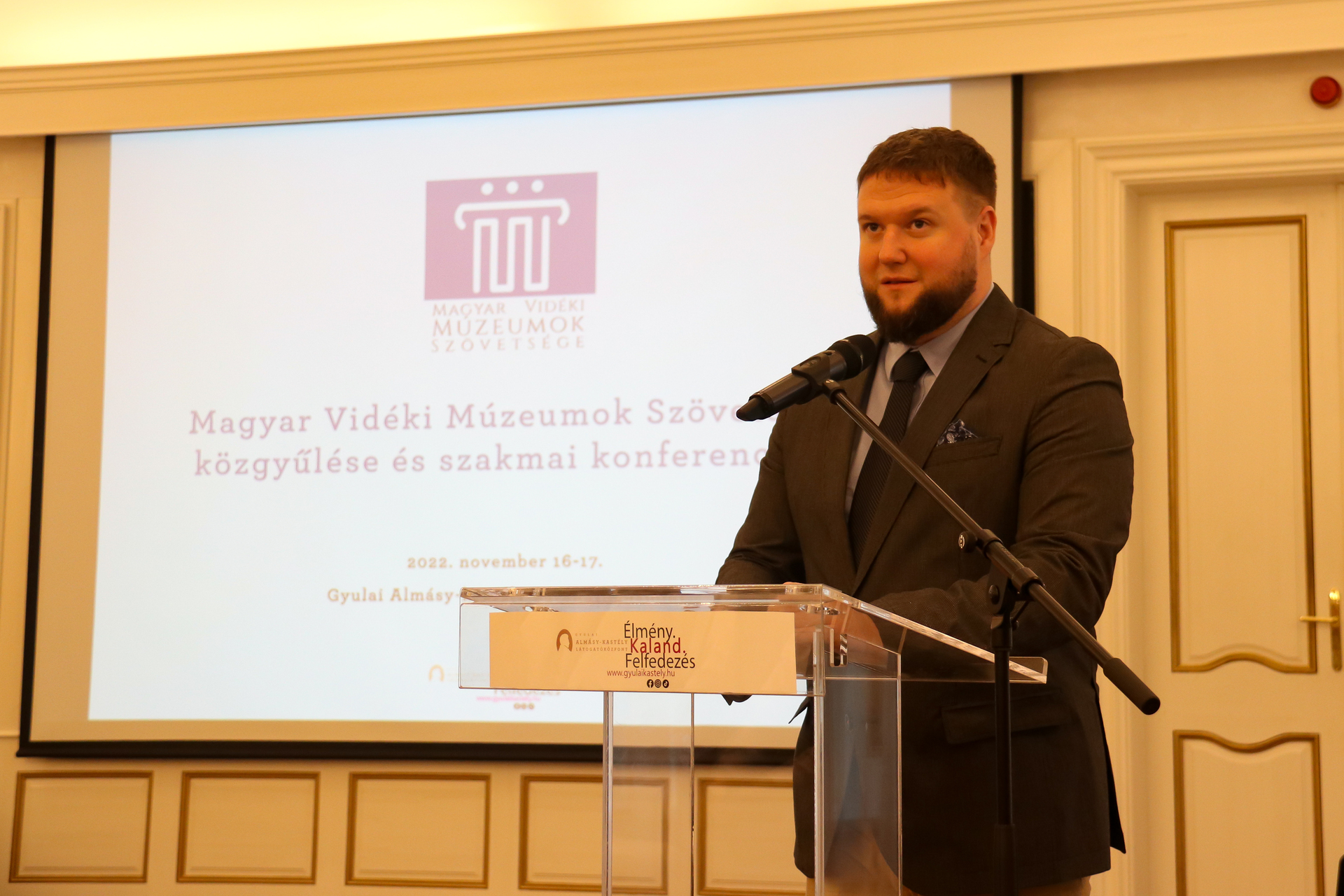 Liska András, a gyulai Erkel Ferenc Múzeum szakmai vezetője kiemelte, az MVMSZ rendezvénye a harmadik olyan esemény Gyulán, amelyet a Magyar Géniusz Program keretében szerveznek. Emlékeztetett, nyáron a Magyar Géniusz vándorkiállítás egyik helyszíne volt a fürdőváros, néhány hete pedig A fény gyulai géniuszai címmel rendeztek konferenciát a településen. Hangsúlyozta, ezek az események is azt mutatják, hogy egy olyan kisebb vidéki múzeum is, mint a gyulai időről időre a szakma fókuszába tud kerülni.