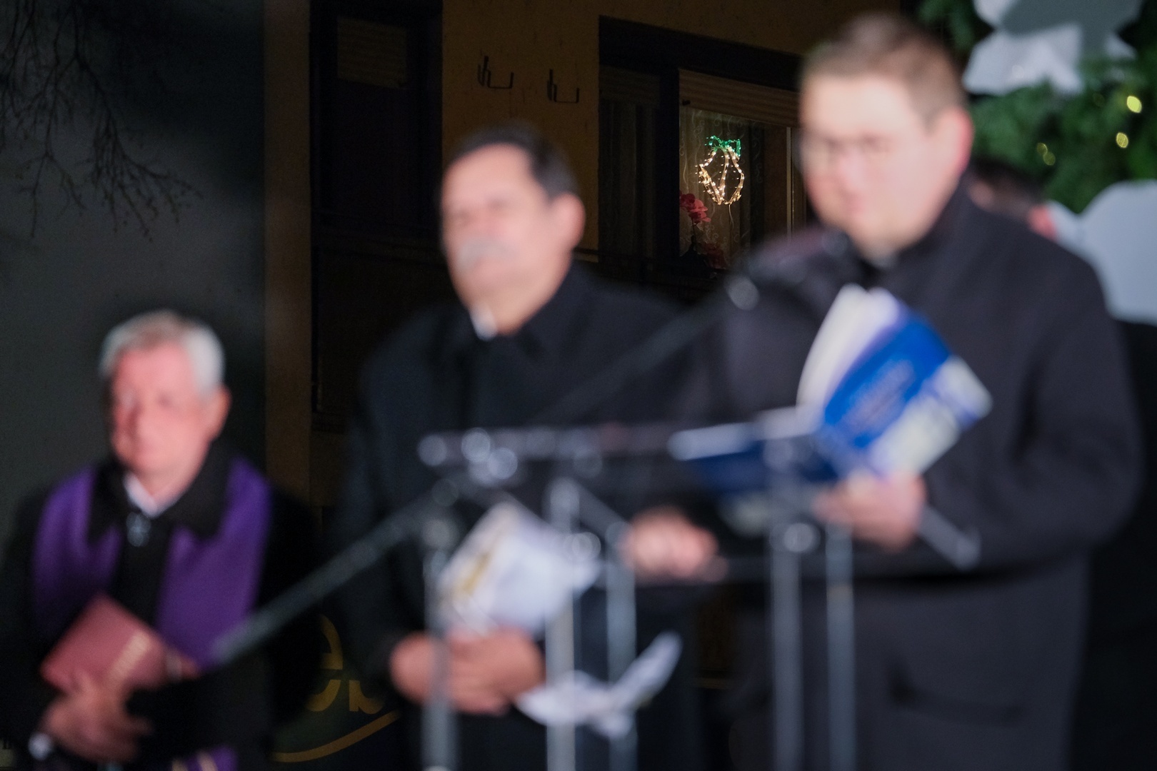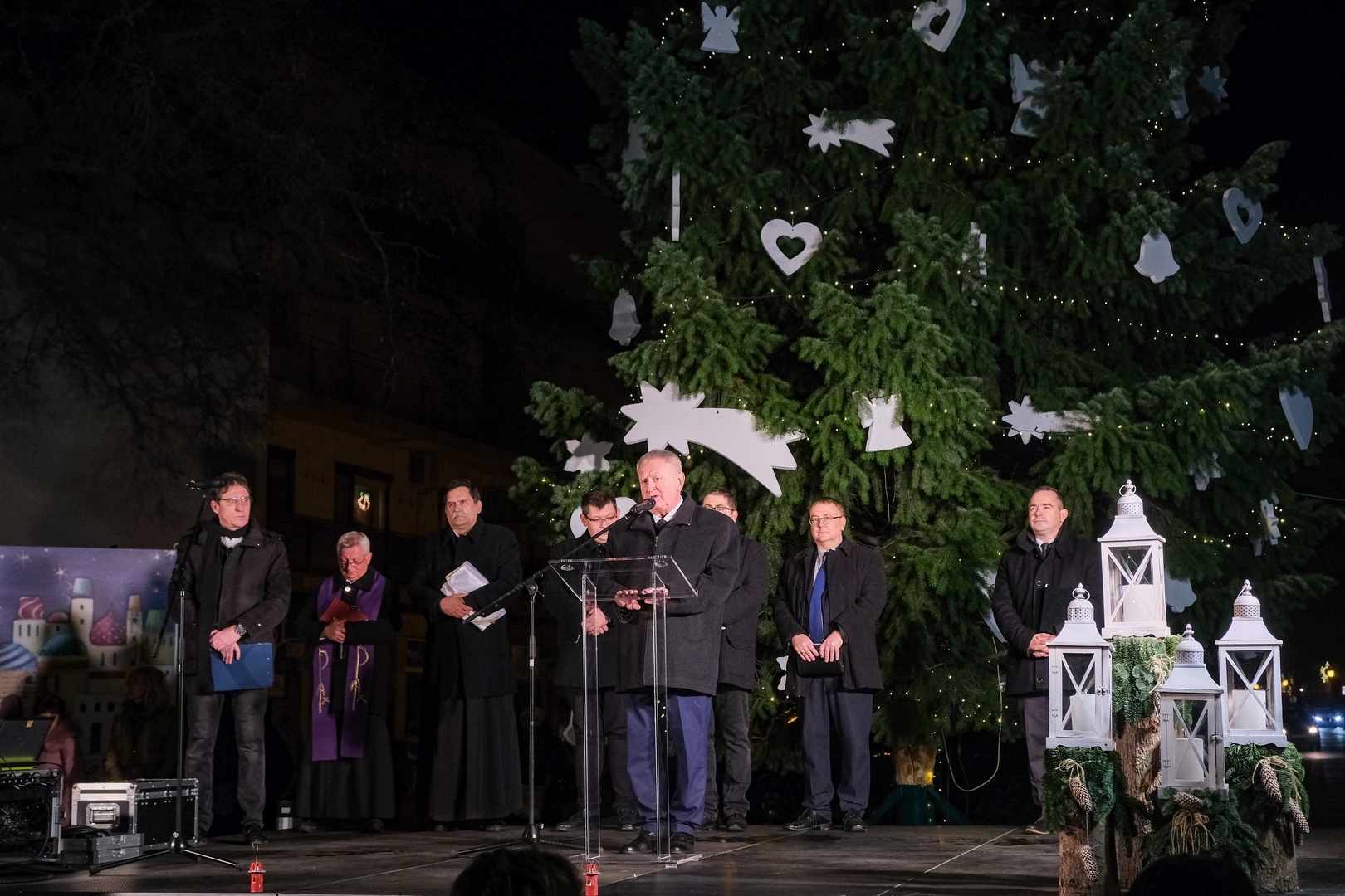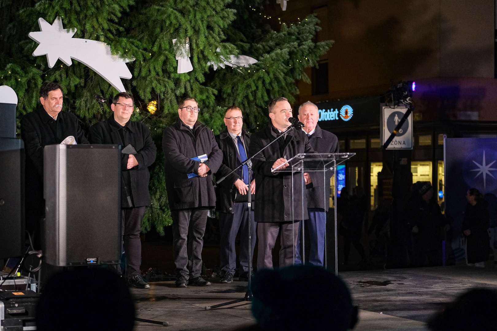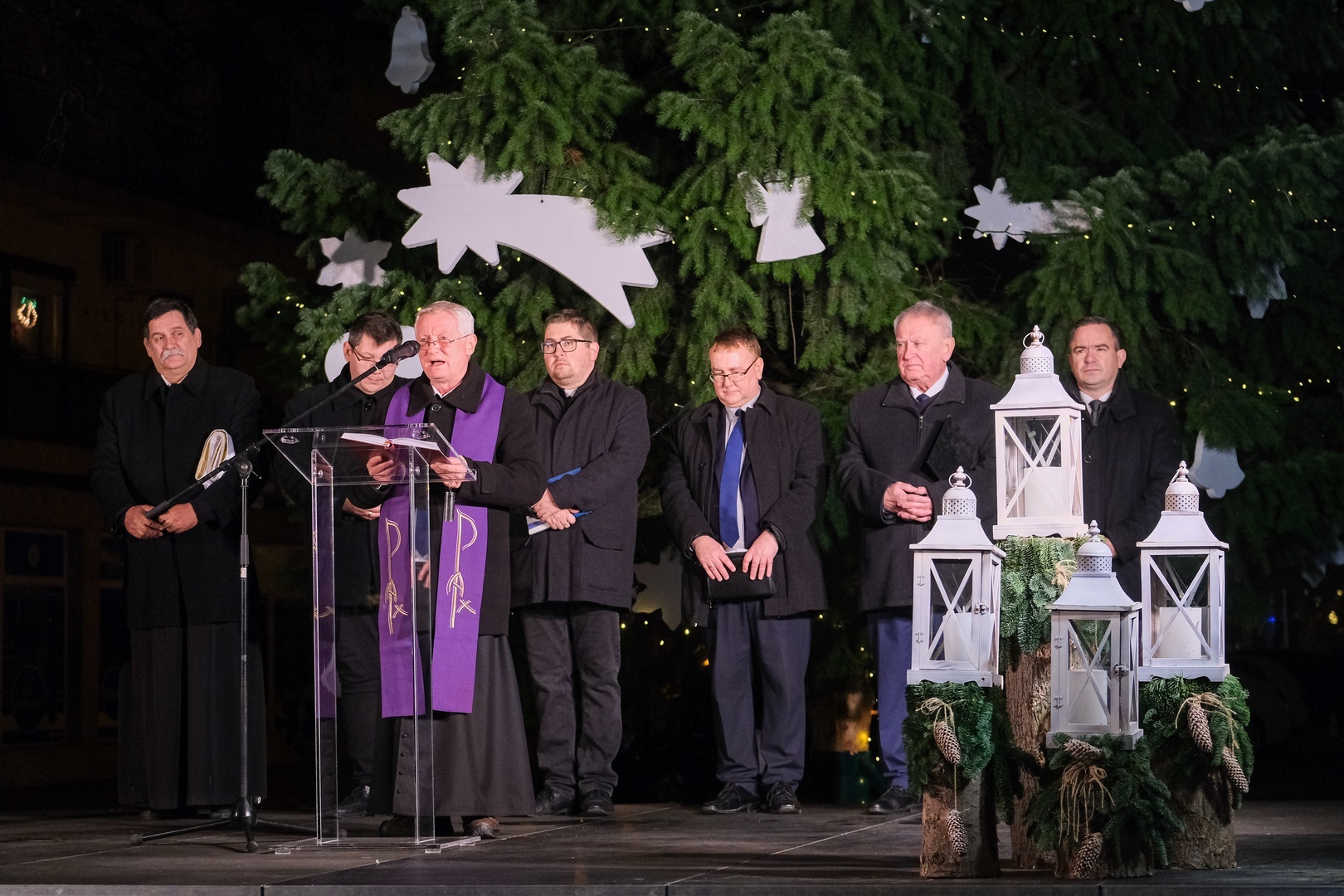 A köszöntők után az egyházak képviselőinek gondolatai következtek: Merényi Zoltán baptista lelkész, Pápai Attila evangélikus lelkész, Baráth János református lelkész és Márk Tivadar román ortodox lelkész beszéltek az ünneplőkhöz. A város adventi koszorúját Kovács Péter esperesplébános áldotta meg. Ezt követően Kónya István gyújtotta meg az első gyertyát.