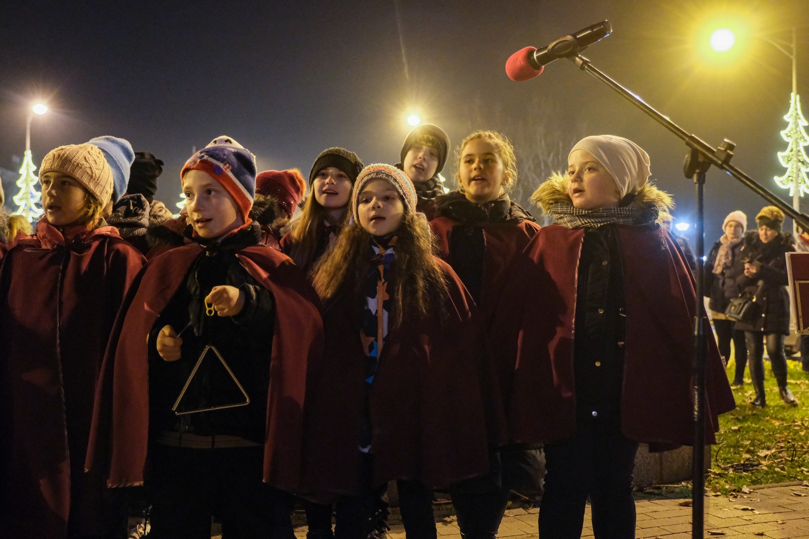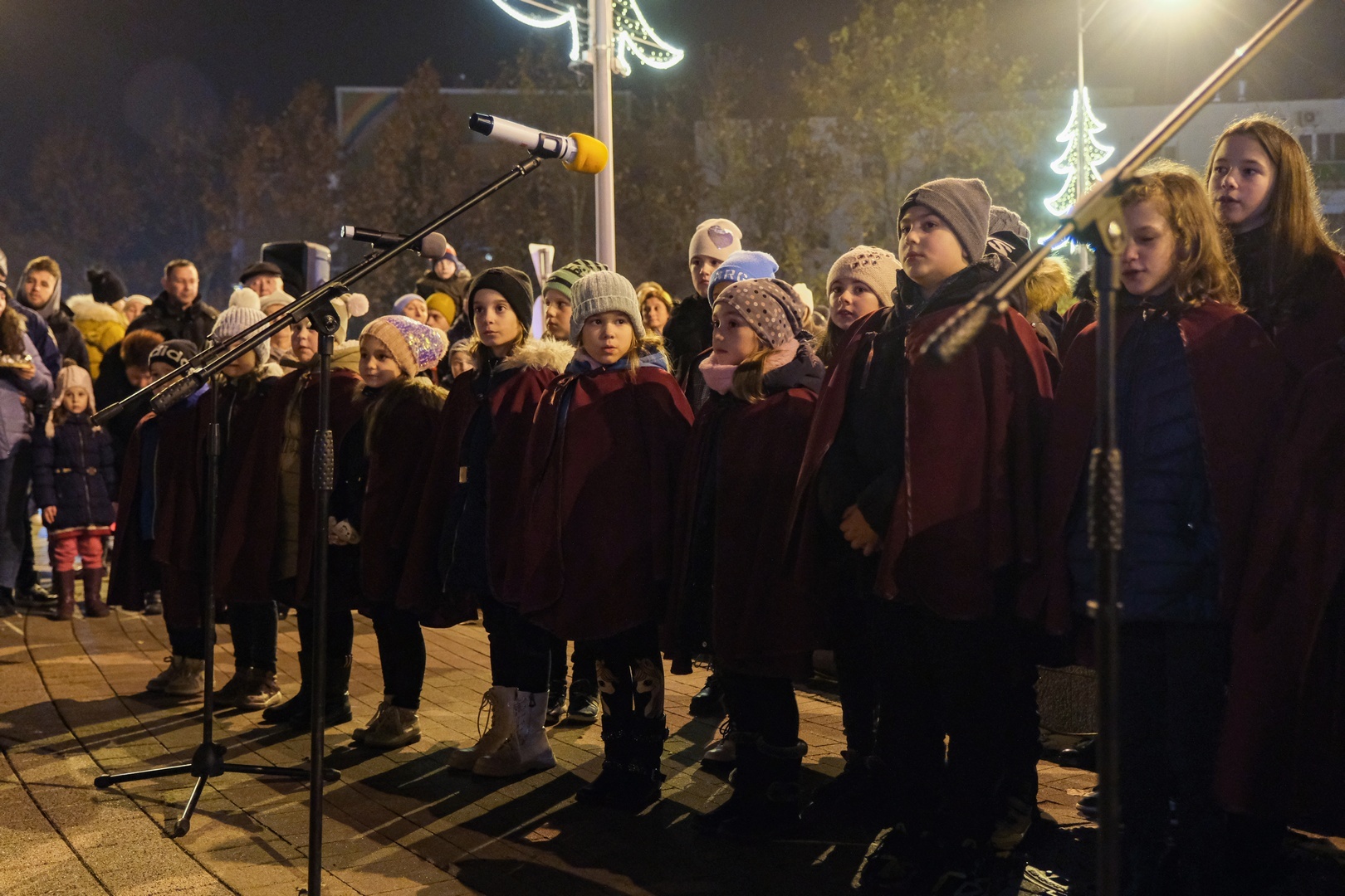 A folytatásban a Kossuth téri koszorún is meggyújtották az első gyertyát a Karácsonyi János általános iskola gyermekkórusának közreműködésével.