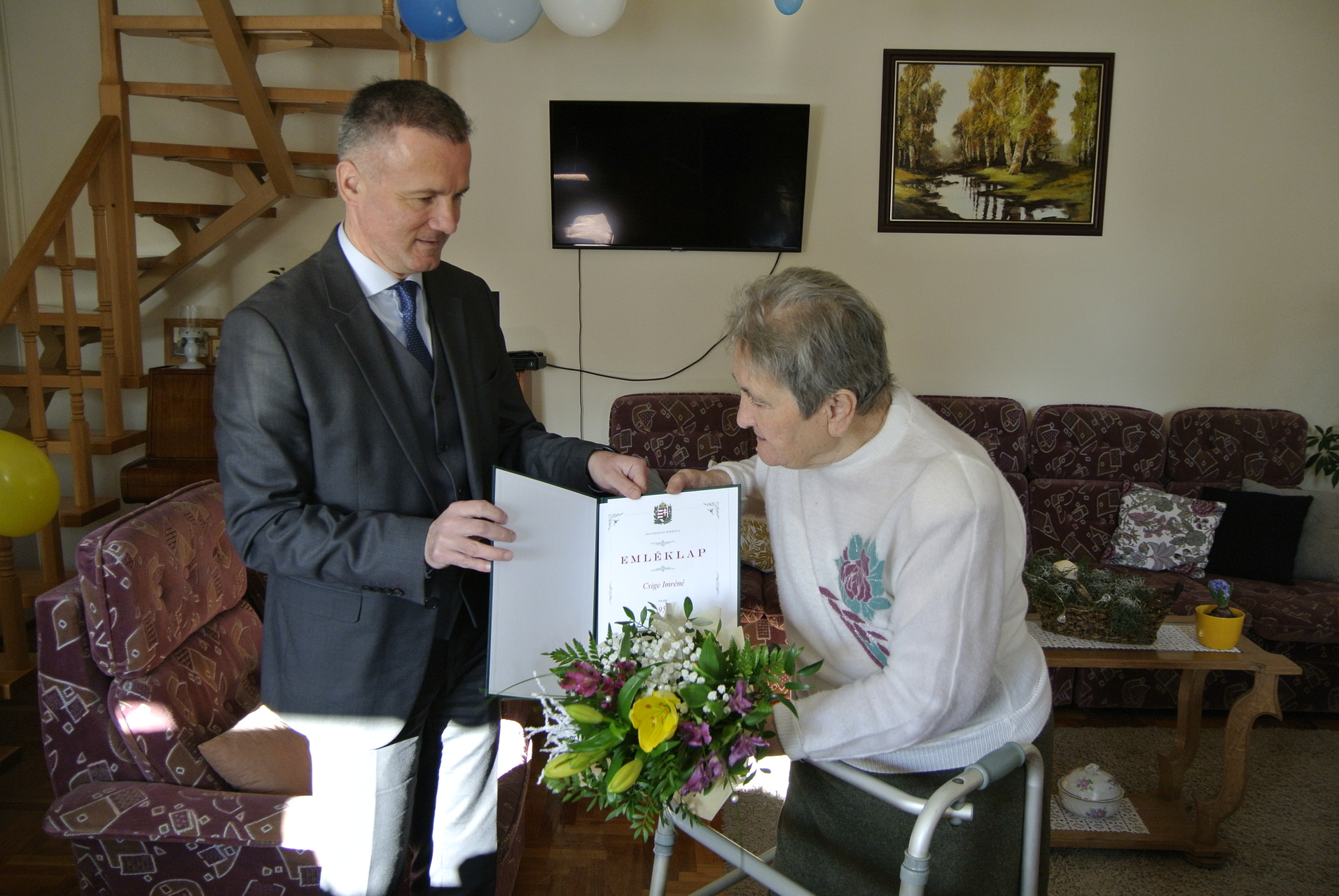 Csige Imrénét köszöntötte 95. születésnapja alkalmából Görgényi Ernő polgármester, Timár Andrea aljegyző és Kiss Tamásné önkormányzati képviselő december 19-én. Az ünnepelt tortát, virágot és a miniszterelnök által aláírt emléklapot kapott ajándékba.