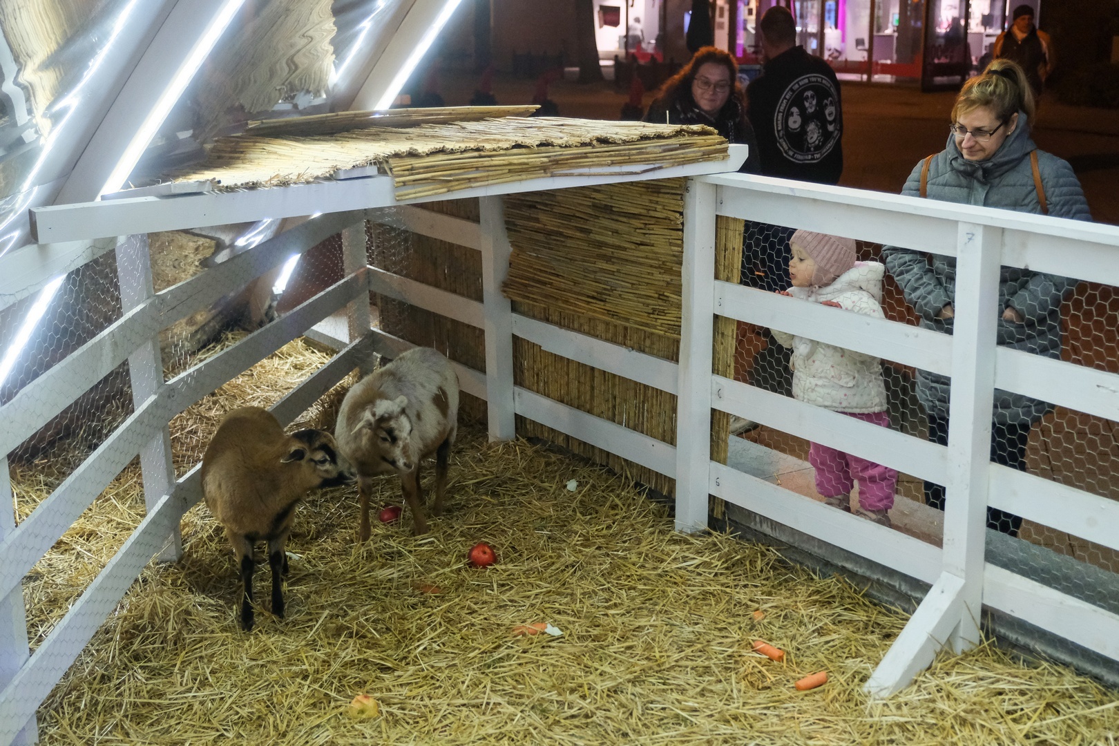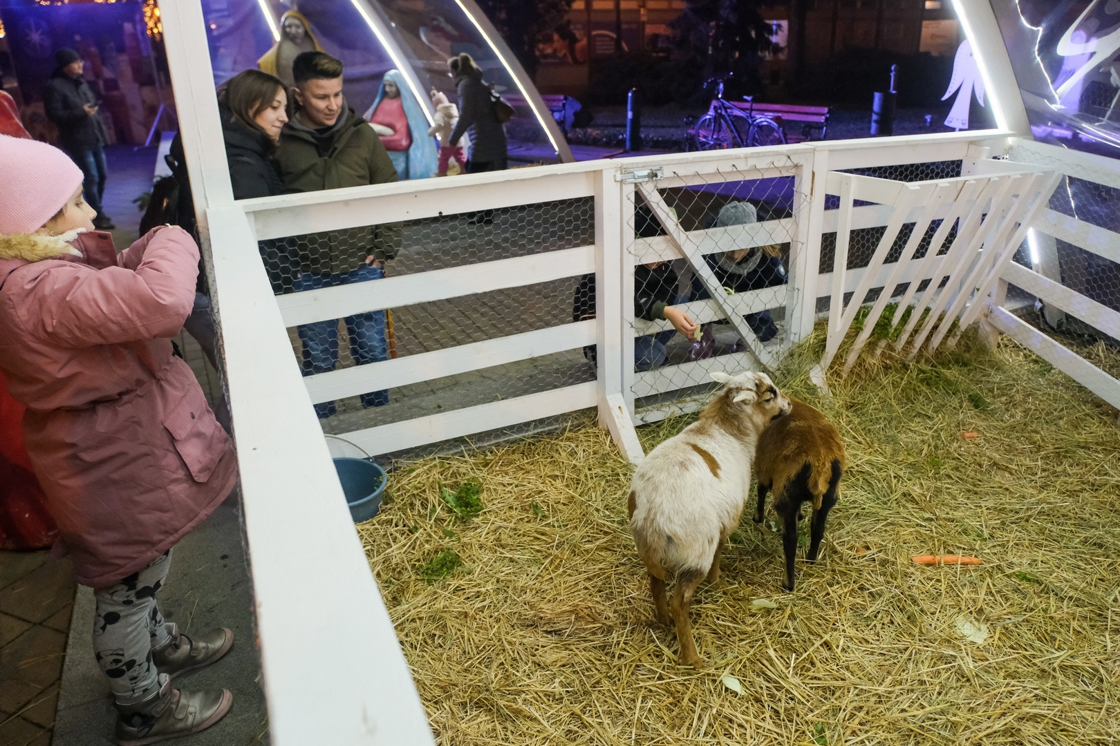 Már a gyerekek is nagyon várták a Harruckern téren felállított birkasimogatóba érkezett két jószágot. Az állatok december végéig lesznek láthatóak a jászol mellett.