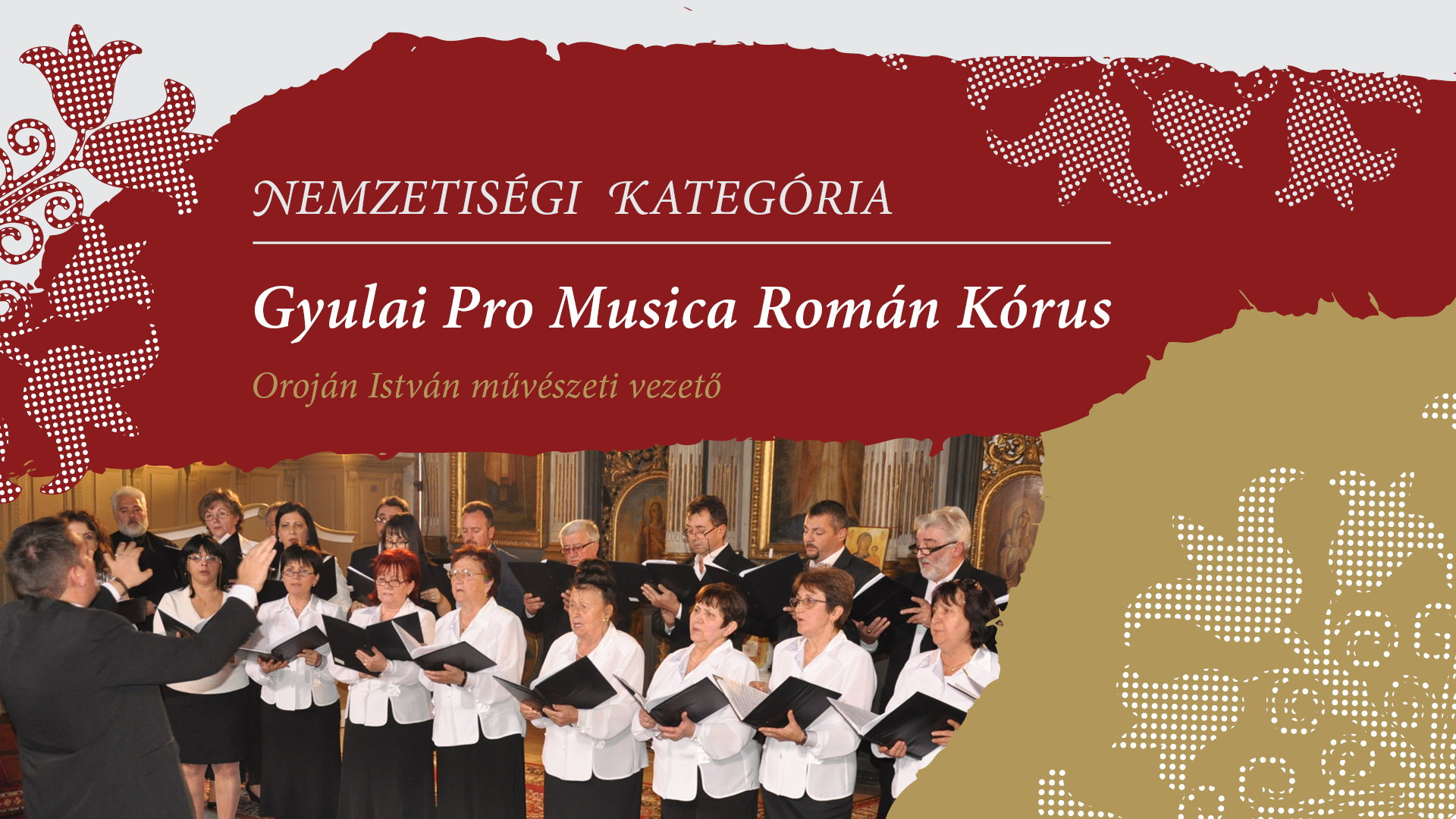 Az 1991-ben alakult, jelenleg 25 tagú Gyulai Pro Musica Román Kórus repertoárján az európai kórusmuzsika klasszikus, romantikus és modern szerzeményei mellett mai román szerzők művei, román egyházi énekek, román és magyar népfeldolgozások is szerepelnek. Évek óta megtartják a „Viva la Musica!” világi és egyházzenei fesztivált, és szakmai találkozókat is szerveznek Gyulán – emelték a laudációban.
