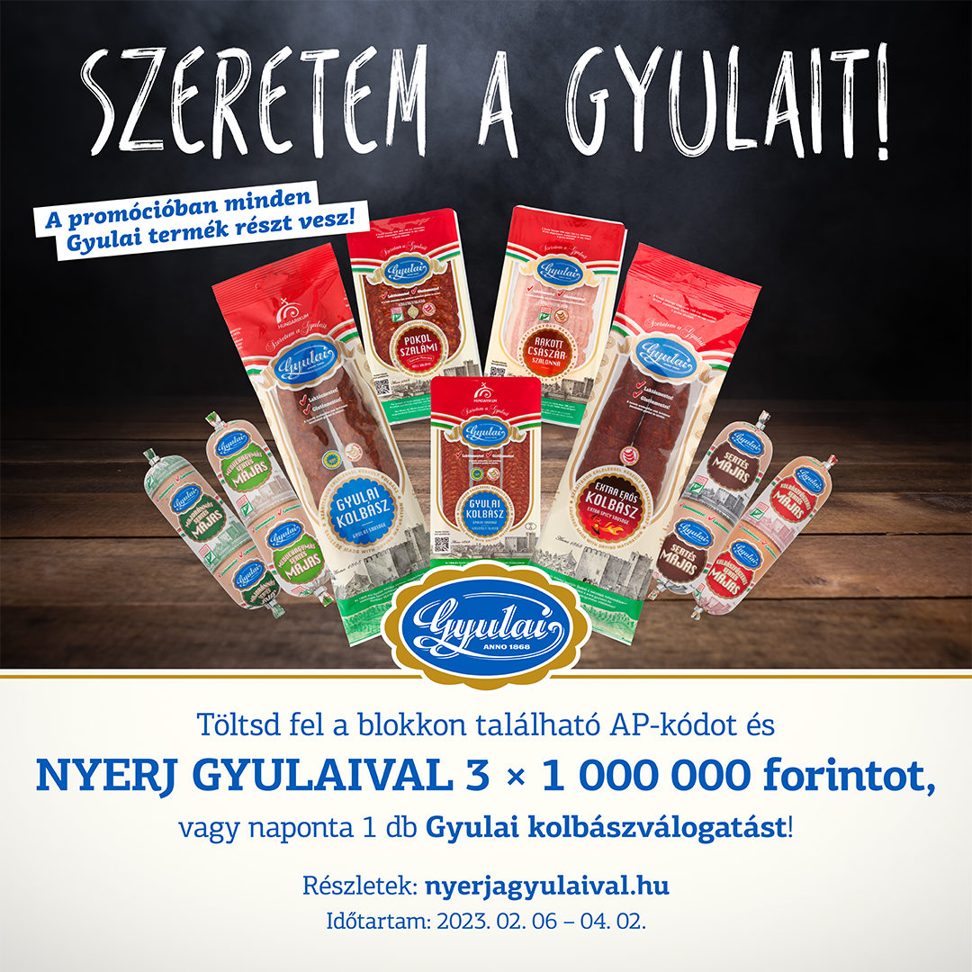 Mint megtudtuk, a nyereményjátékban a Gyulai összes terméke részt vesz. Tamáskovitsné Gila Éva a cég egyik legnépszerűbb termékével kapcsolatban megjegyezte: a Gyulai májas ma is az eredeti receptúra alapján készül, ennek ellenére megfelel a mai fogyasztói elvárásoknak is: sem laktózt, sem glutént nem tartalmaz, így a mára népbetegségnek nevezhető táplálékintoleranciában szenvedők étrendjébe is bátran beilleszthető.