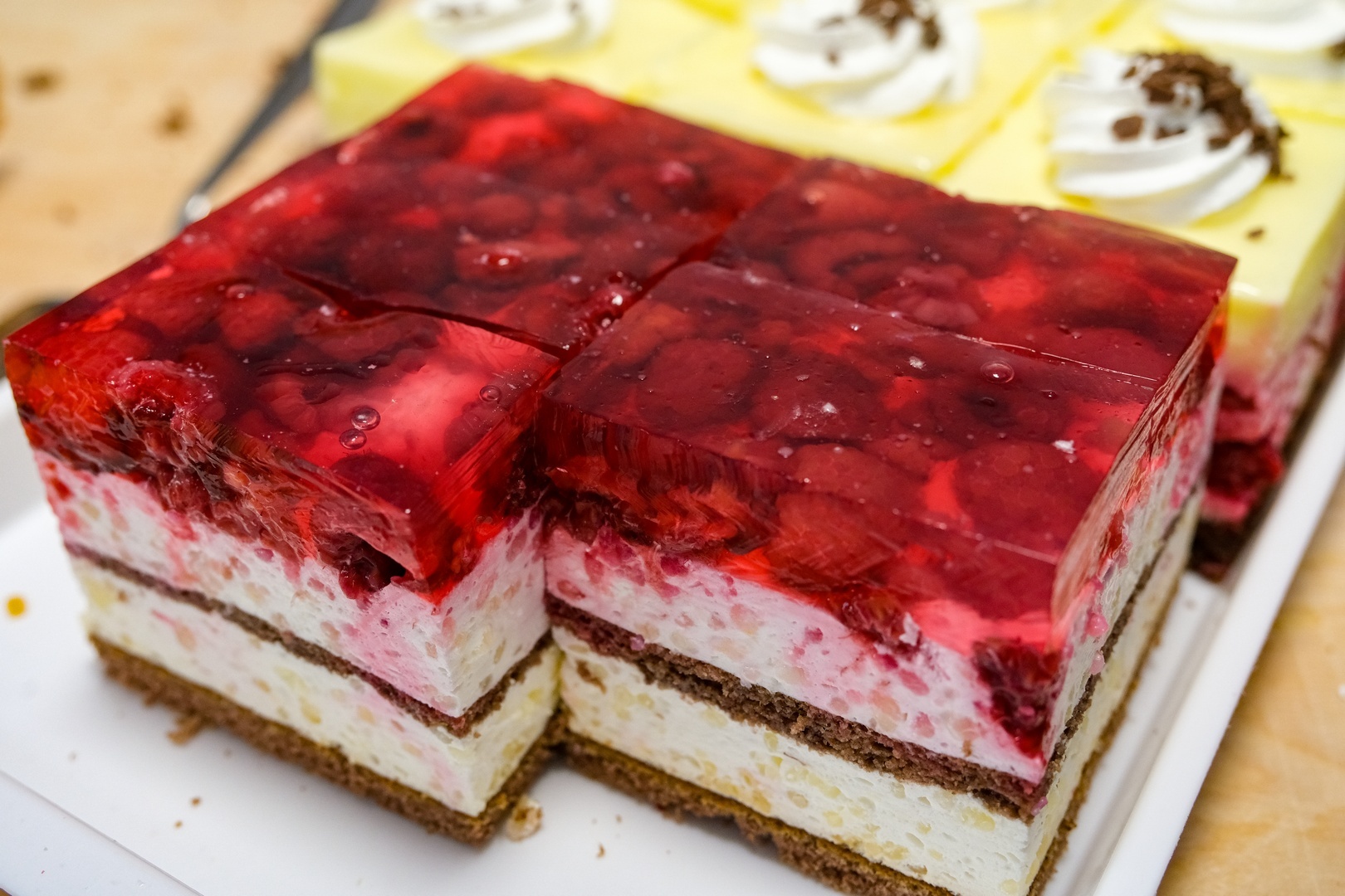 Mint megtudtuk, a cukrászda műhelyében ötvenféle szeletelt sütemény készül. A süteményfajtákat napi szinten váltogatják, egyszerre tíz-tizenöt féle található a pultban.