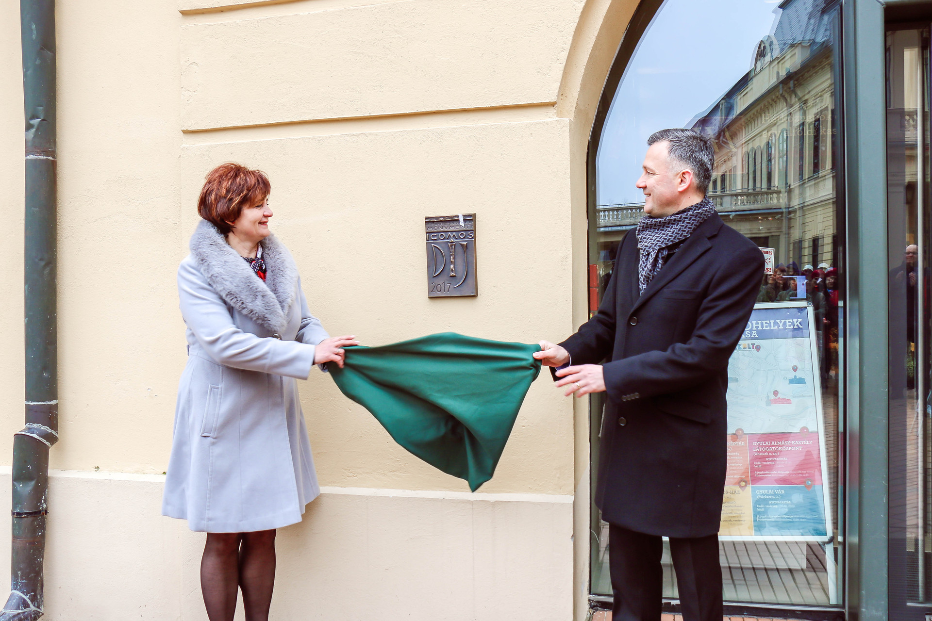 5 évvel ezelőtt, 2018. március 18-án ünnepélyesen felavatták a gyulai Almásy-kastély Látogatóközpont ICOMOS-díja kapcsán elkészült emléktáblát. Az ICOMOS Magyar Nemzeti Bizottsága 2006-ban célul tűzte ki, hogy évente jutalmazza az általa legkiválóbbnak ítélt, három évnél nem régebben befejezett műemléki helyreállításokat. Ezt a díjat kapta meg 2017-ben a gyulai Almásy-kastély. Ennek a díjnak az emléktábláját leplezte le Dombi Ildikó, a látogatóközpont ügyvezető igazgatója és Görgényi Ernő, Gyula város polgármestere. A kastély helyreállítása hatalmas munka volt, amelyet 2 milliárd 400 millió forint európai uniós és állami támogatás, illetve önkormányzati önerő tett lehetővé. Az emléktábla leleplezése után Dombi Ildikó a Nobilitas Anno Alapítvány ajándékát is átvehette. Gyevnár Erika, az alapítvány kuratóriumi elnöke az Almásy család címerét ábrázoló képet nyújtott át az intézmény két éves születésnapja alkalmából.