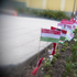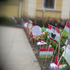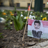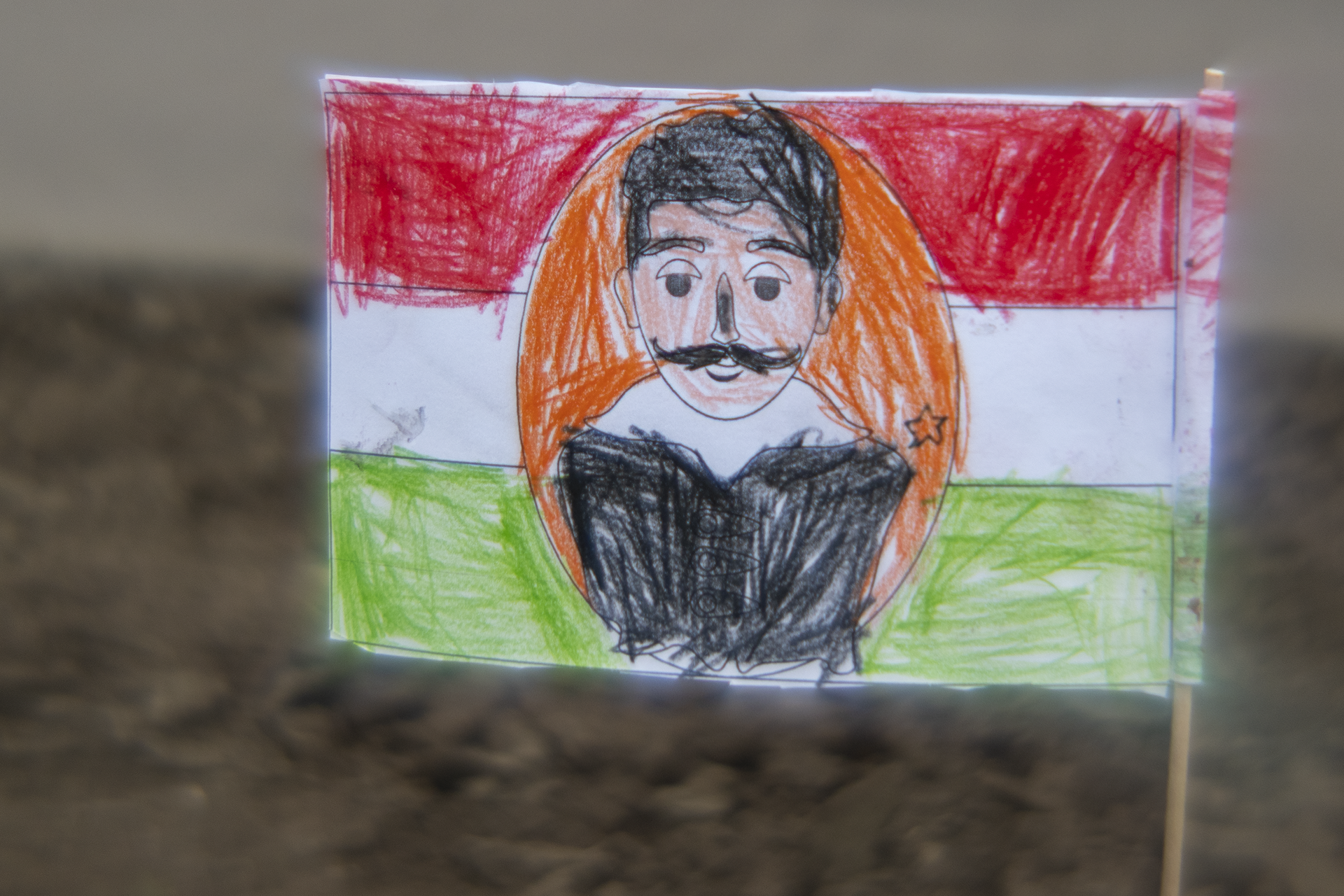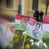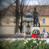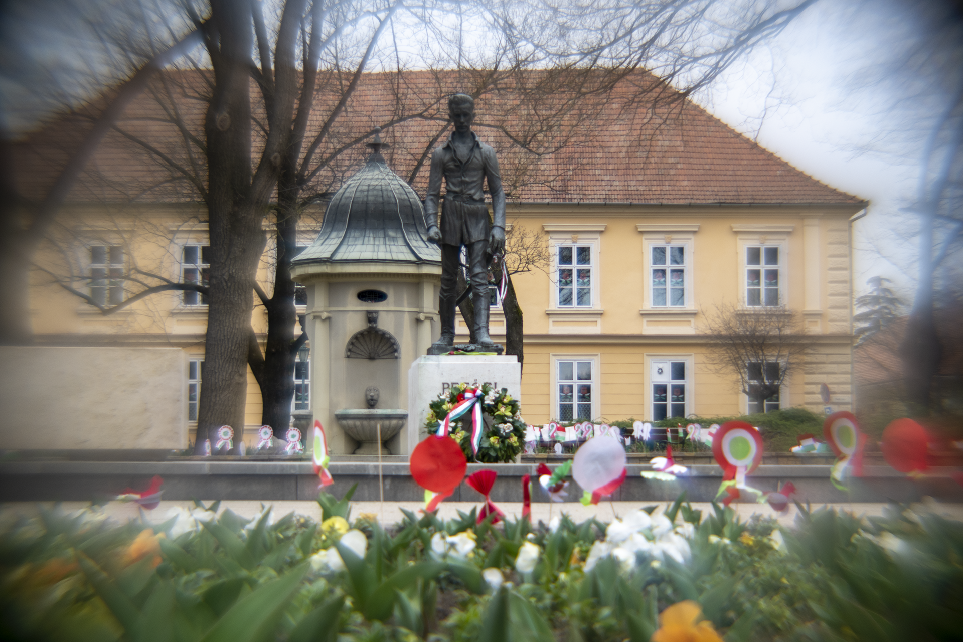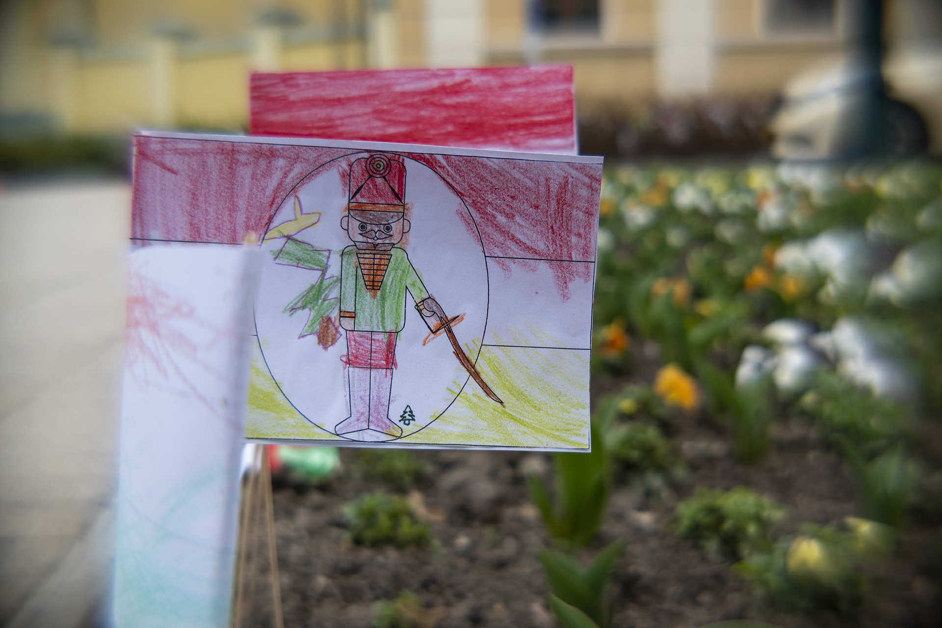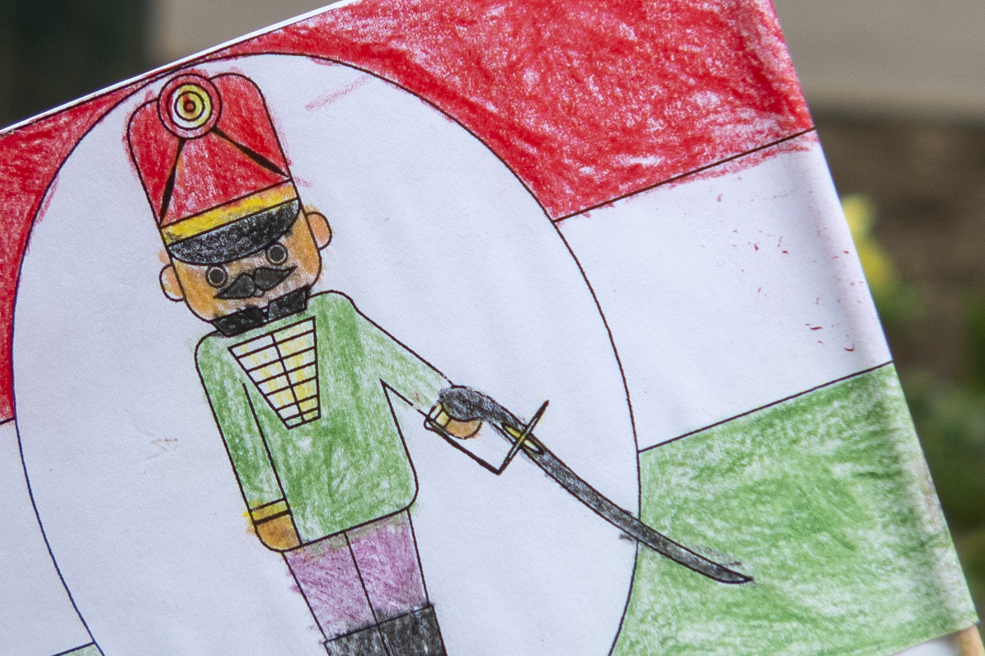 Gyerekek által készített március 15-ei zászlók a gyulai Petőfi téren