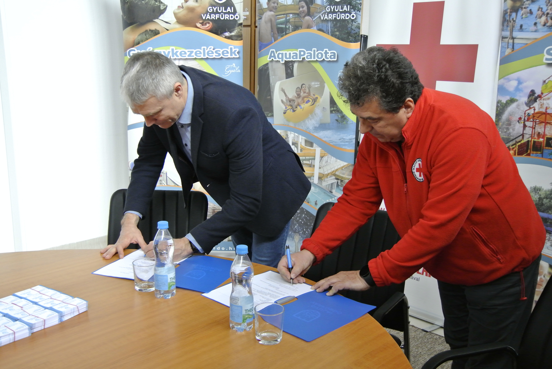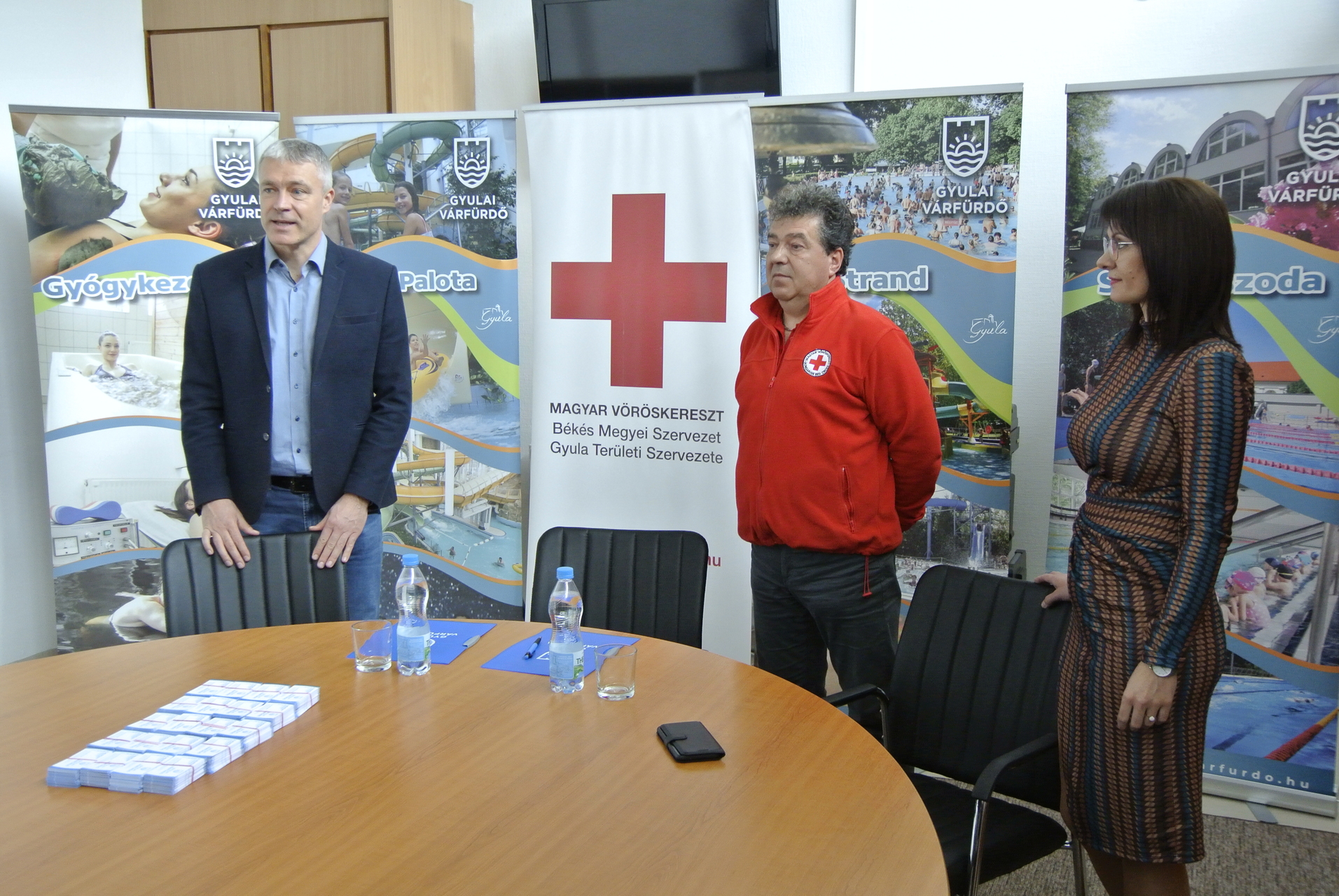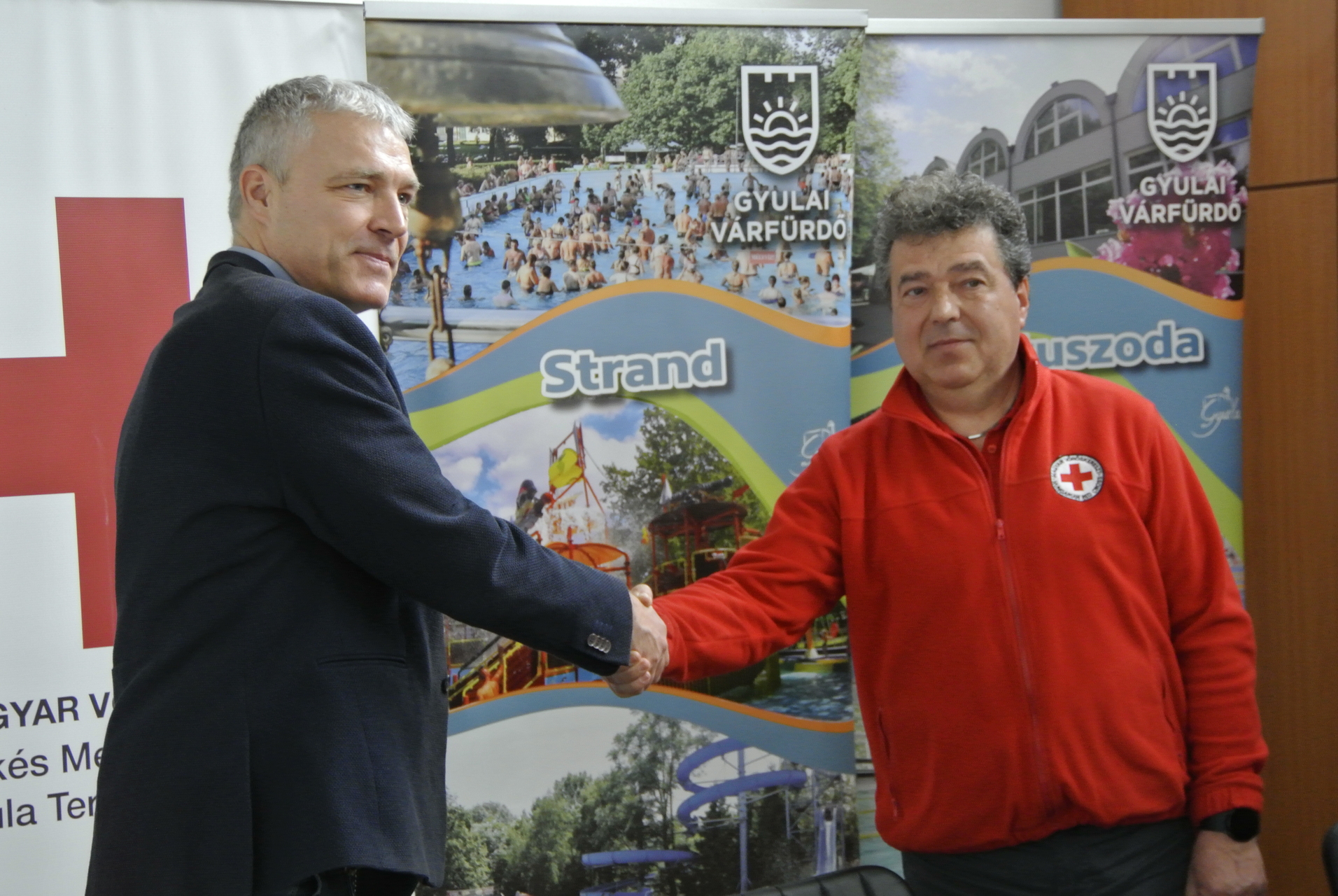 Kun Miklós, a Gyulai Várfürdő ügyvezetője kiemelte: régi tradíció, hogy belépőkkel támogatják a Magyar Vöröskeresztet.