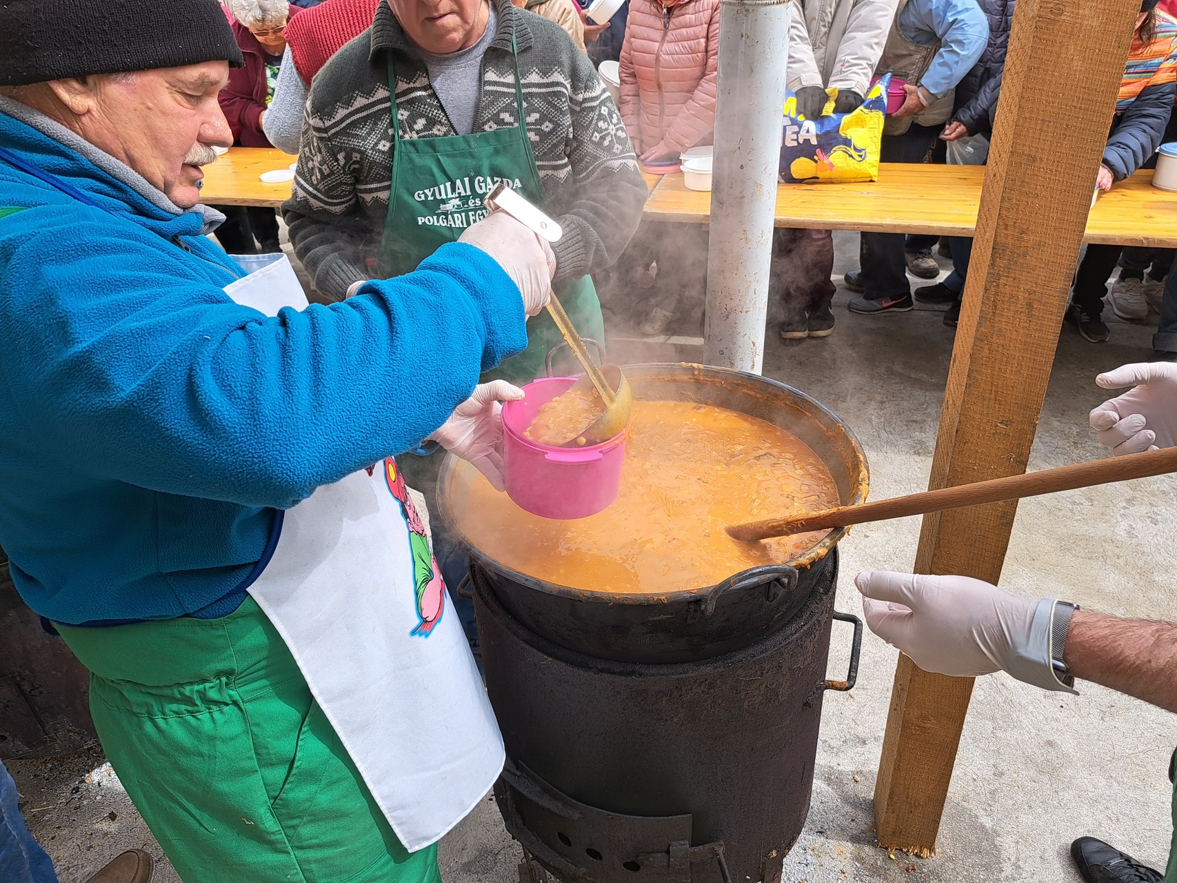 A karácsonyi nagy ételosztást megismételve félezer adag babgulyást osztott szét a rászorulók között a Gyulai Gazda- és Polgári Egyesület április első napján.