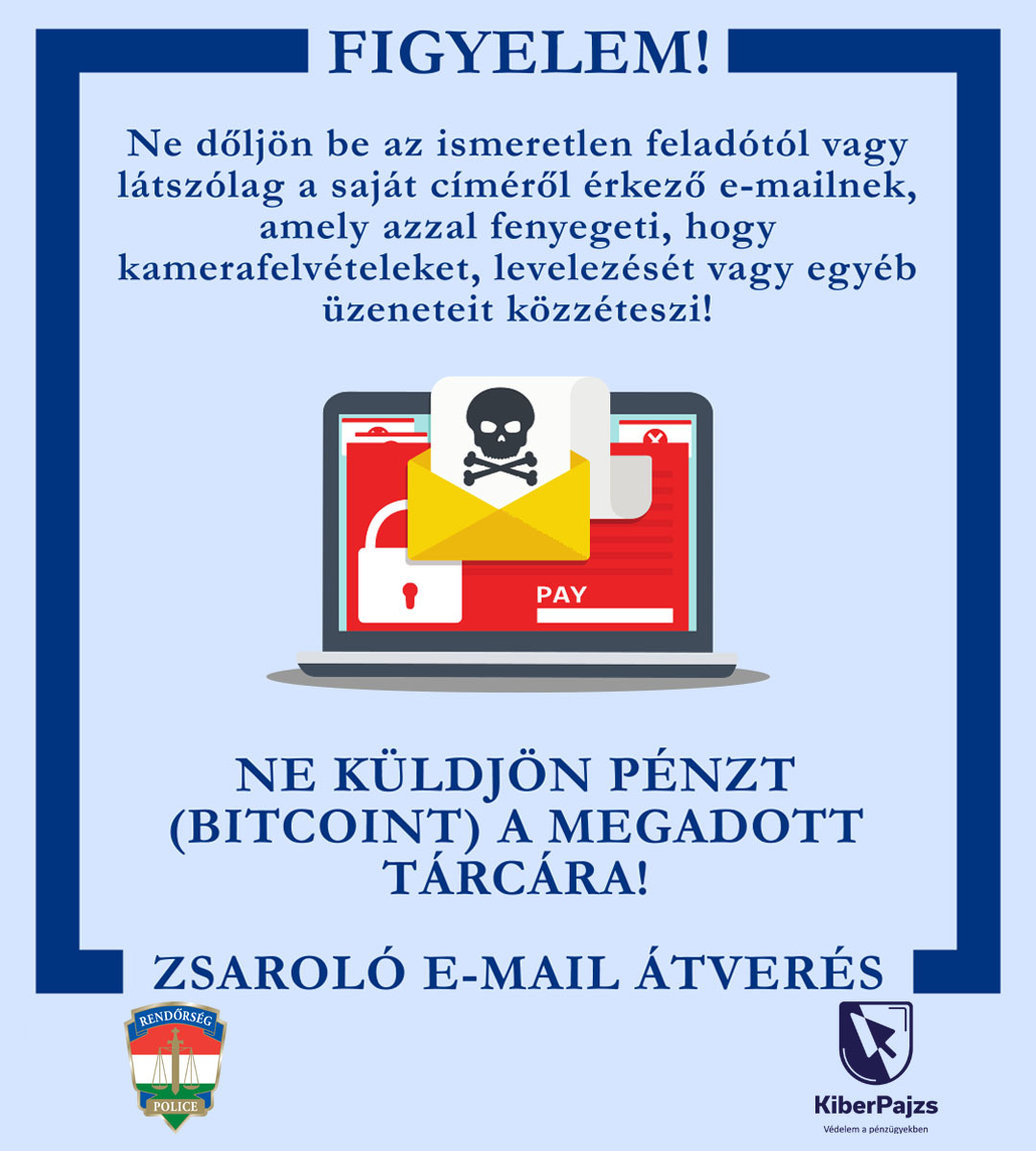 Az e-mail üzeneteknél először bizonyosodjon meg róla, hogy valóban az-e a feladó, akinek állítja magát és ezelőtt semmiképp ne kattintson rá az abban elhelyezett linkre!
