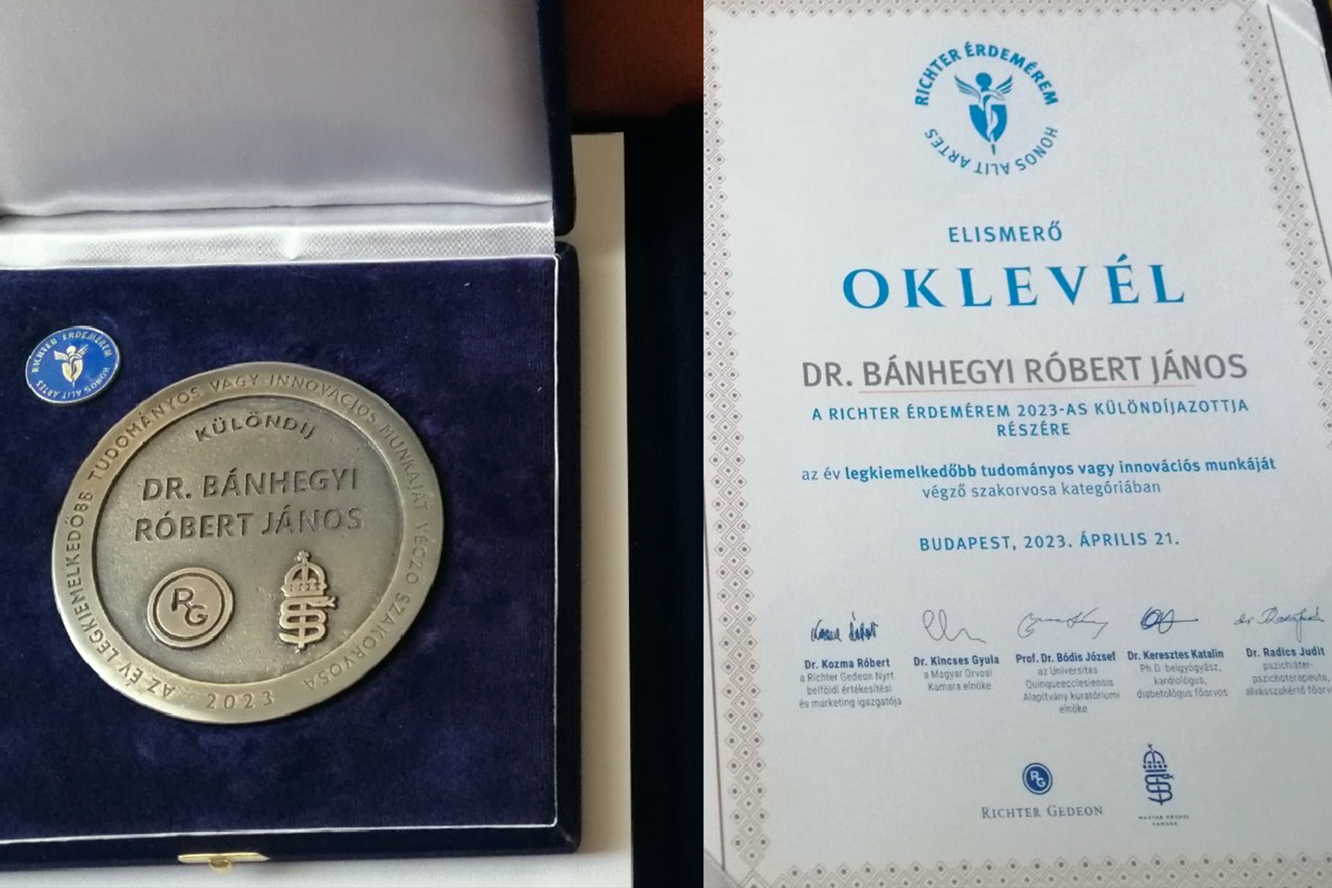 Mint írta közösségi oldalán, „örömmel tudatom veletek, hogy tegnap jelentős tudományos elismerésben és megtiszteltetésben részesülhettem. Budapesten átvettem a Richter Érdemérem Díj pályázat különdíját Az év legkiemelkedőbb tudományos munkáját végző szakorvosa kategóriában az onkodiabetológiai tudományág hazai megismertetésében végzett évtizedes kutatási és tudományos publikációs tevékenységemért. A díj óriási megerősítést jelent számomra, hogy a jó úton haladok, s külön örömmel tölt el, hogy ezen munkámmal is segíthetem a daganatban, diabéteszben és elhízásban szenvedő betegek ellátását”.
