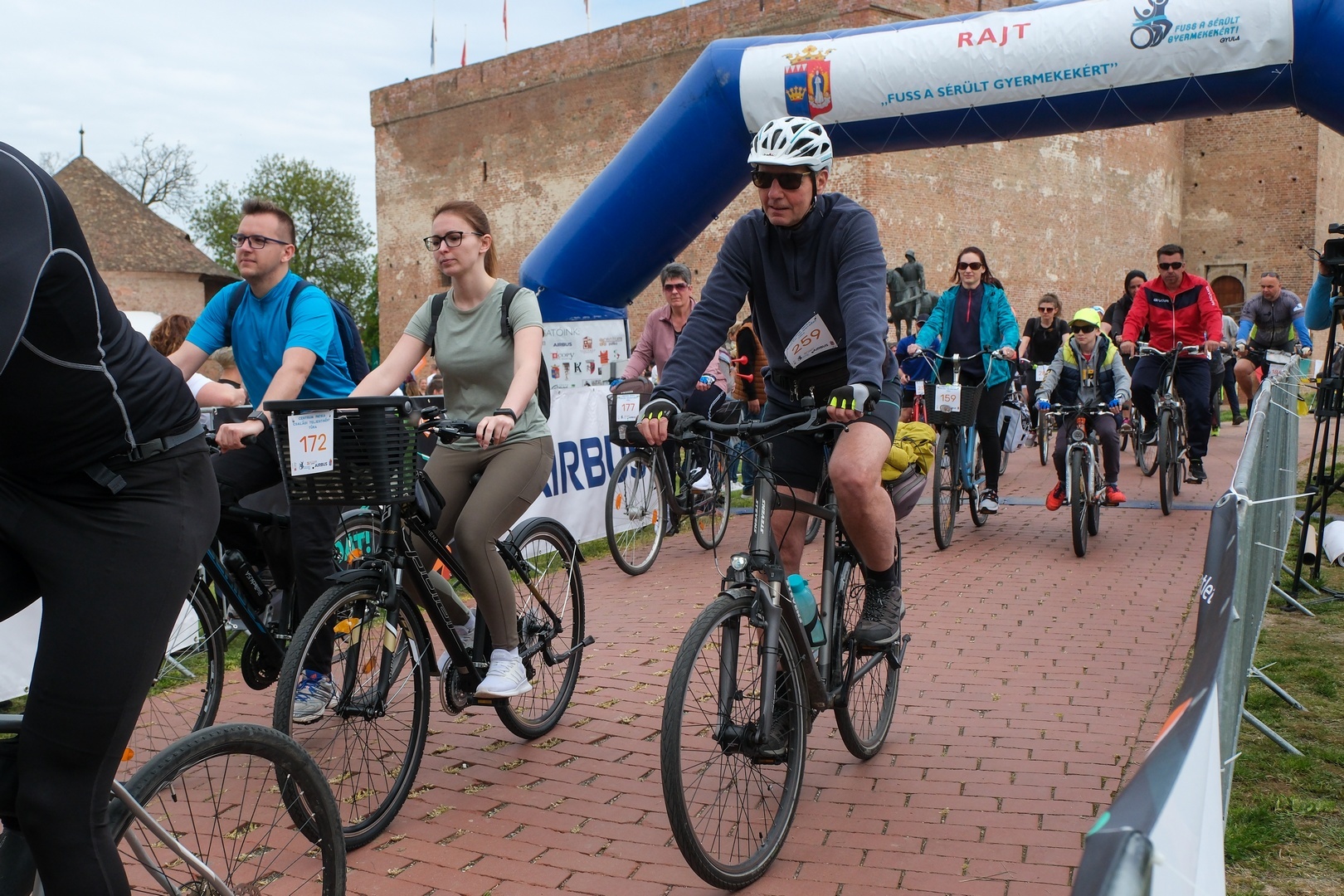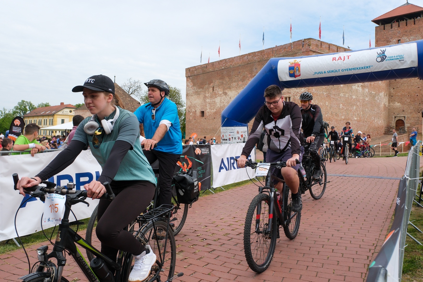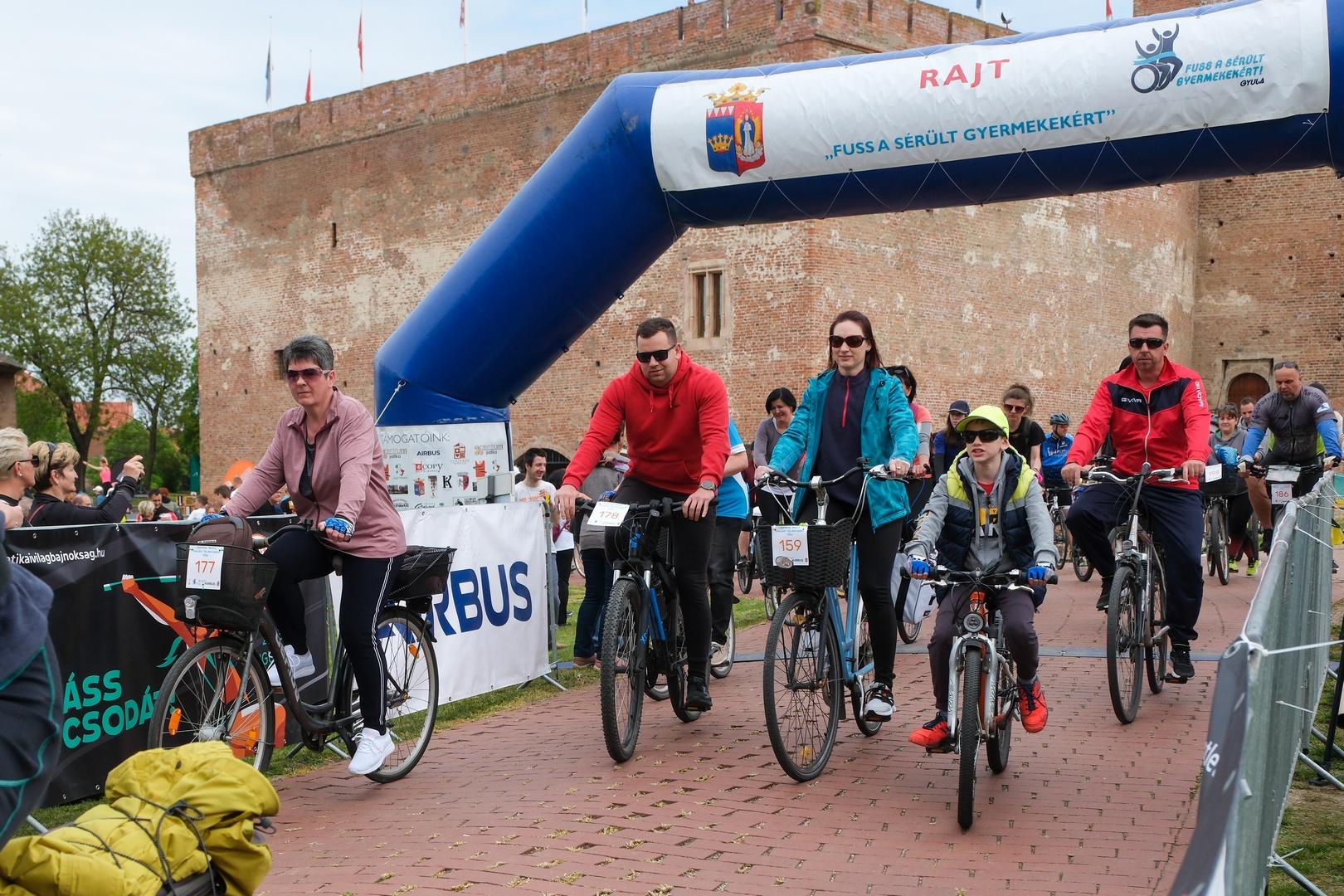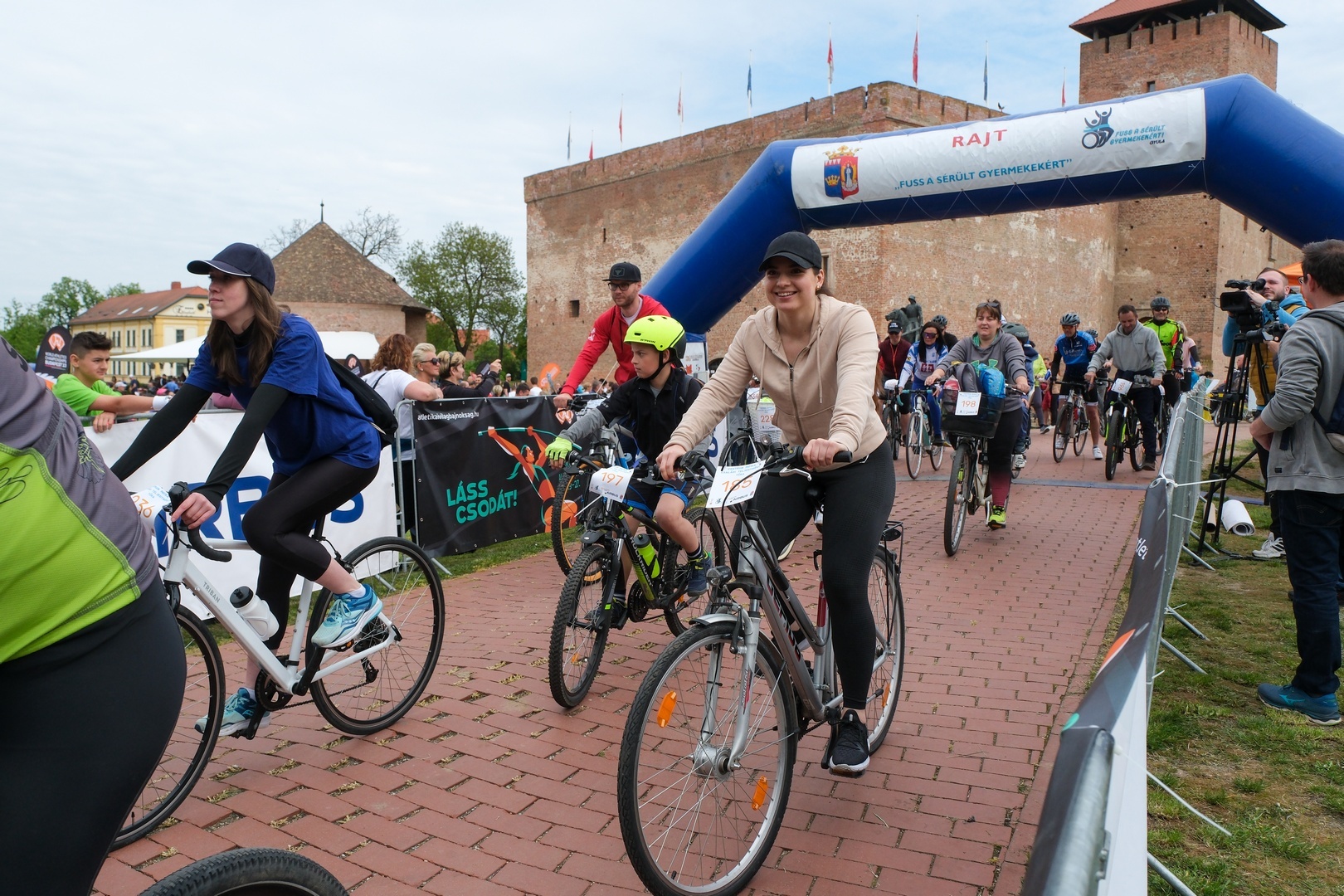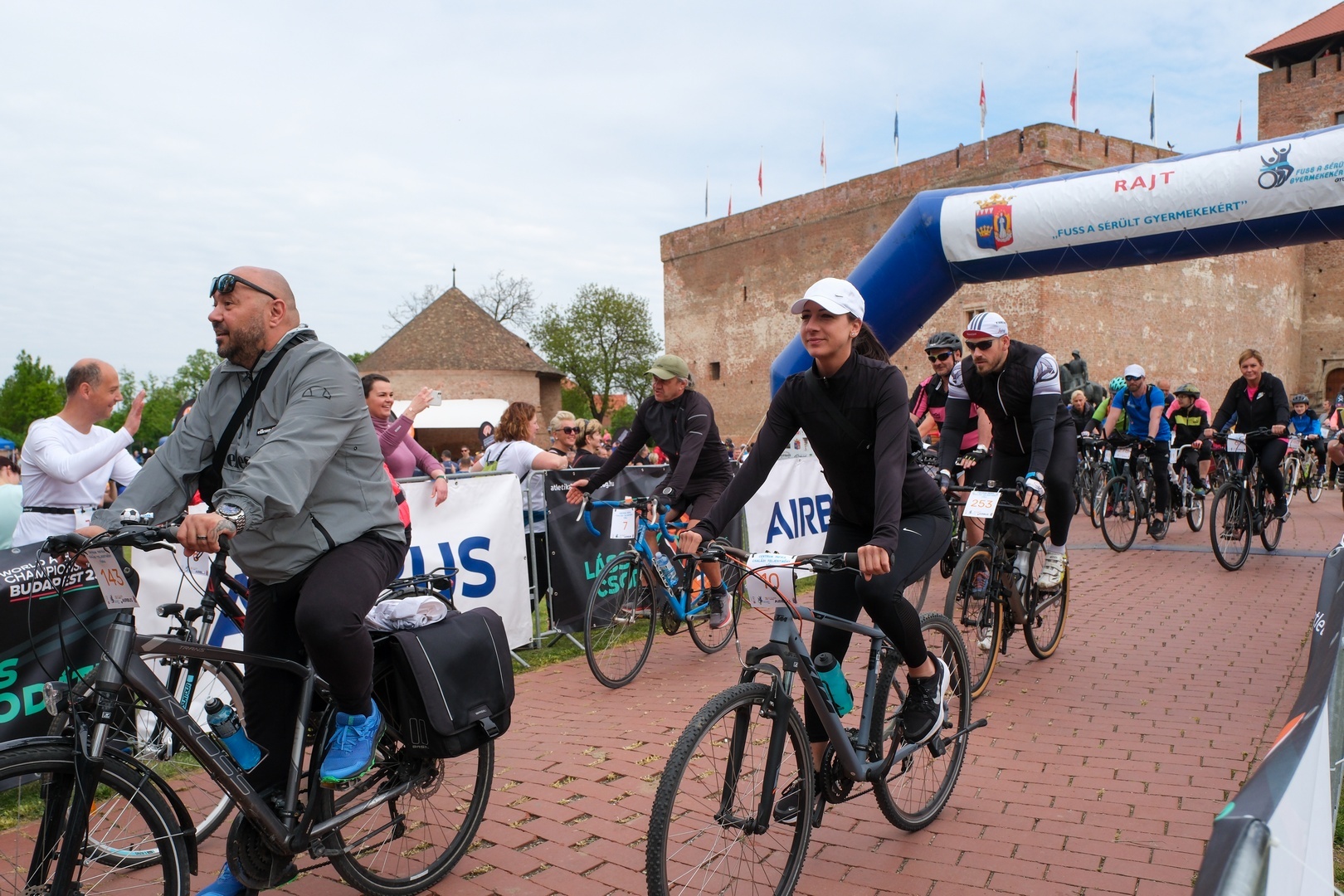 A kerékpárosok és kerekesszékesek rajtja a Fuss a sérült gyermekekért! versenyen