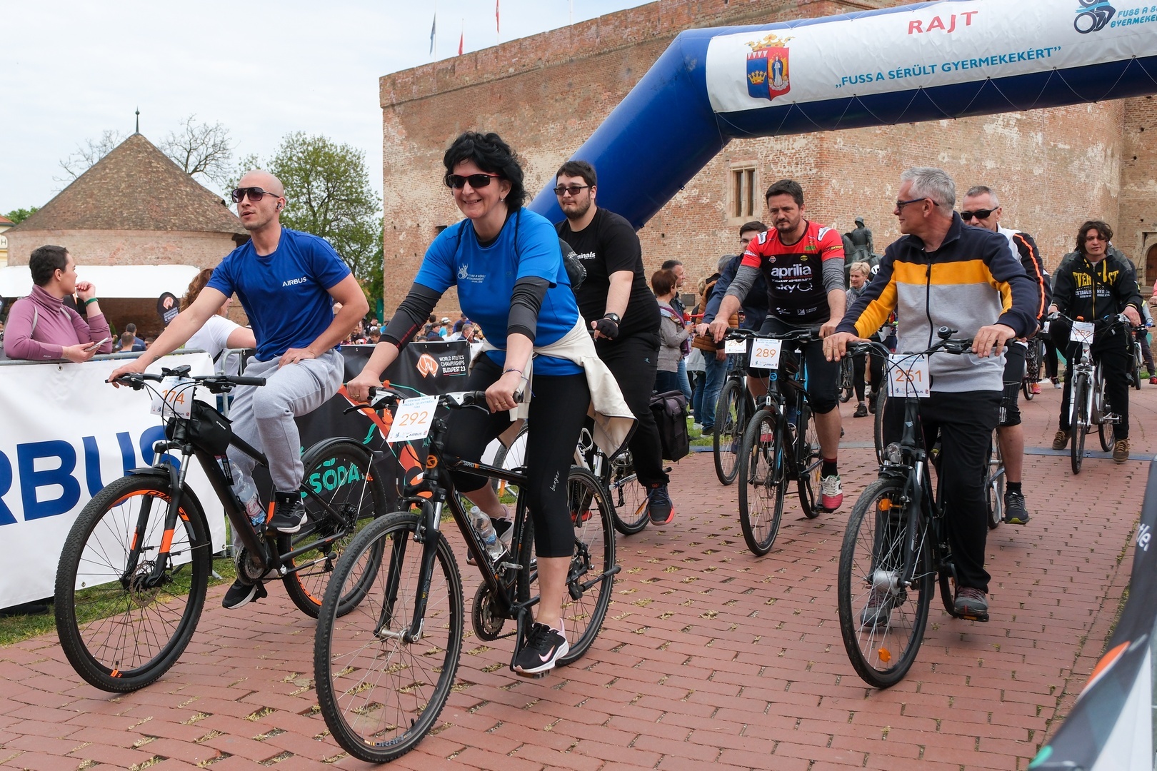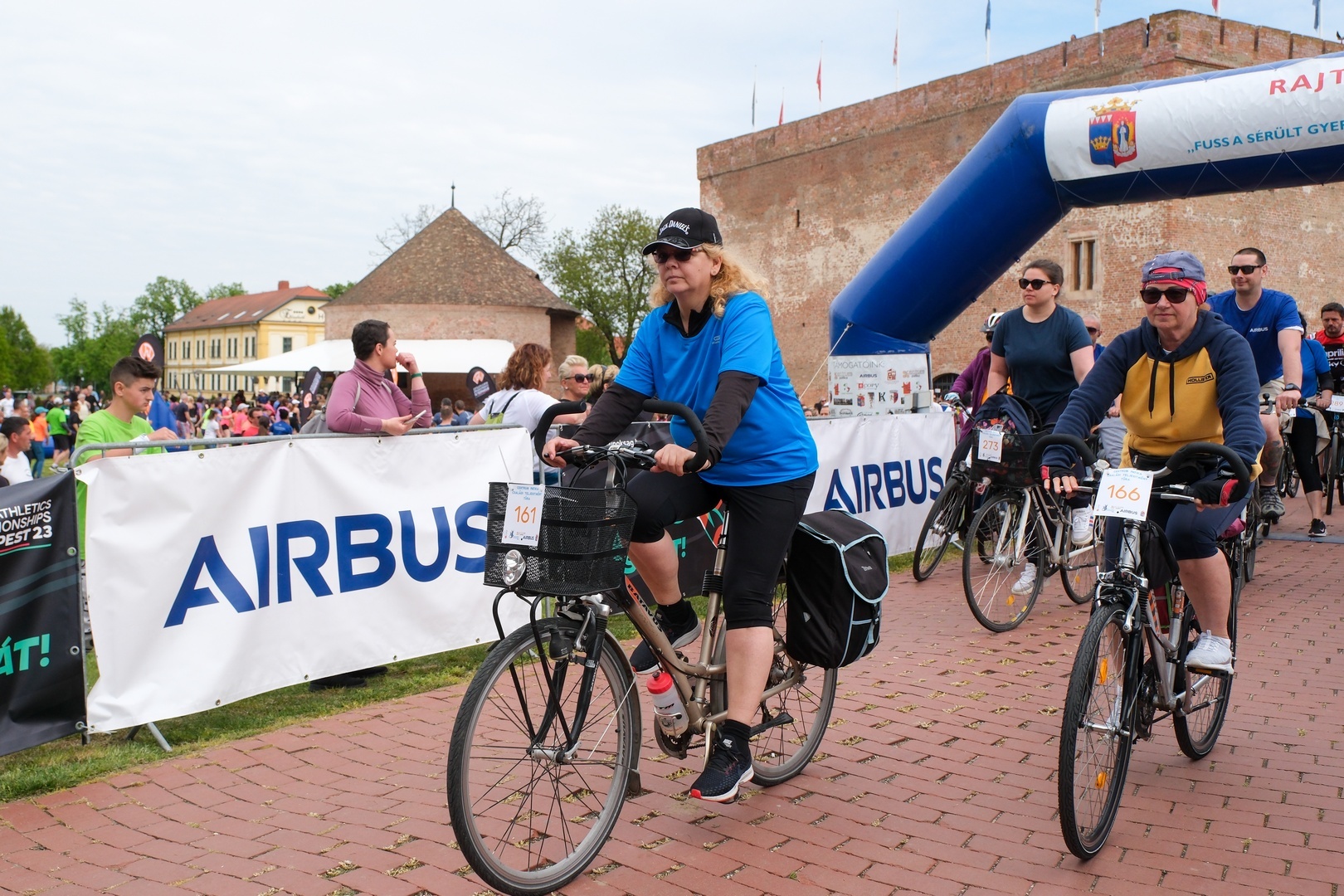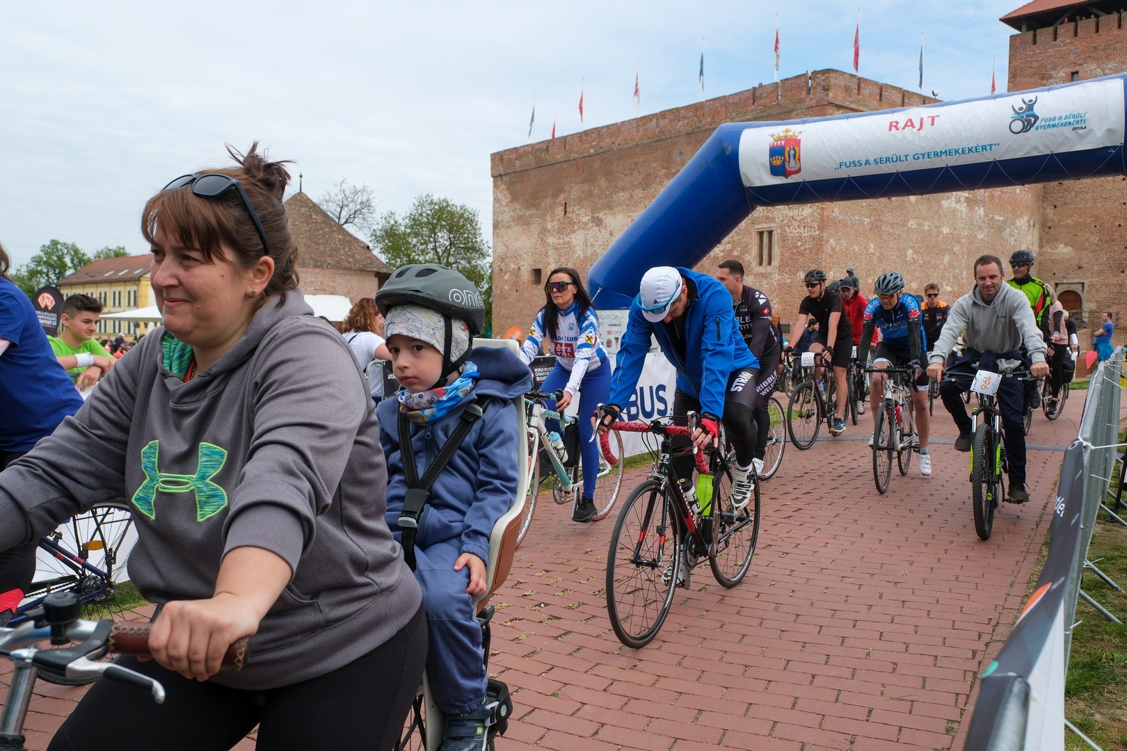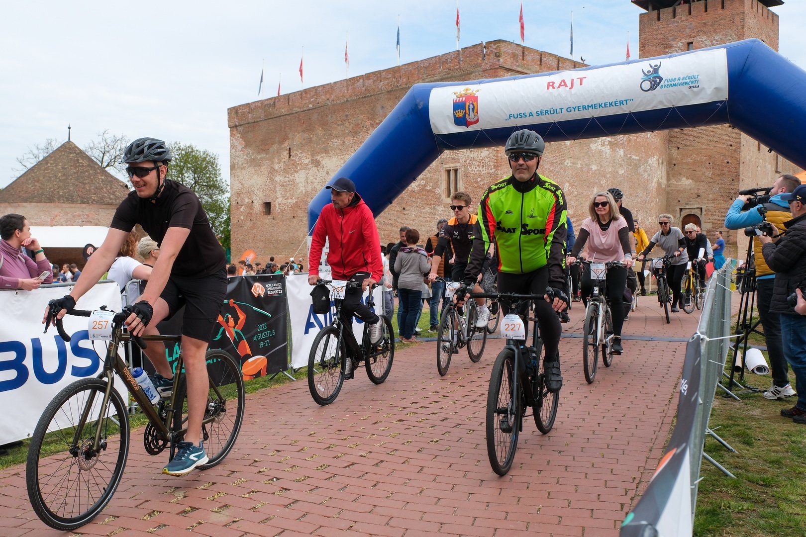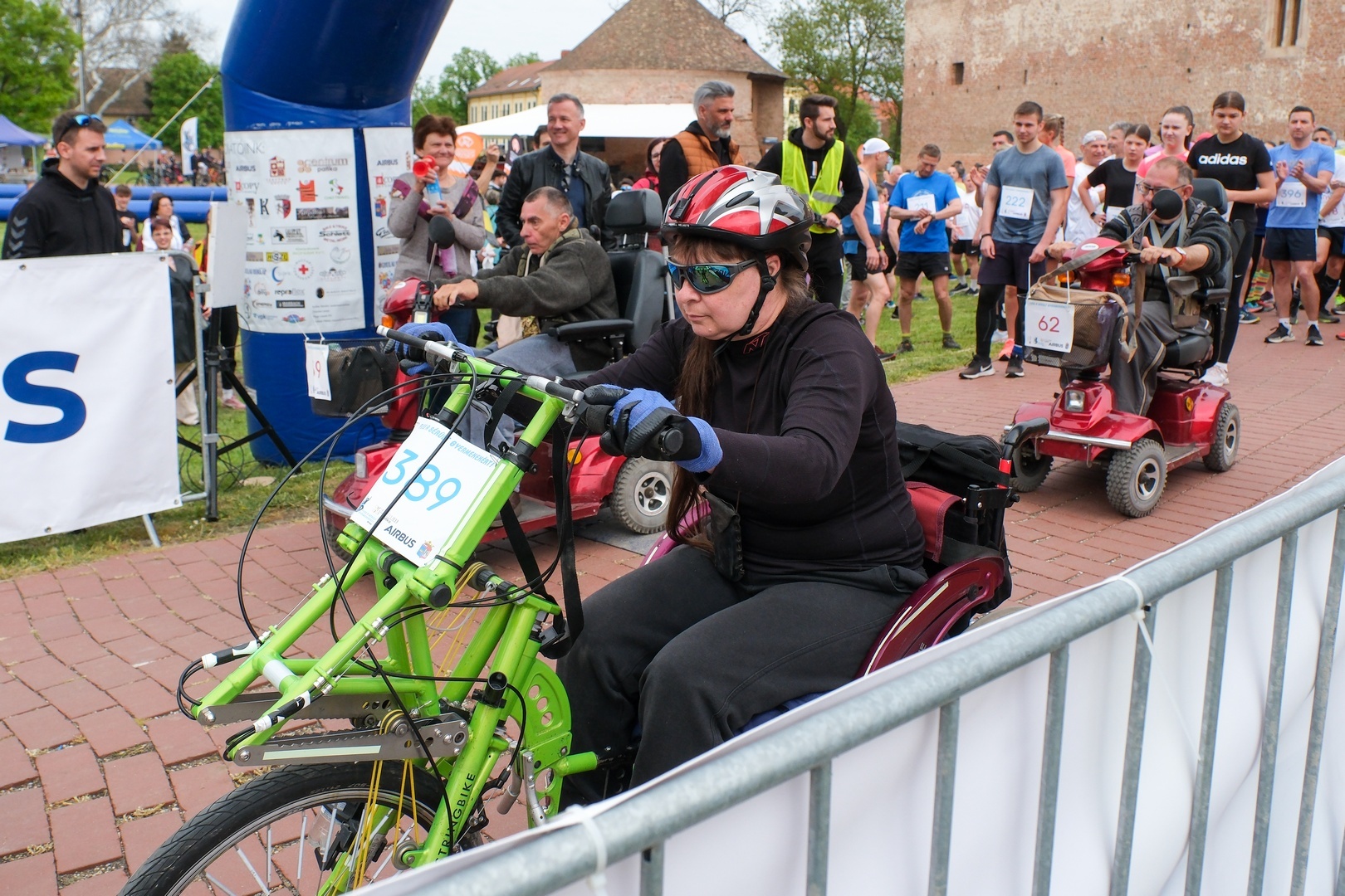 A kerékpárosok és kerekesszékesek rajtja a Fuss a sérült gyermekekért! versenyen