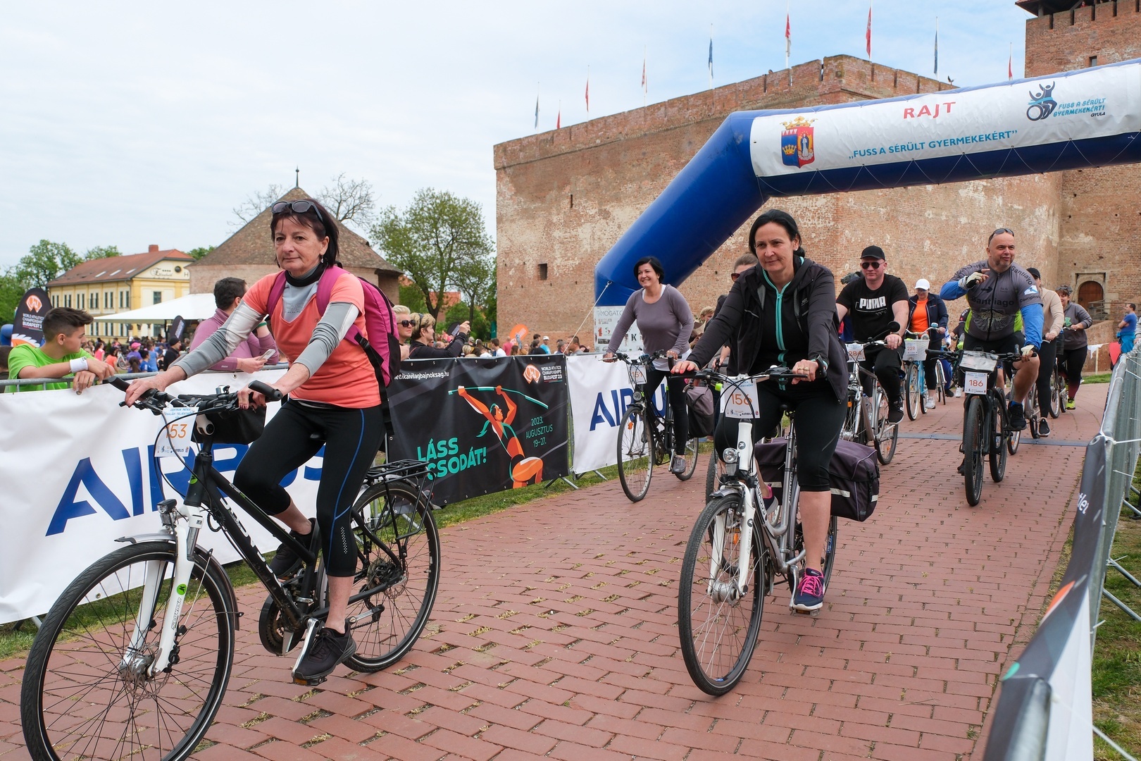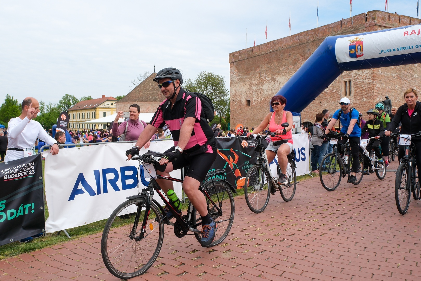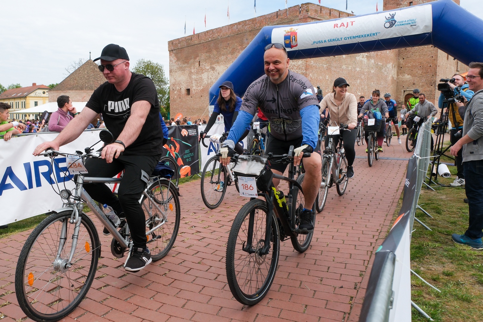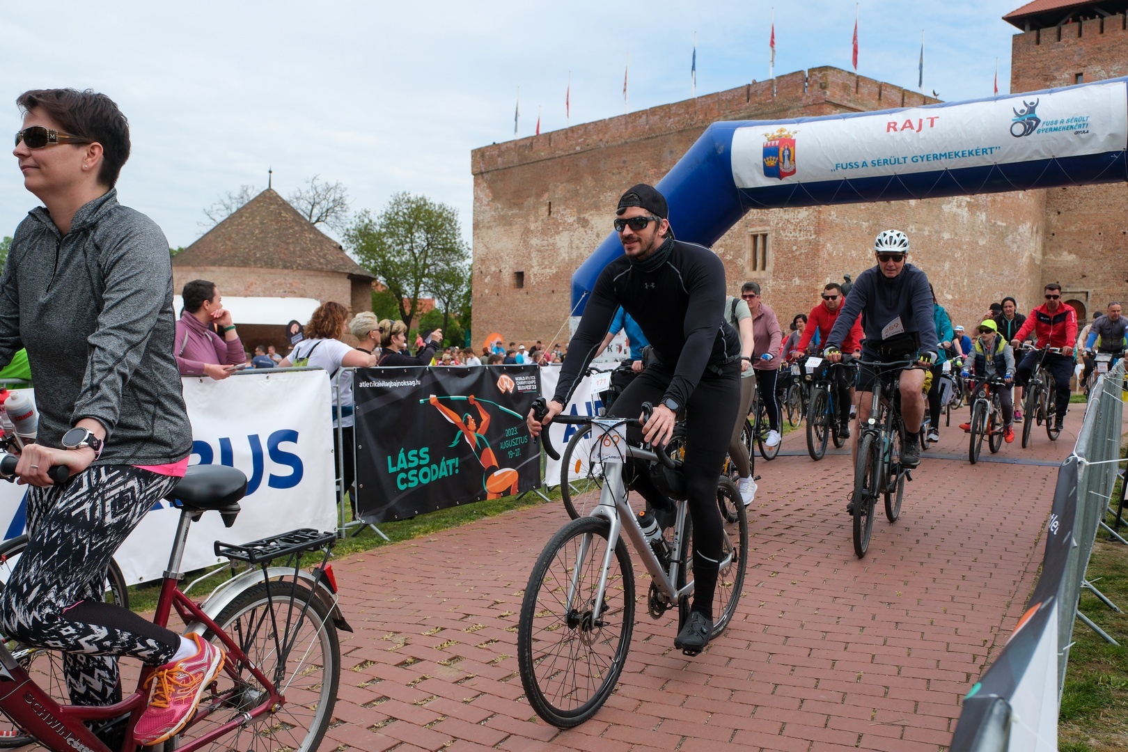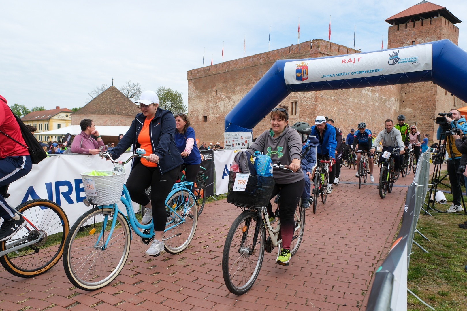 A kerékpárosok és kerekesszékesek rajtja a Fuss a sérült gyermekekért! versenyen