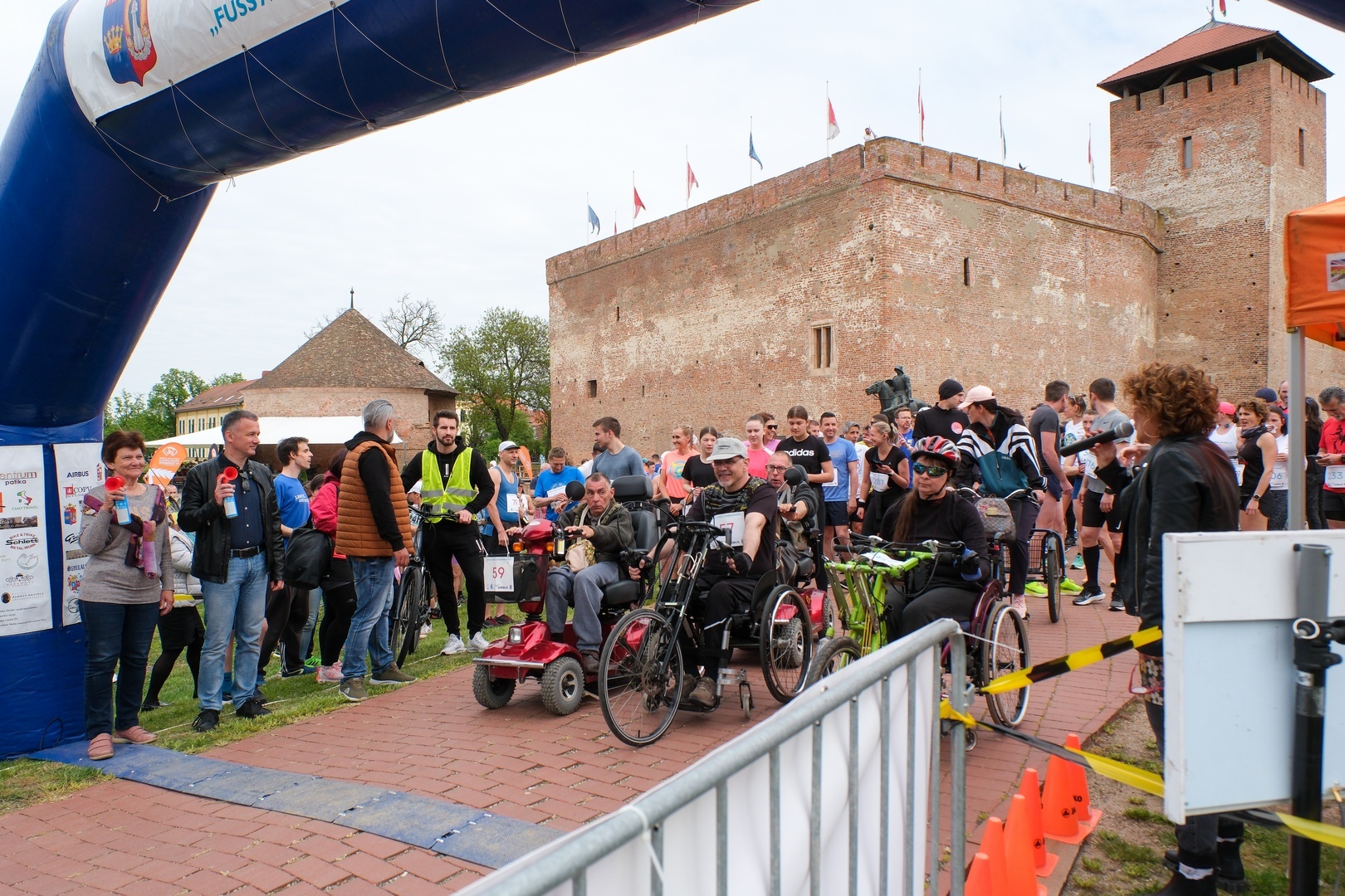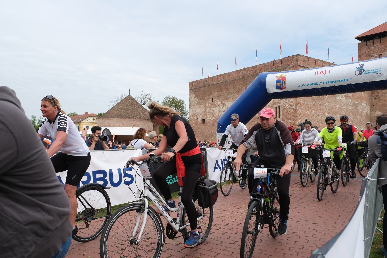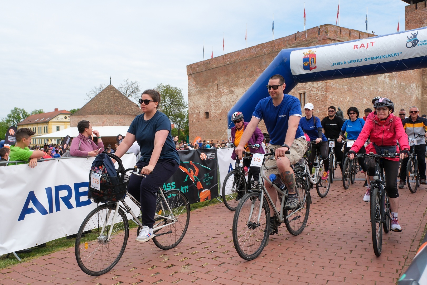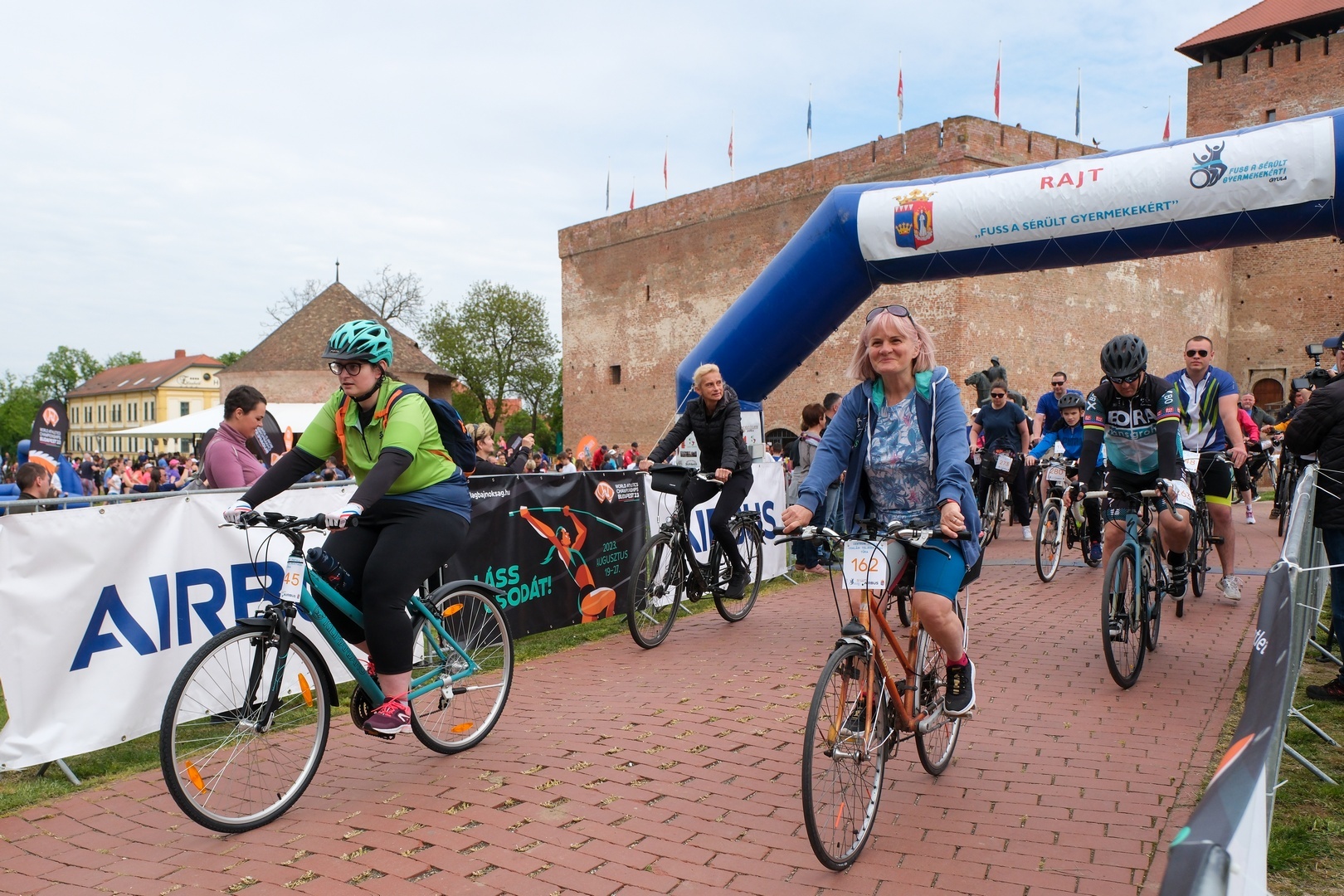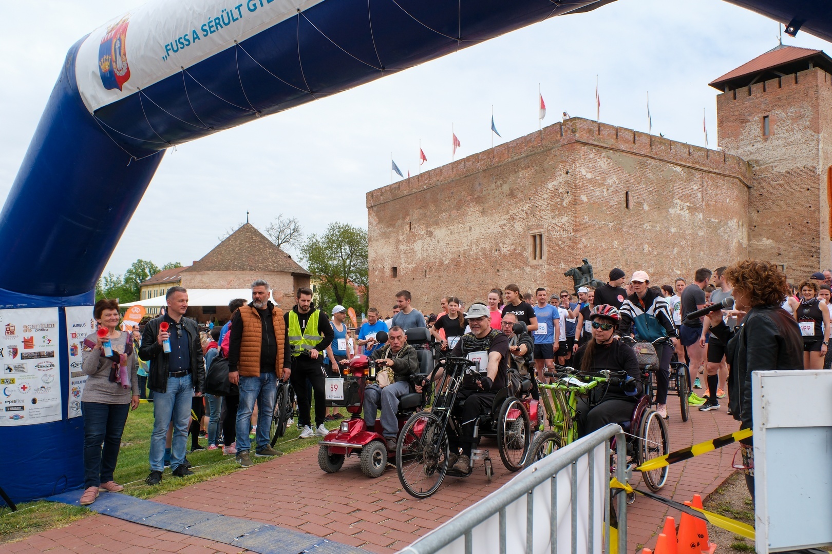A kerékpárosok és kerekesszékesek rajtja a Fuss a sérült gyermekekért! versenyen