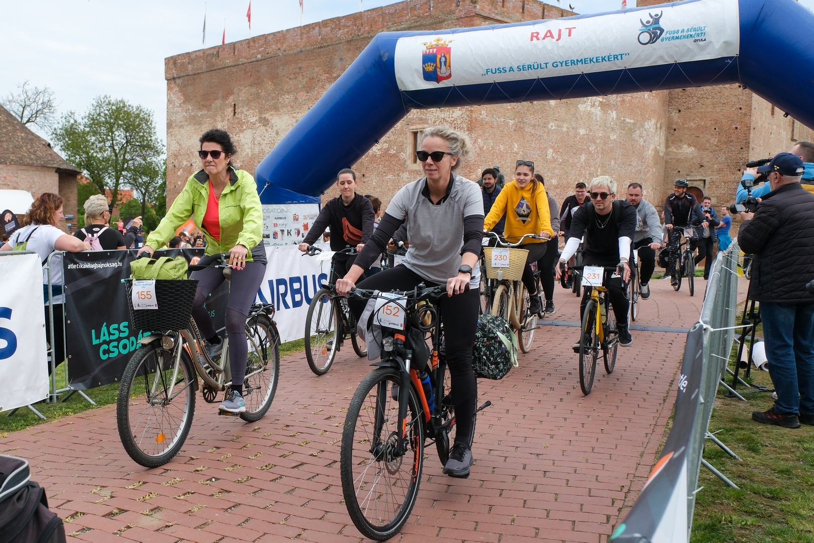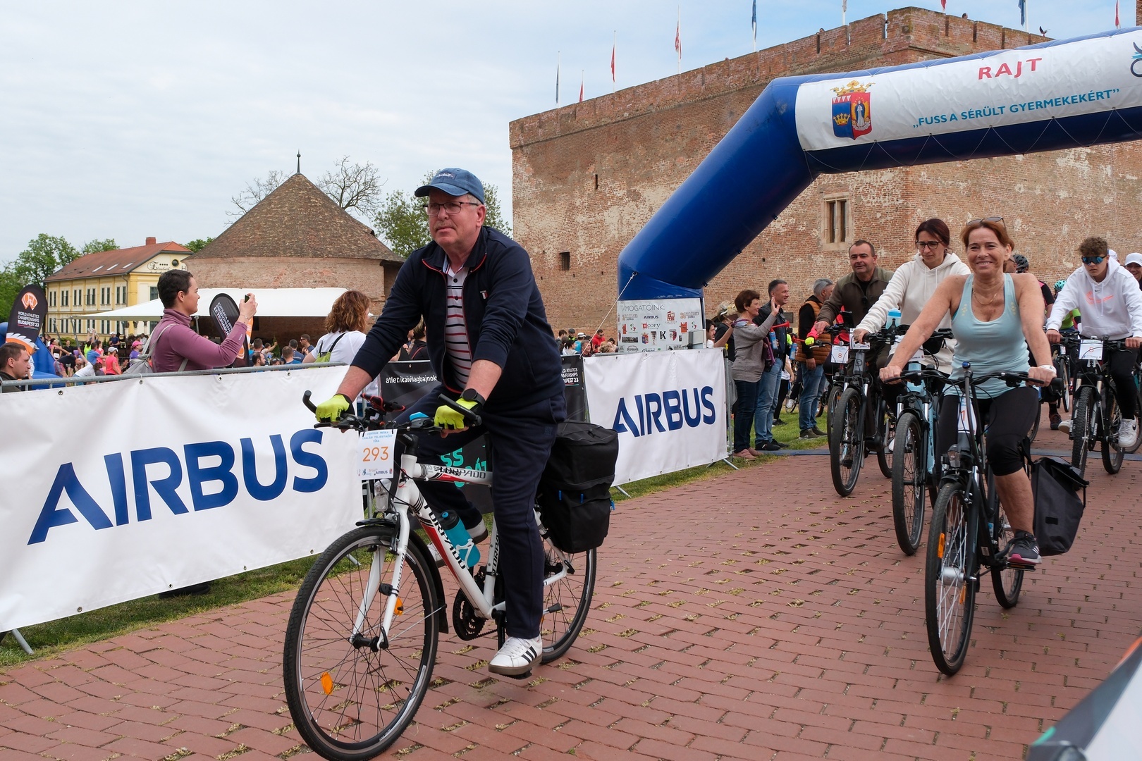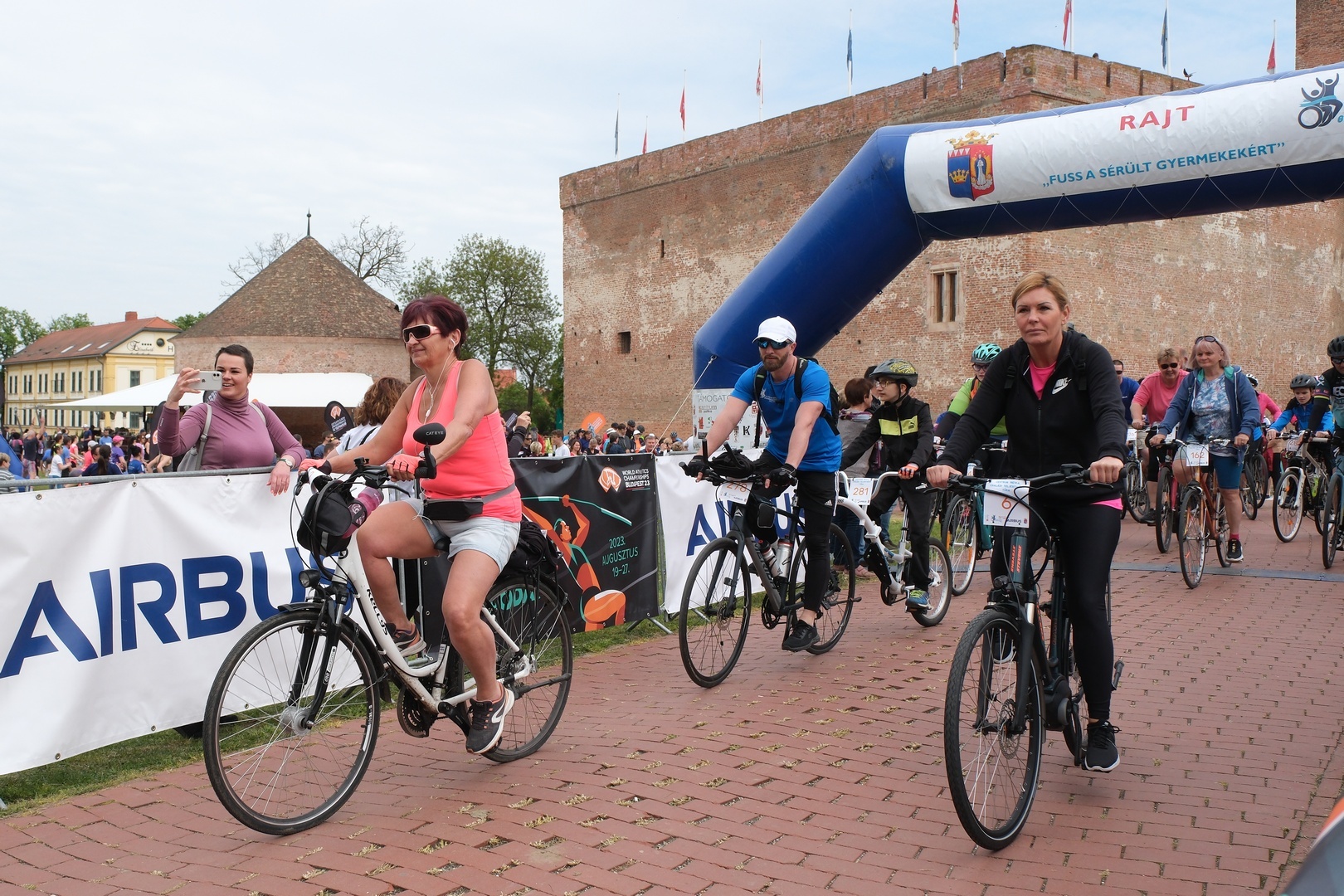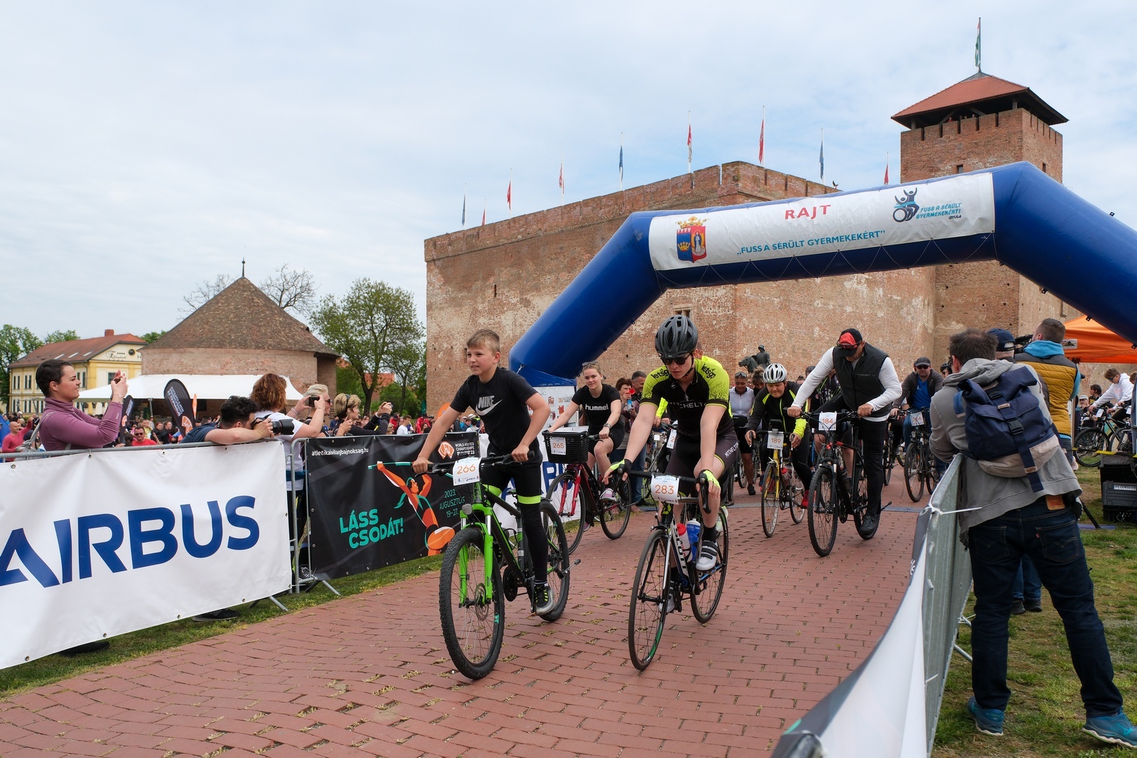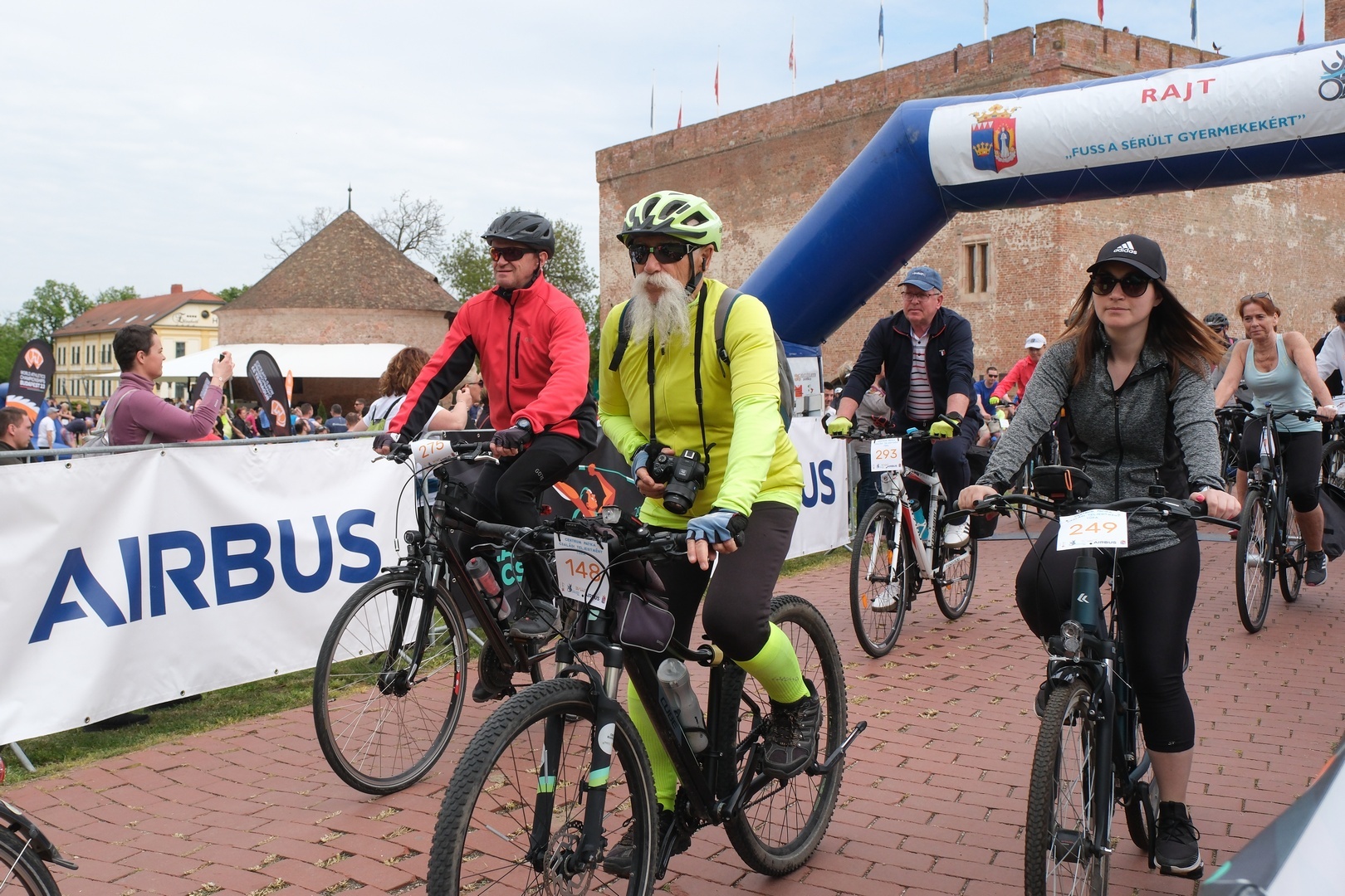 A kerékpárosok és kerekesszékesek rajtja a Fuss a sérült gyermekekért! versenyen
