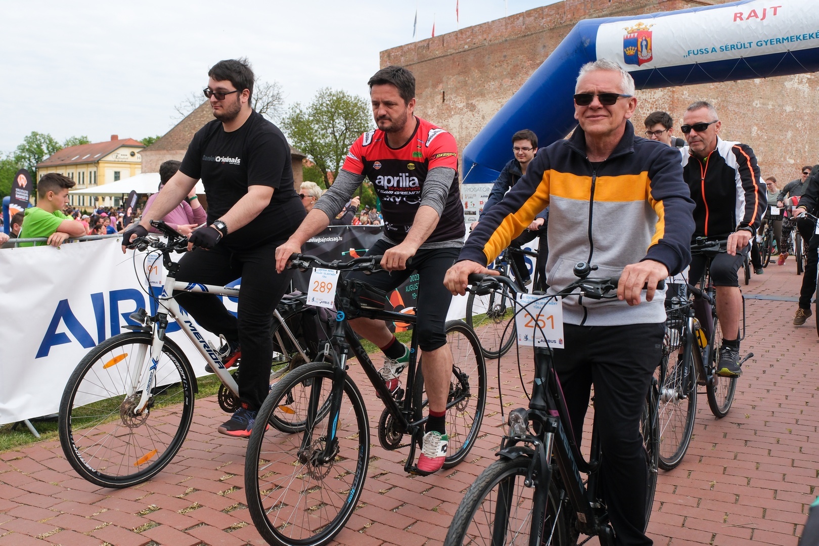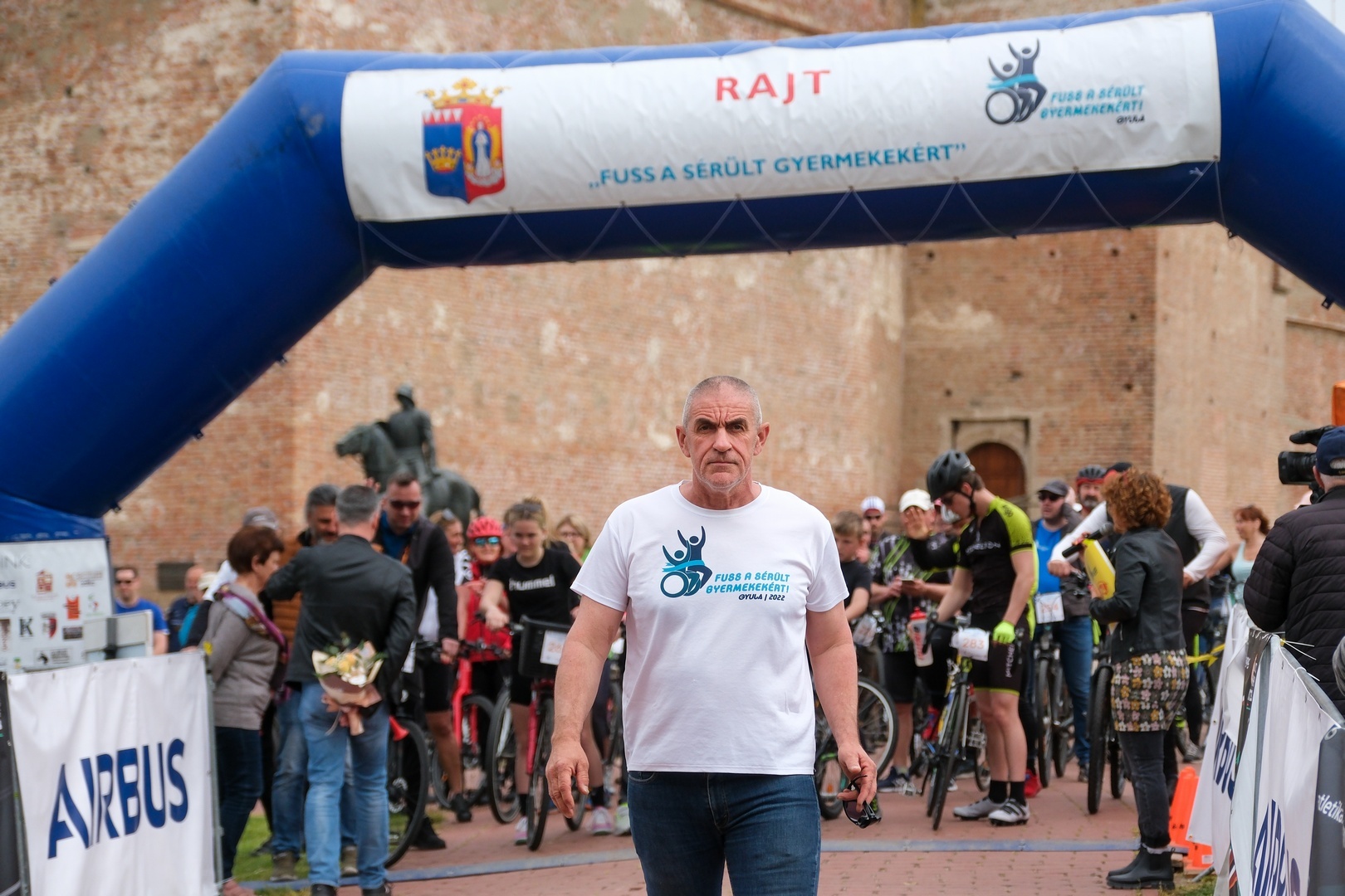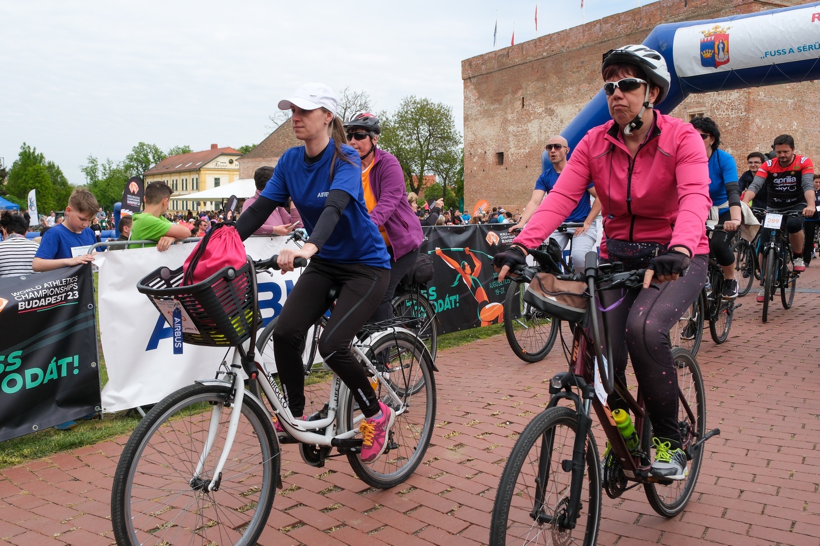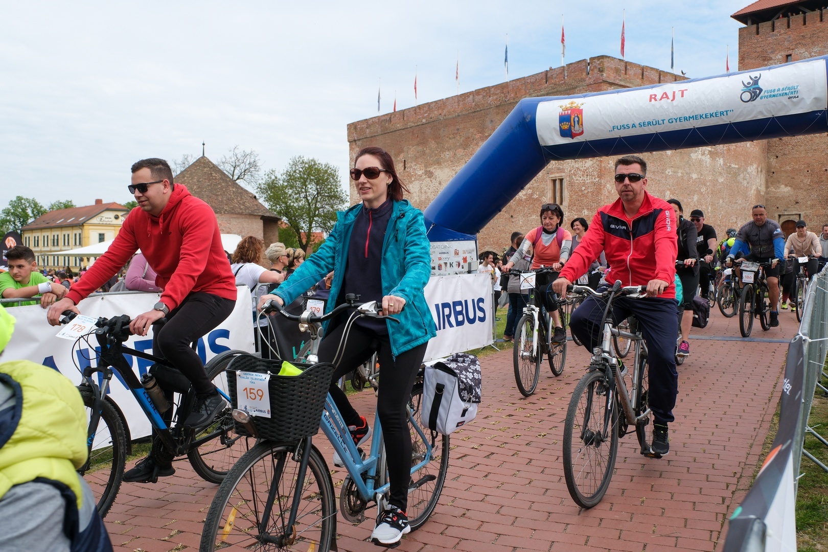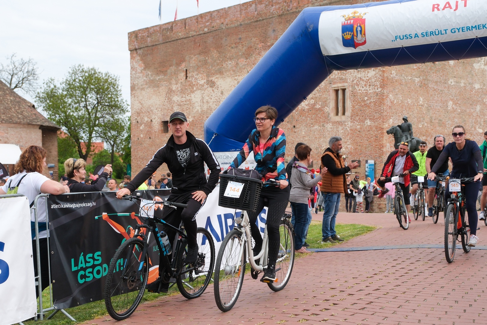 A kerékpárosok és kerekesszékesek rajtja a Fuss a sérült gyermekekért! versenyen