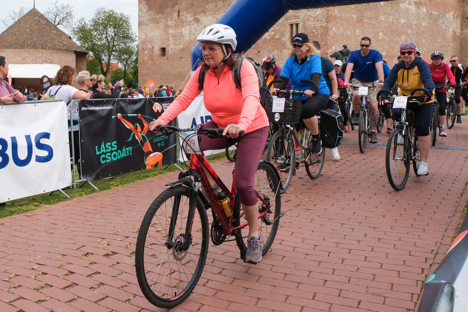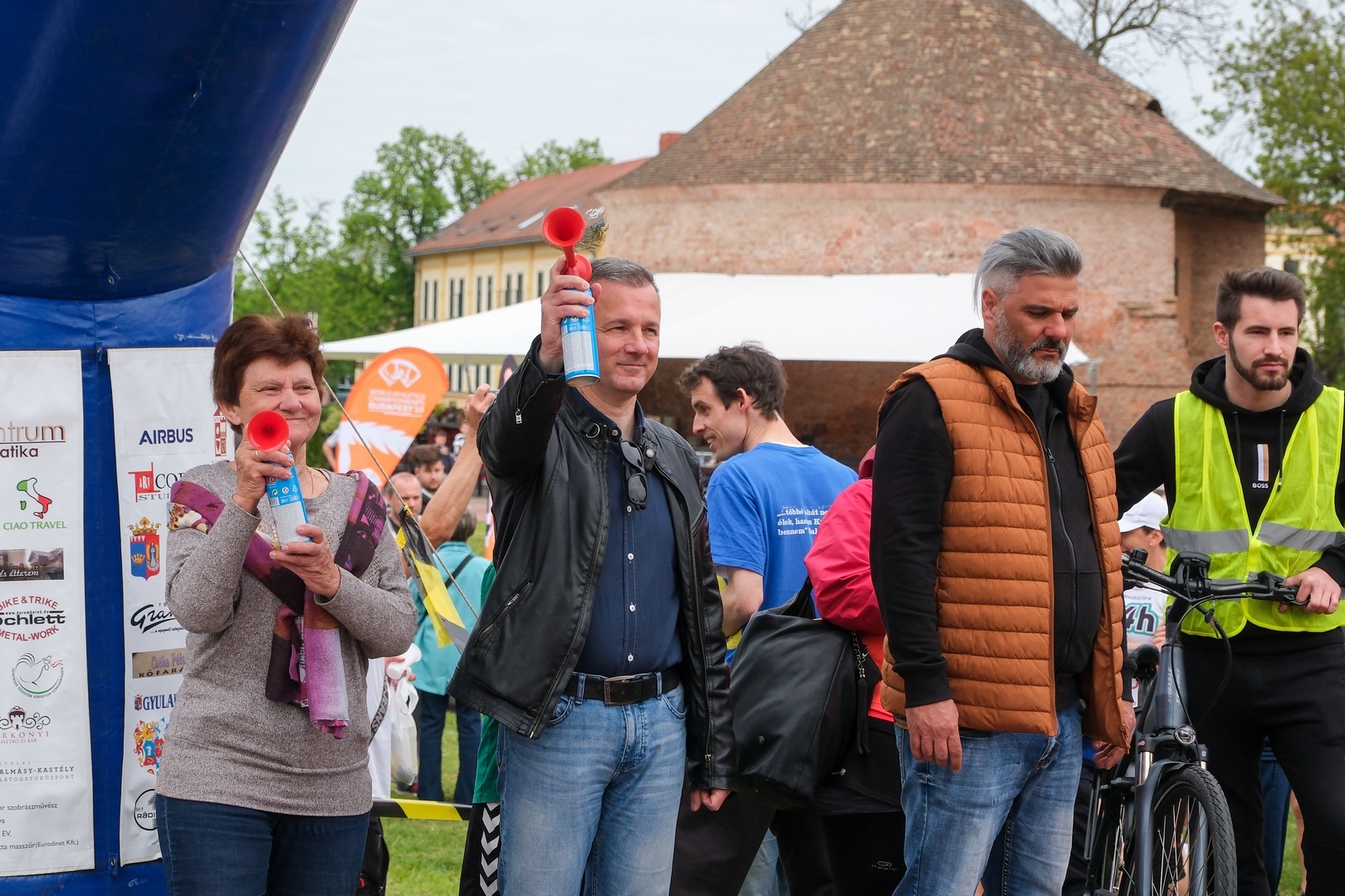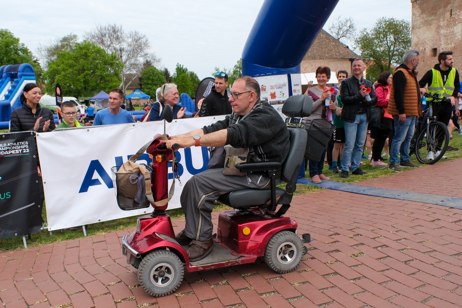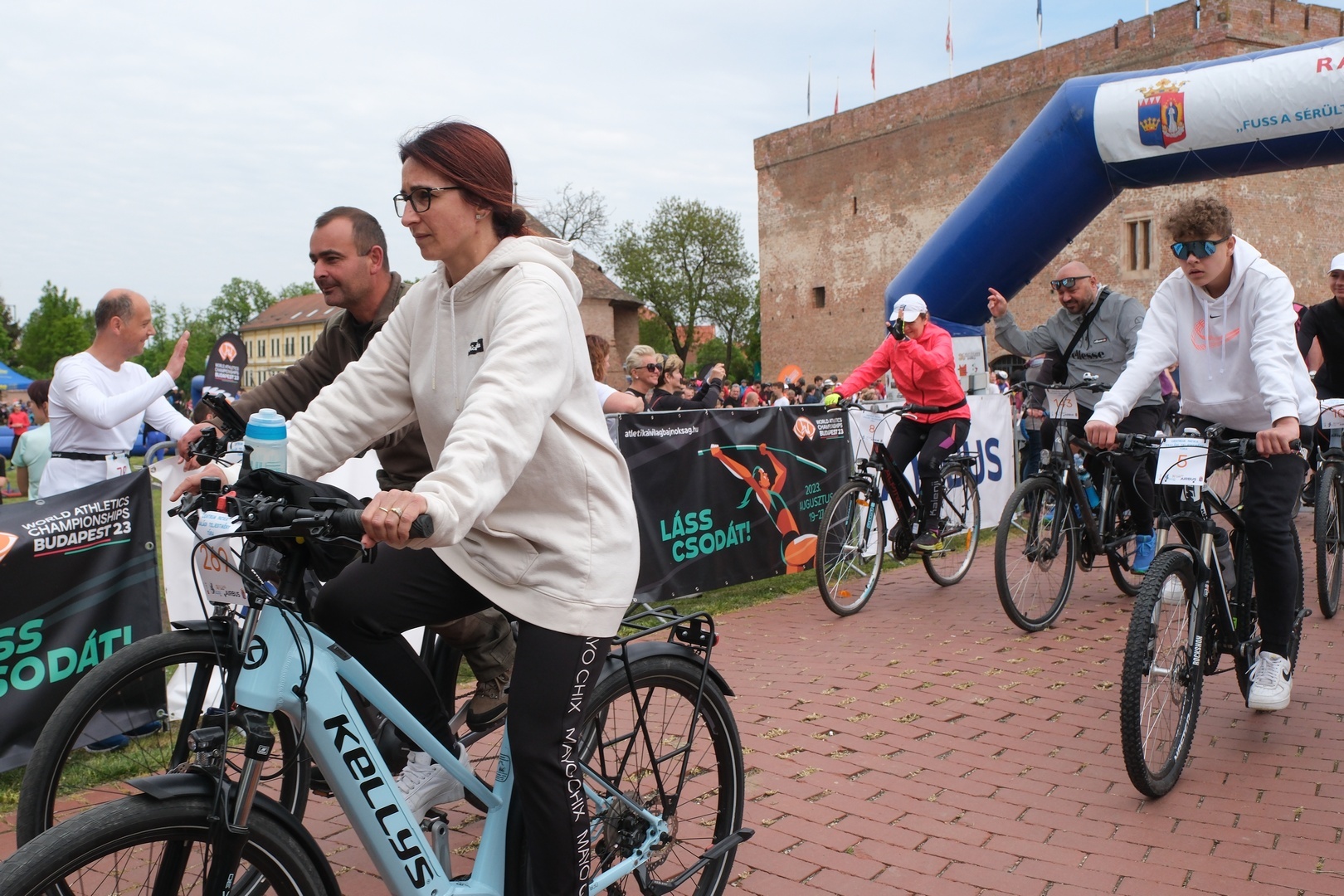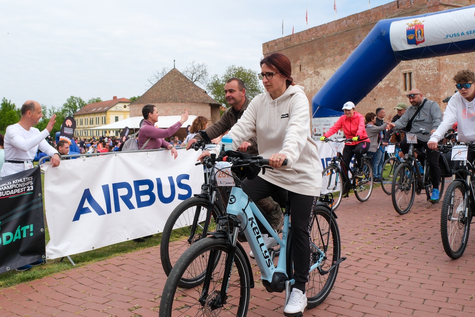 A kerékpárosok és kerekesszékesek rajtja a Fuss a sérült gyermekekért! versenyen