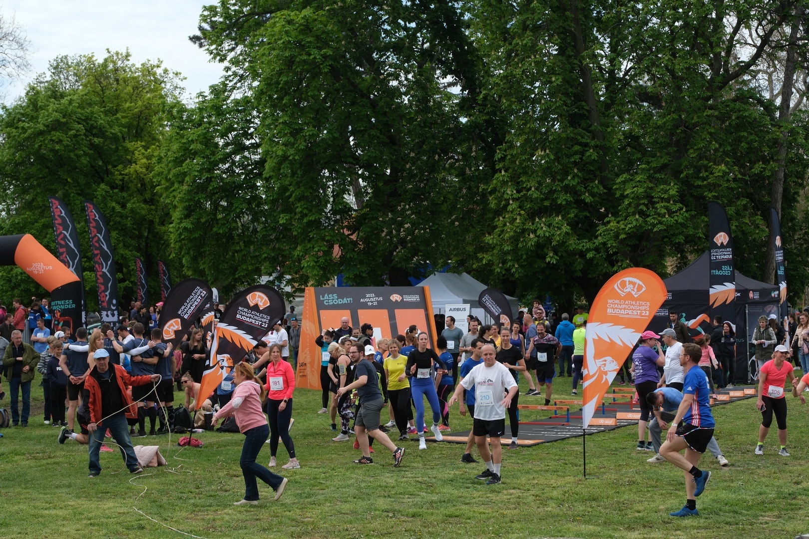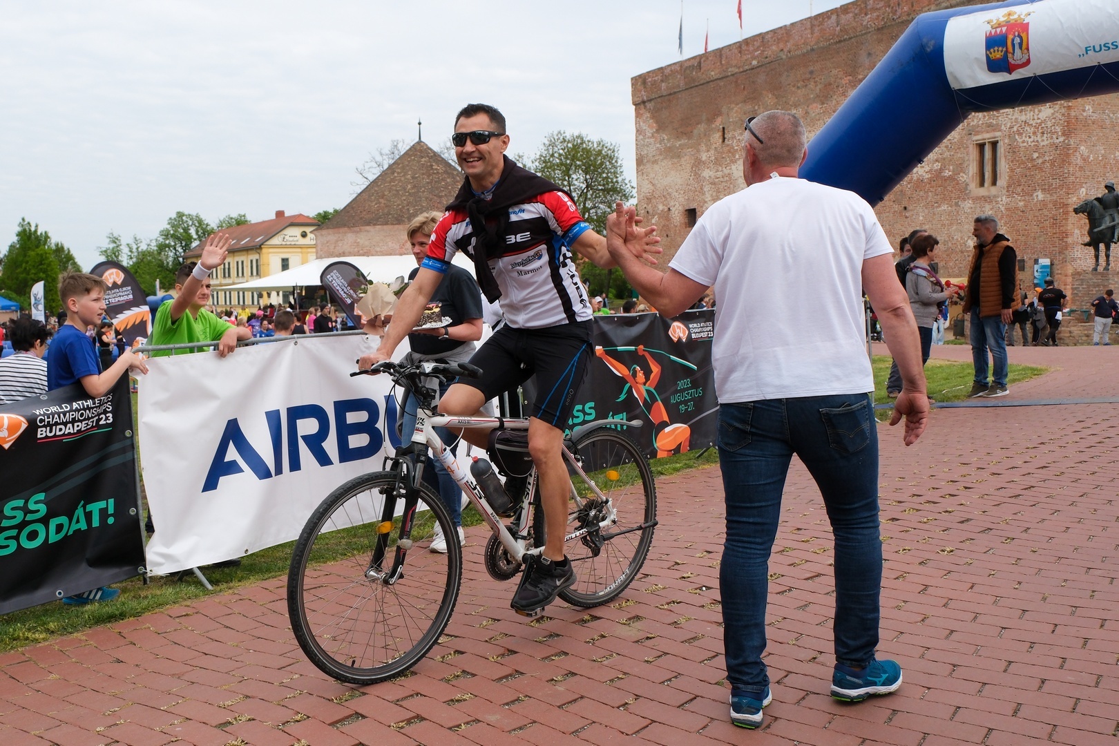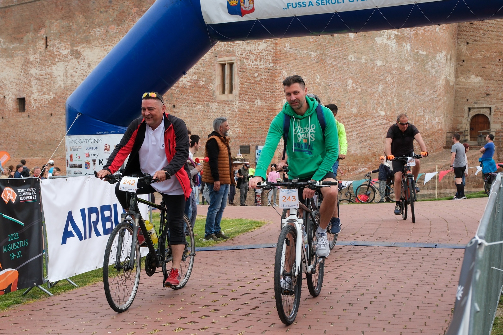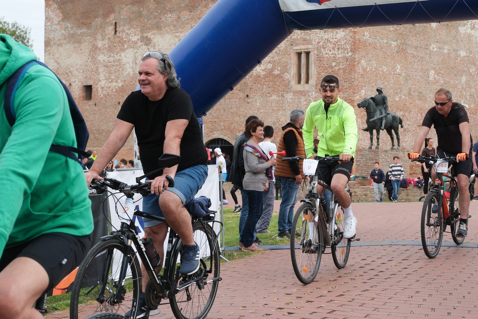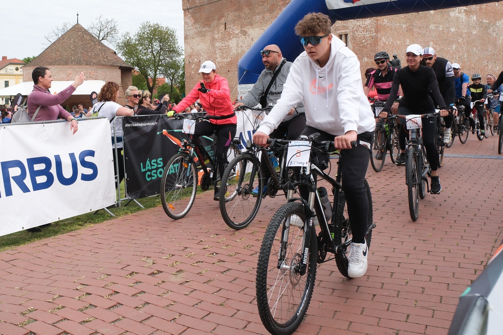 A kerékpárosok és kerekesszékesek rajtja a Fuss a sérült gyermekekért! versenyen