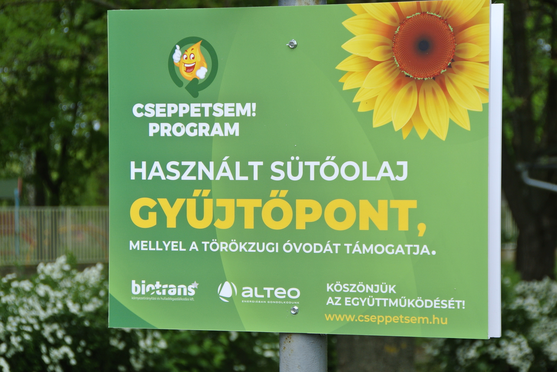 Kónya István elmondta: a városban két helyen, a Törökzugi ABC és a Budrio ABC előtt helyeztek ki gyűjtőedényeket, ahová bárki bedobhatja az üvegbe töltött használt sütőolajat vagy sütőzsiradékot.