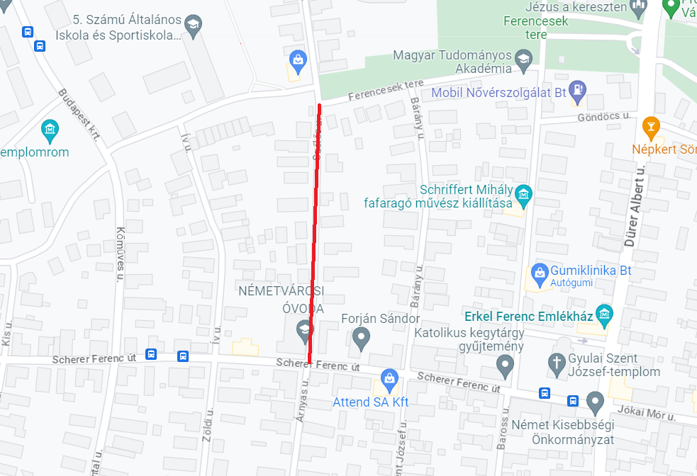 A képviselő-testület a közúti közlekedésről szóló 1988. évi I. törvény 34. § (1) bekezdésében biztosított hatáskörben eljárva úgy döntött, hogy a Szőlős utca Scherer Ferenc utca és Ferencesek tere közötti szakaszát a Ferencesek tere irányában egyirányúvá teszi a kerékpáros forgalom mindkét irányban történő közlekedésének meghagyásával.