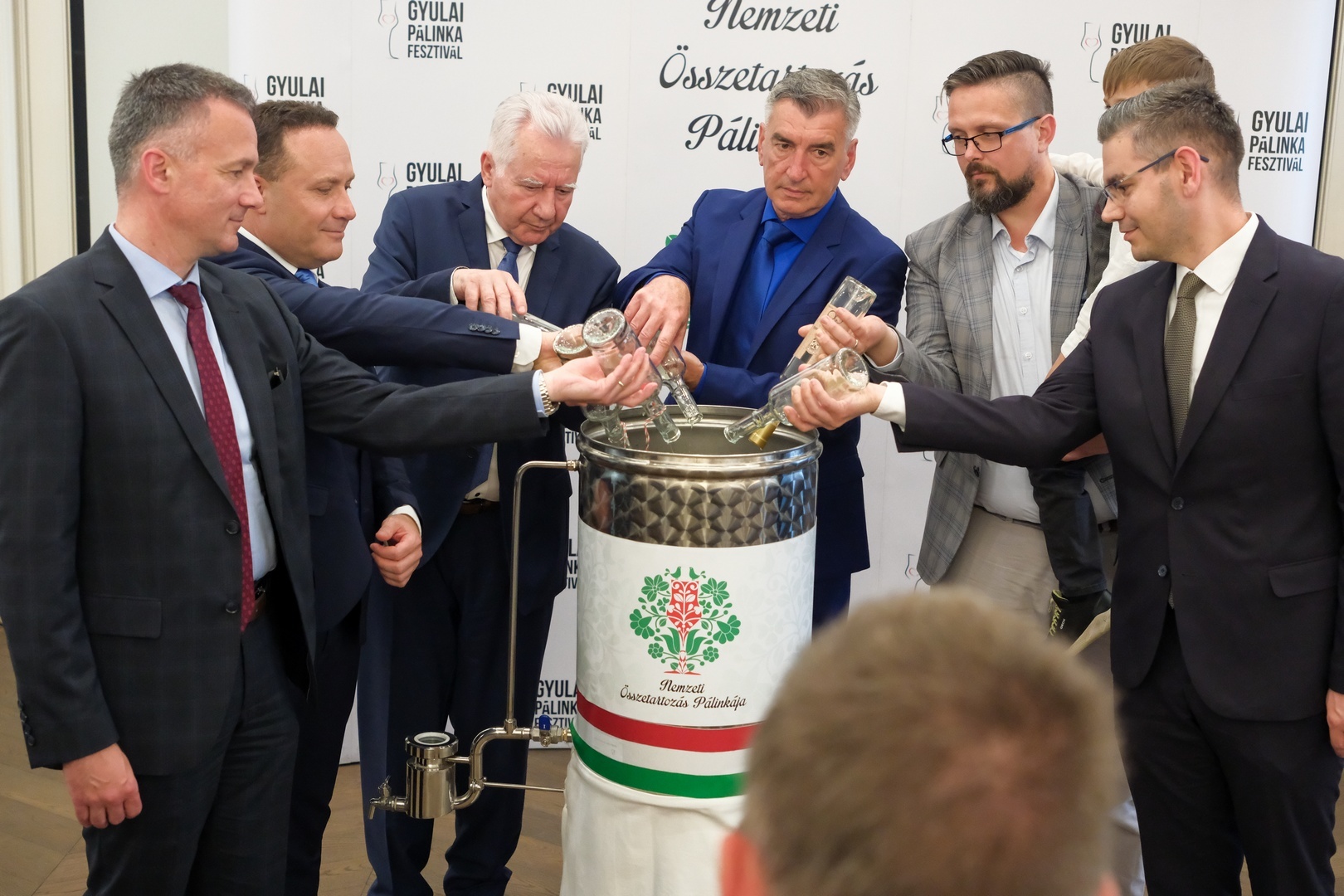 Elkészítették a nemzeti összetartozás pálinkáját május 26-án a Gyulai Pálinkafesztivál keretében az Almásy-kastély Stefánia-szárnyában. A résztvevők idén, a fesztivál tematikájának megfelelően, meggypálinkákat öntöttek össze.
