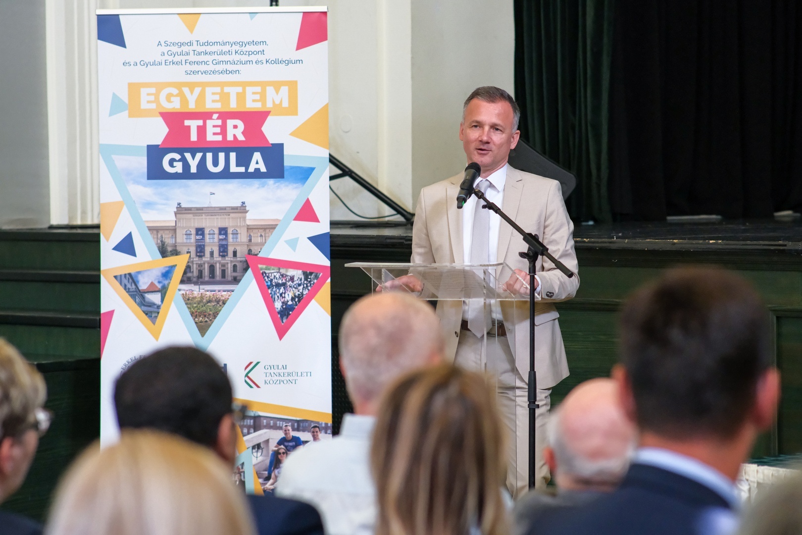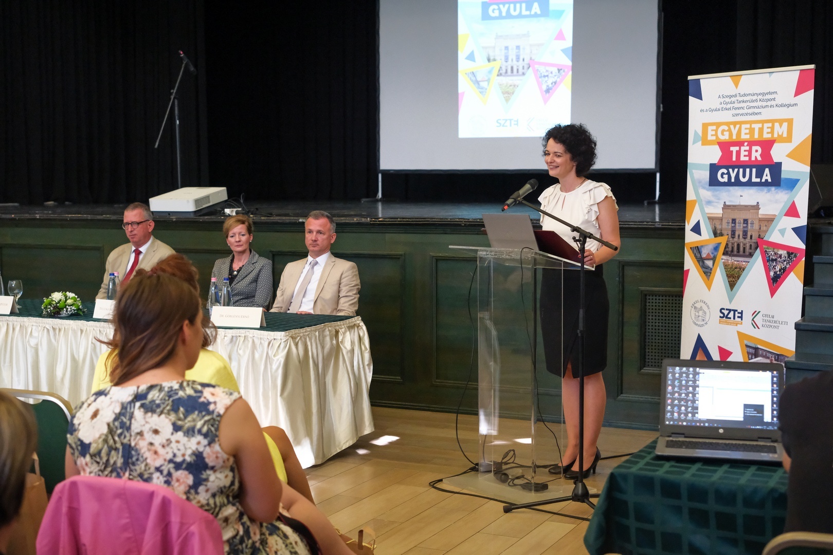 Teleki-Szávai Krisztina, a Gyulai Tankerületi Központ igazgatója köszöntőjében úgy fogalmazott, reméli, hogy hagyományt teremtenek az Egyetem-Tér-Gyula elnevezésű programmal.
