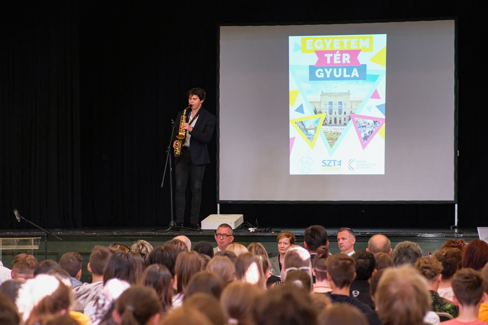 Egyetem-Tér-Gyula címmel szervezett programot az Erkel Ferenc-gimnázium, a Gyulai Tankerületi Központ és a Szegedi Tudományegyetem június 2-án a Vigadóban.