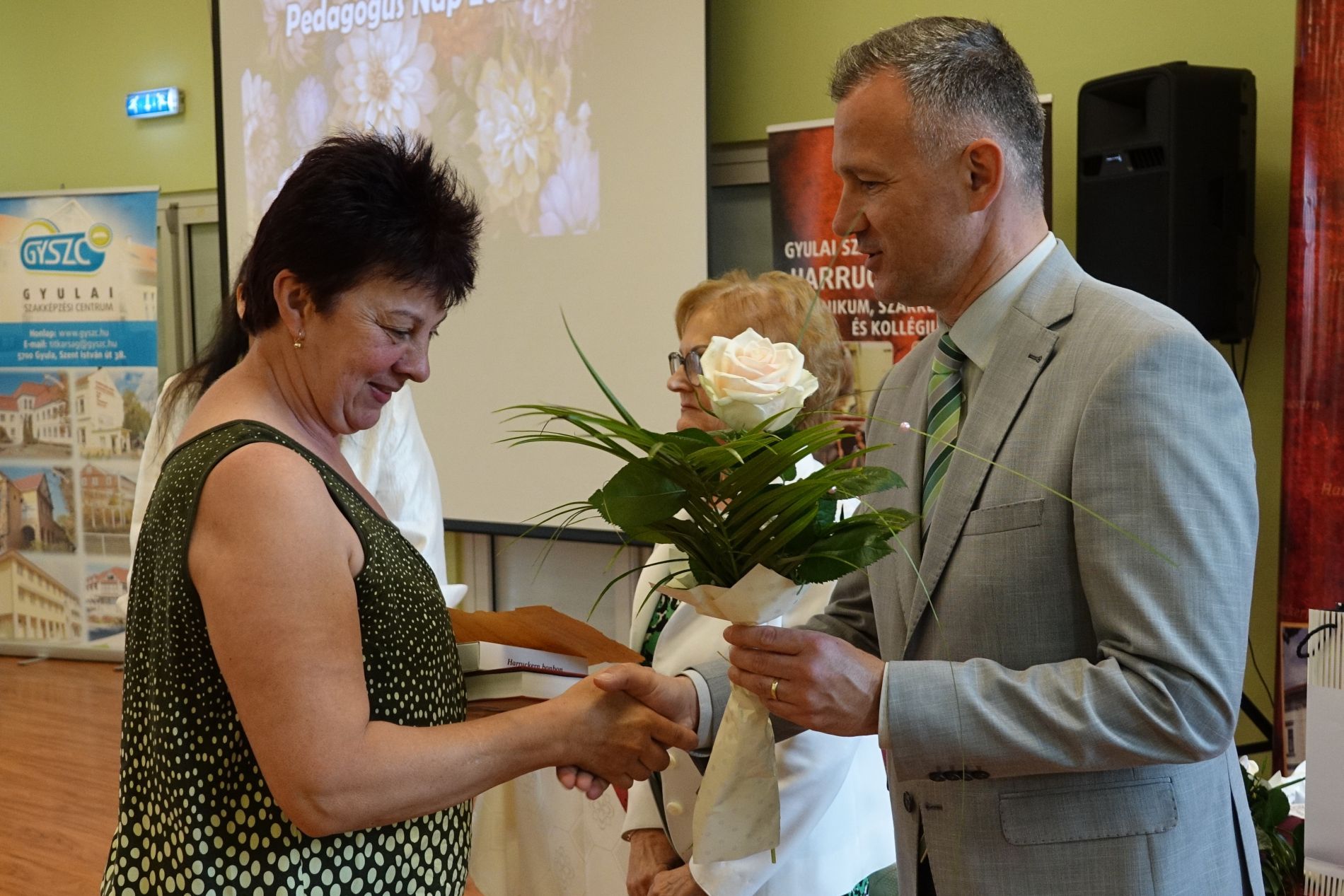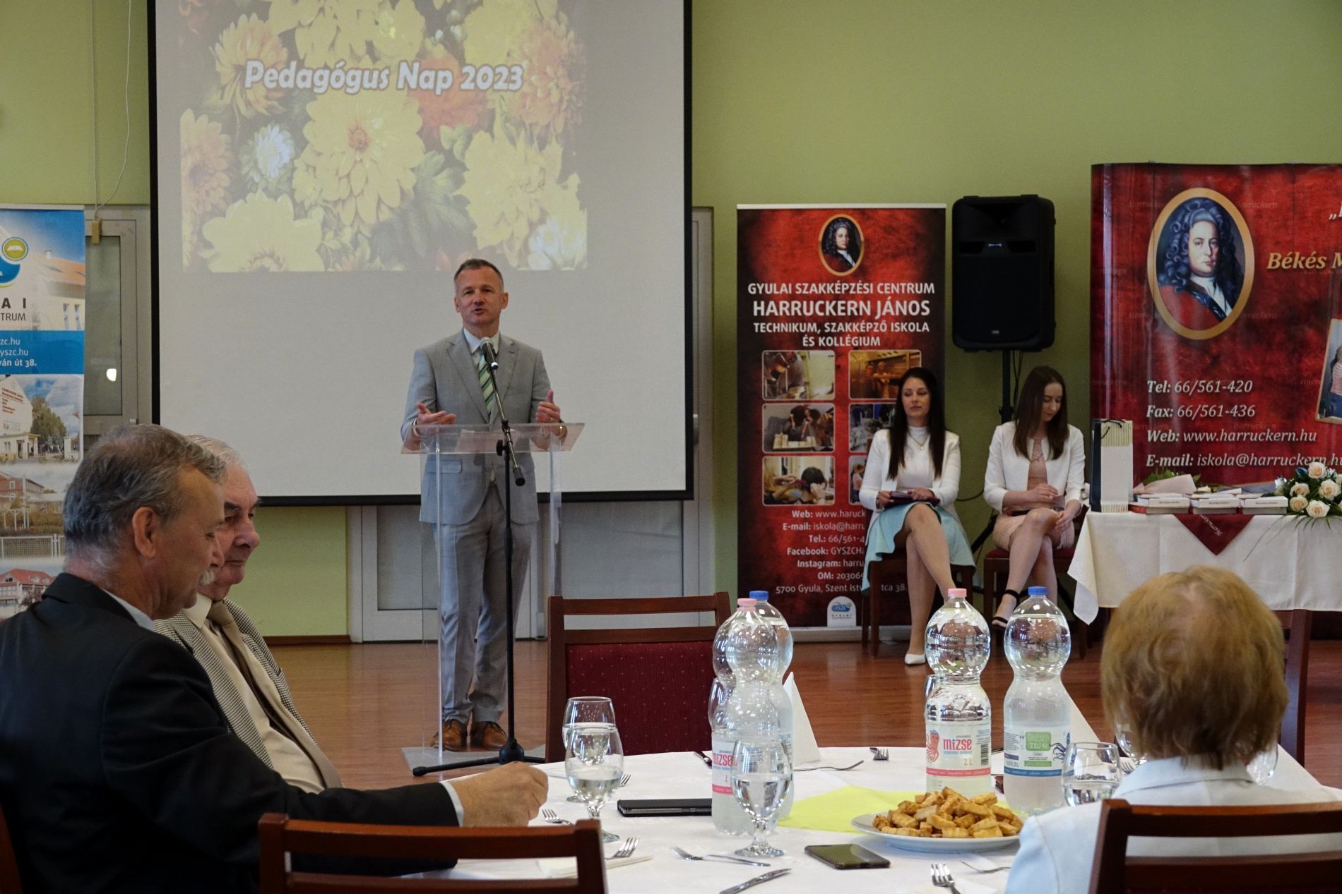 Elismeréseket adtak át a Gyulai Szakképzési Centrum Harruckern-iskolájának pedagógusnap alkalmából szervezett ünnepségén pénteken.