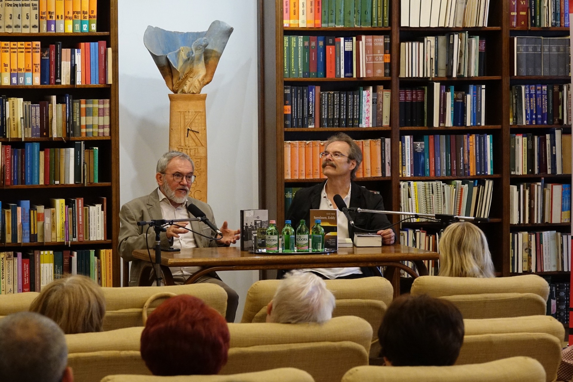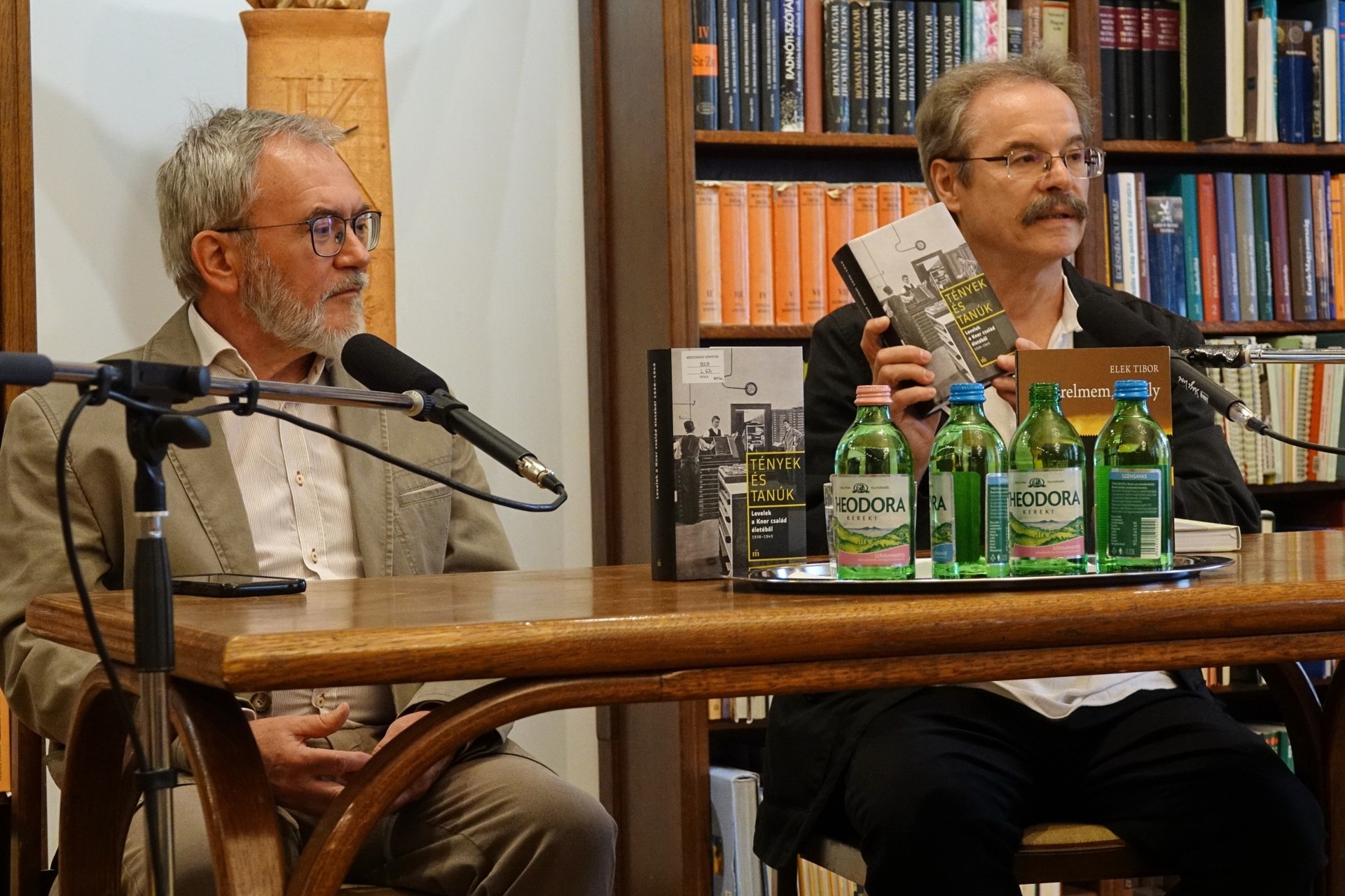„Két könyv, két szerző” címen hirdették meg a találkozót. Dézsi János könyvtárigazgató a Szerelmem, Erdély és a Levelek a Kner család életéből 1938-1949 című kötetek bemutató estjén látott vendégül bennünket. A házigazda valódi vendégei Elek Tibor József Attila-díjas irodalomtörténész és Erdész Ádám, a Békés Megyei Levéltár nyugalmazott igazgatója voltak. Mindketten Gyula város ismert és elismert polgárai, a városnak és egymásnak is közel négy évtizede barátai. Mindketten azzal foglalkoznak, amit szeretnek, kinek a színház és irodalom, kinek a történelem és helytörténet okoz felüdülést, s olykor egymás világába is belekóstolnak, mondhatni olykor „egy Bárkában eveznek”. Szerencsémre mind Tibor, mind Ádám munkásságát két évtizede magam is követem, előre örömmel fogadtam a programot, hiszen két intelligens, szakmailag magasan kvalifikált beszélgetőtársat hallgathattam. Mivel már sokadszorra szerepeltek közös fórumon (elsőként 1986-ban, közös kötetbemutatóval 2018-ban), egymástól kérdeztek, segítettek a kötetetek kölcsönös megismertetésében - külső moderátori segítség nélkül. Nem bántuk, a beszélgetésnek így is kitűnő íve volt kellő informativitással.