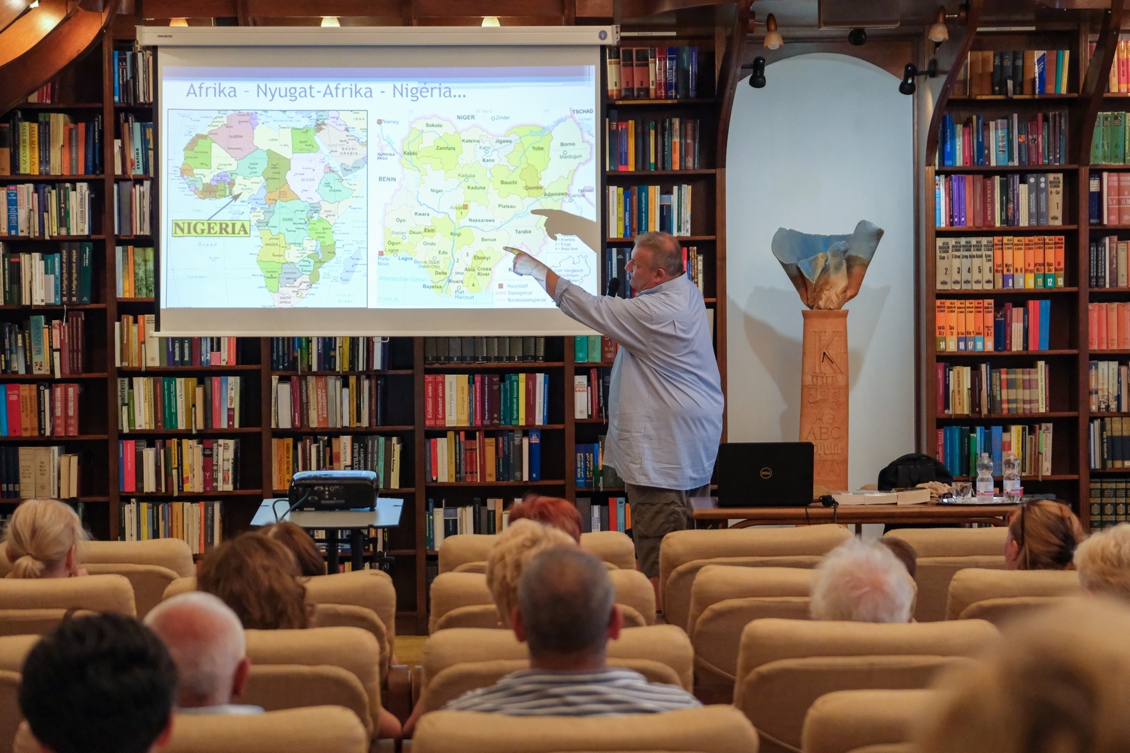 Kalandok Nigériában címmel tartott előadást Kondricz Péter nemzetközi jogász, író, egyetemi oktató, egykori diplomata július 11-én a Mogyoróssy János Városi Könyvtárban.