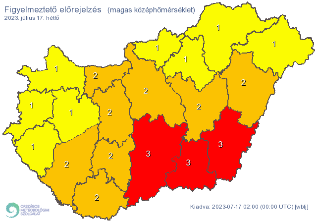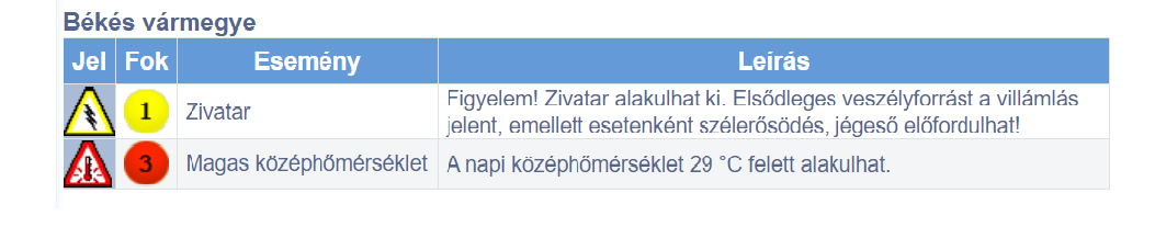Békés vármegyére zivatar miatt elsőfokú veszélyjelzést, a hőség miatt harmadfokú veszélyjelzést adott ki az Országos Meteorológiai Szolgálat.
