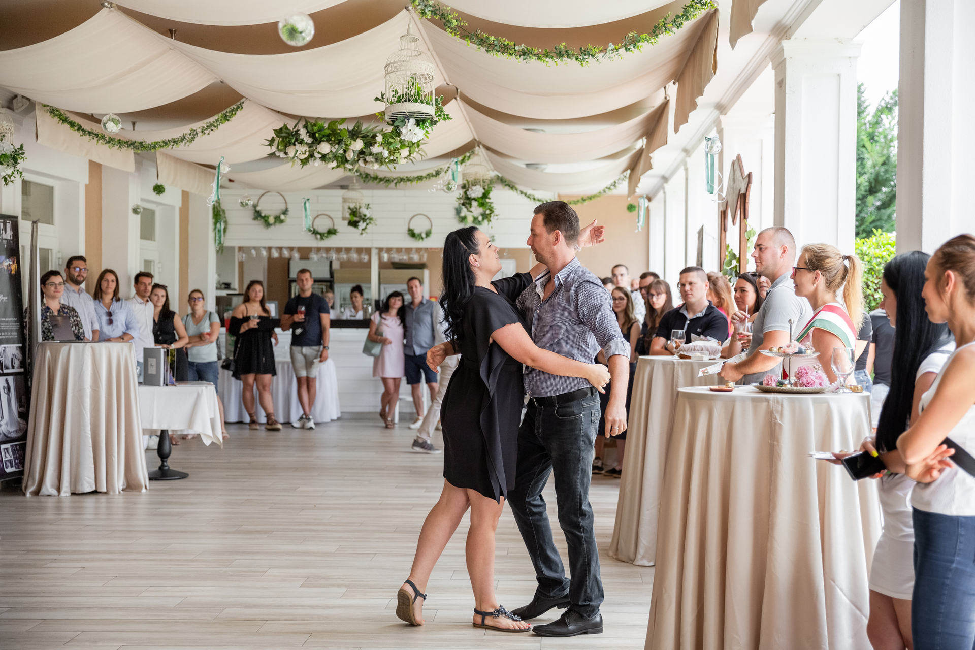 A vendégeket érkezéskor welcome drinkkel, majd hűsítő italokkal és limonádéval kínálják, 12.30-tól pedig svédasztalos „lakodalmas” ebédre invitálják.