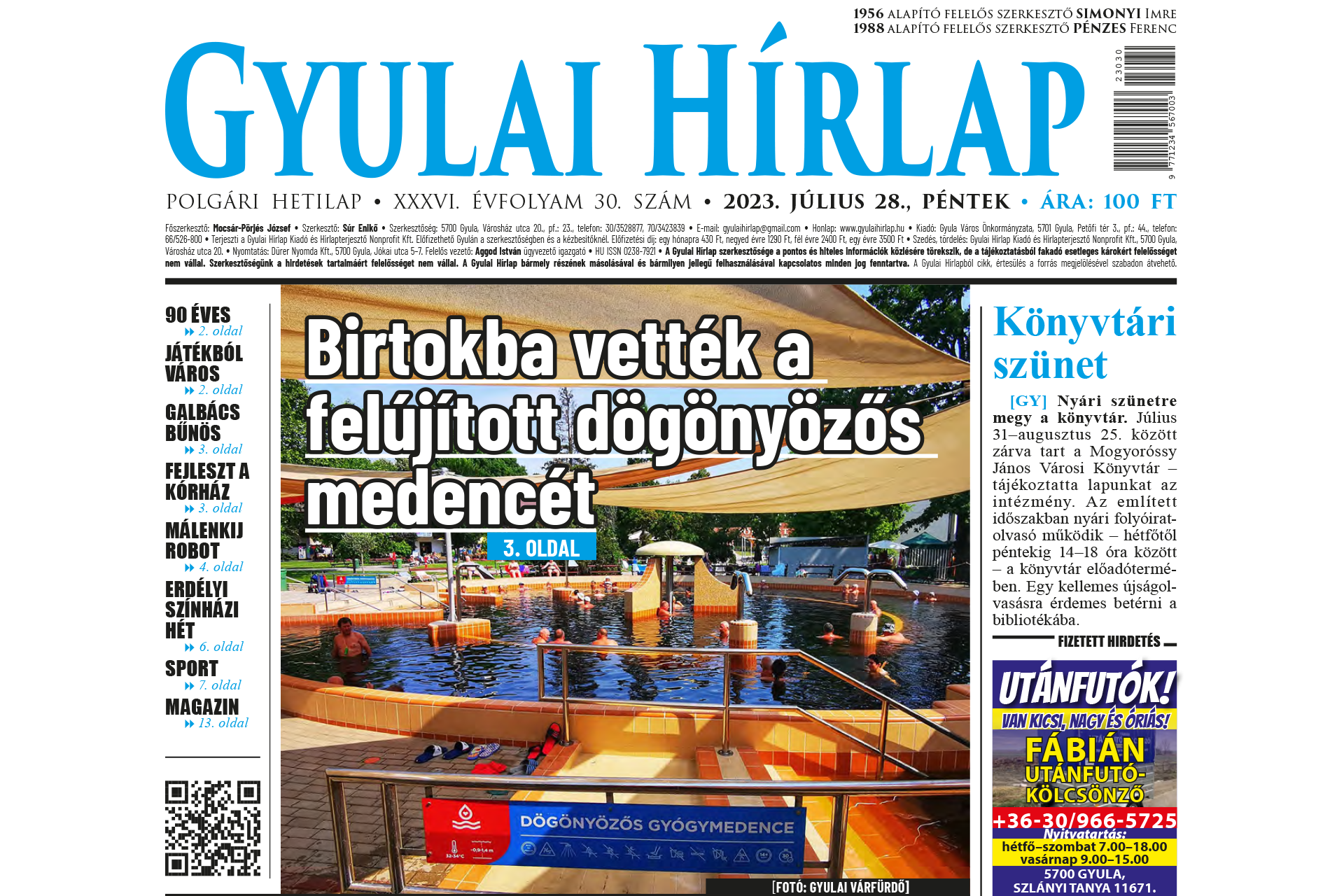 Itt a legfrissebb Gyulai Hírlap! Keresse az újságárusoknál!
