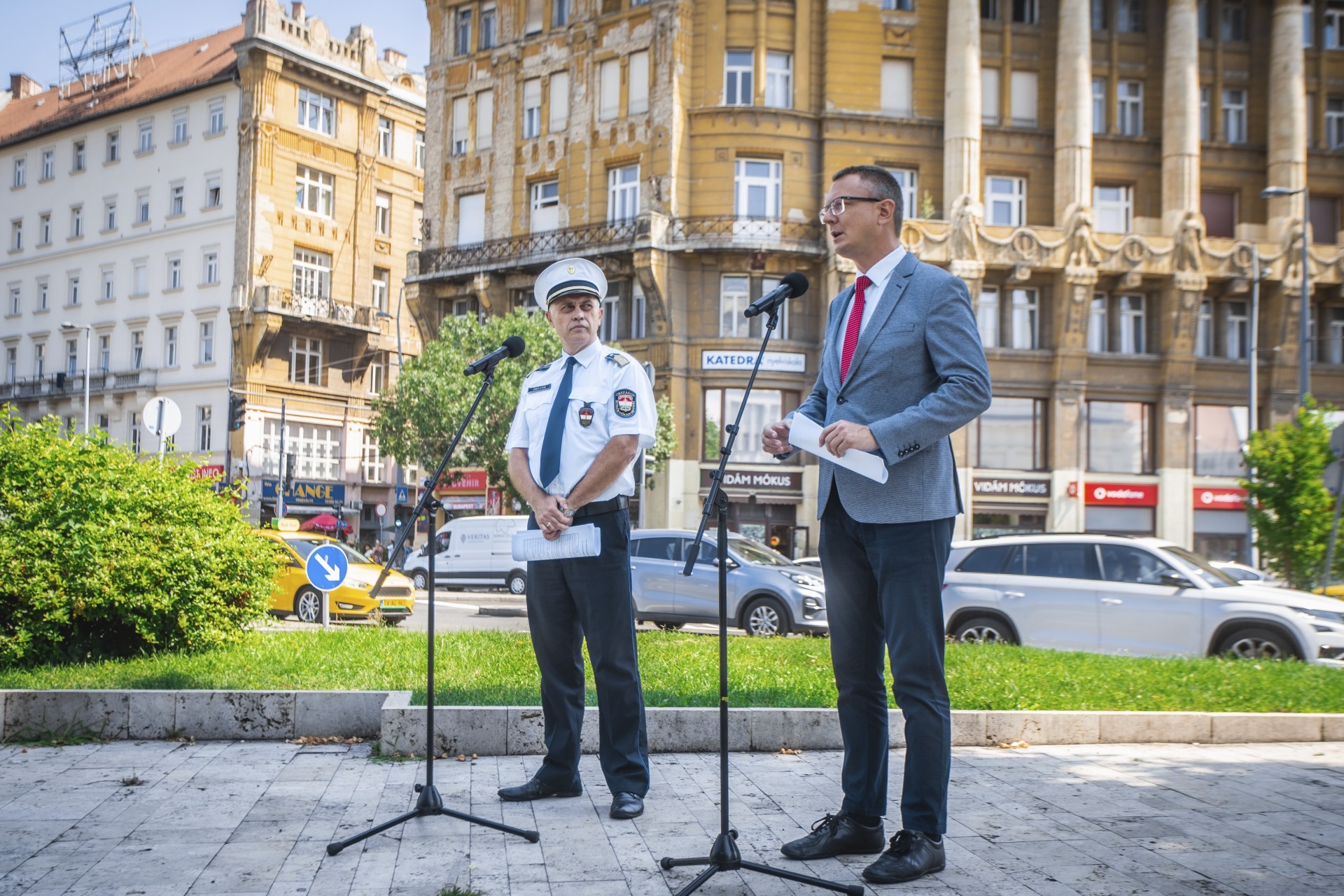 Rétvári Bence, a Belügyminisztérium parlamenti államtitkára és Jámbor István r. ezredes, az Országos Rendőr-főkapitányság Közlekedésrendészeti Szakirányító Osztály vezetője a rendőrségi drónok használatának közlekedésbiztonság területén betöltött szerepéről beszélt az augusztus 4-én tartott budapesti sajtótájékoztatón.