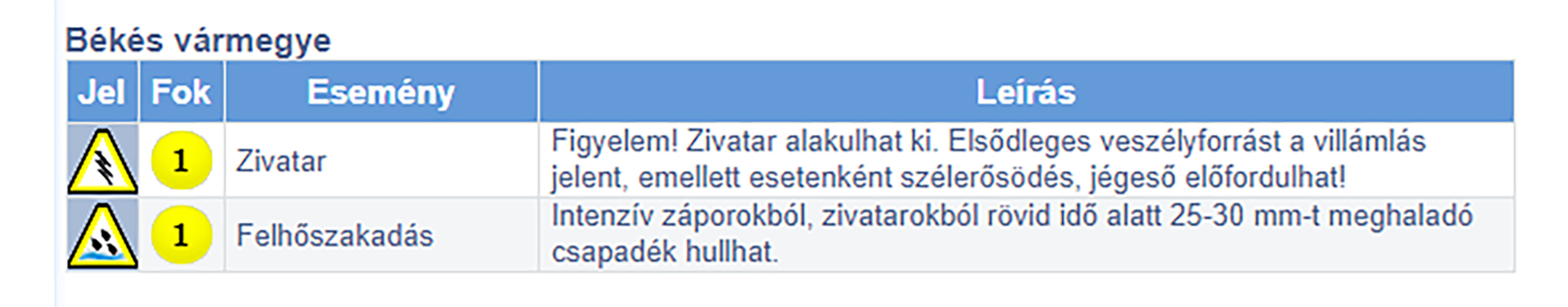 Békés vármegyében elsőfokú veszélyjelzés van érvényben